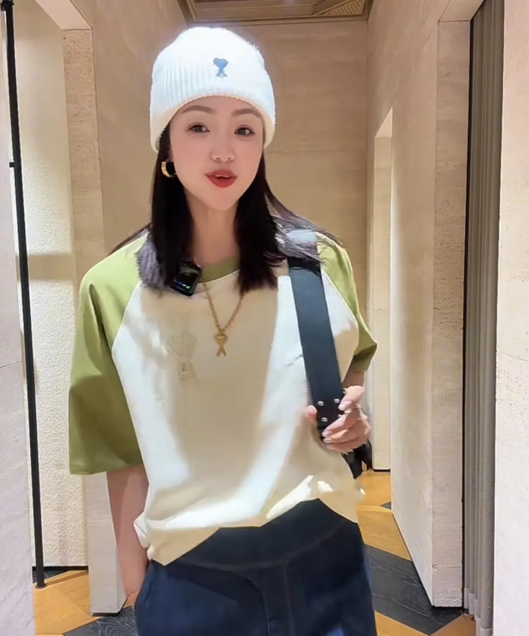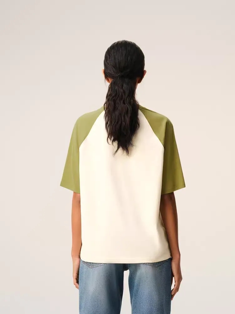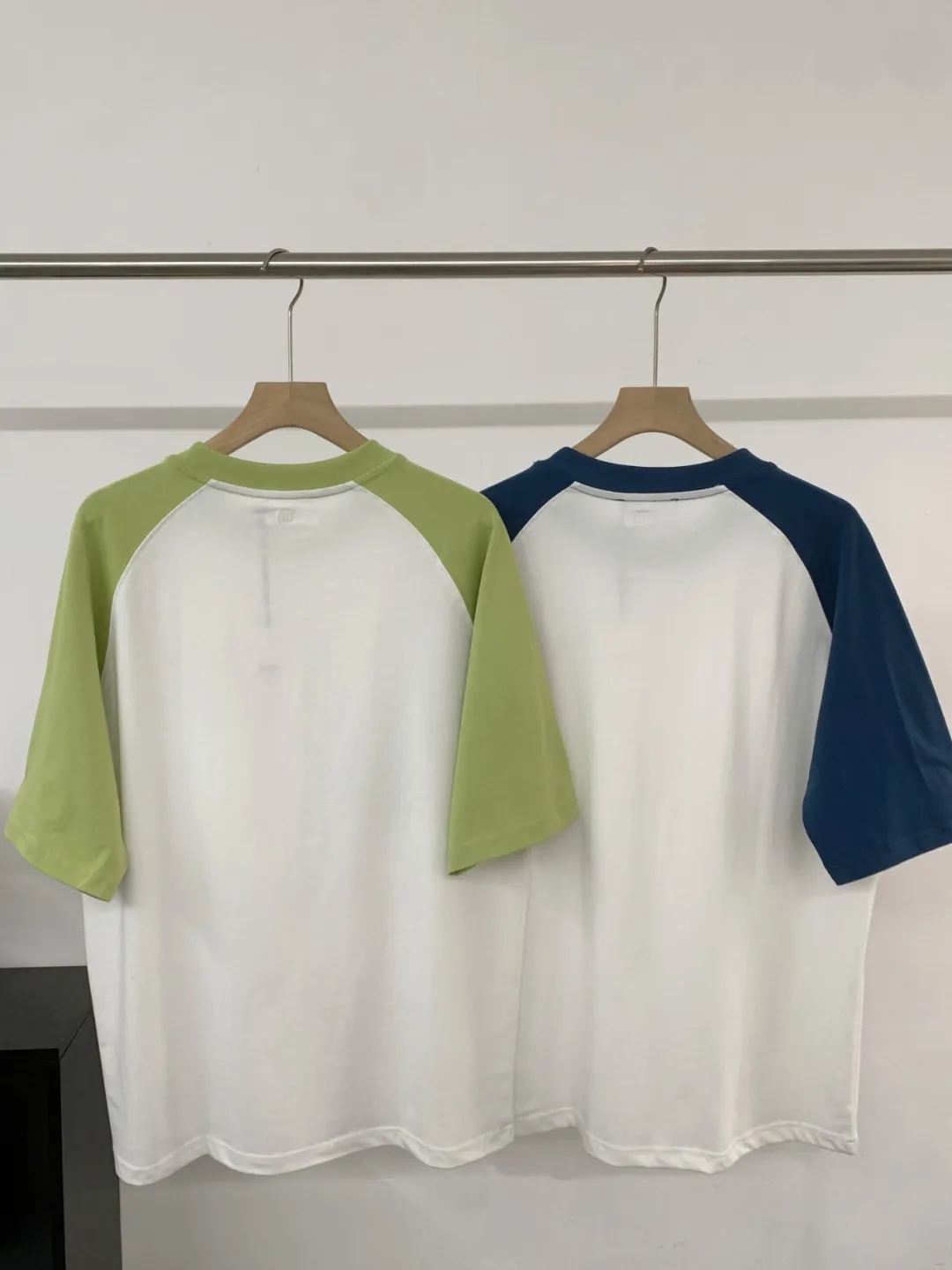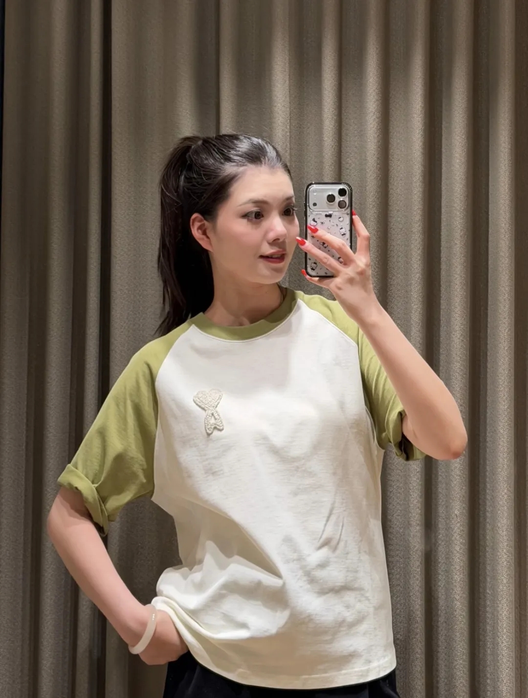 【xjwm1】26早春女士休闲撞色刺绣棉质圆领短袖T恤!!