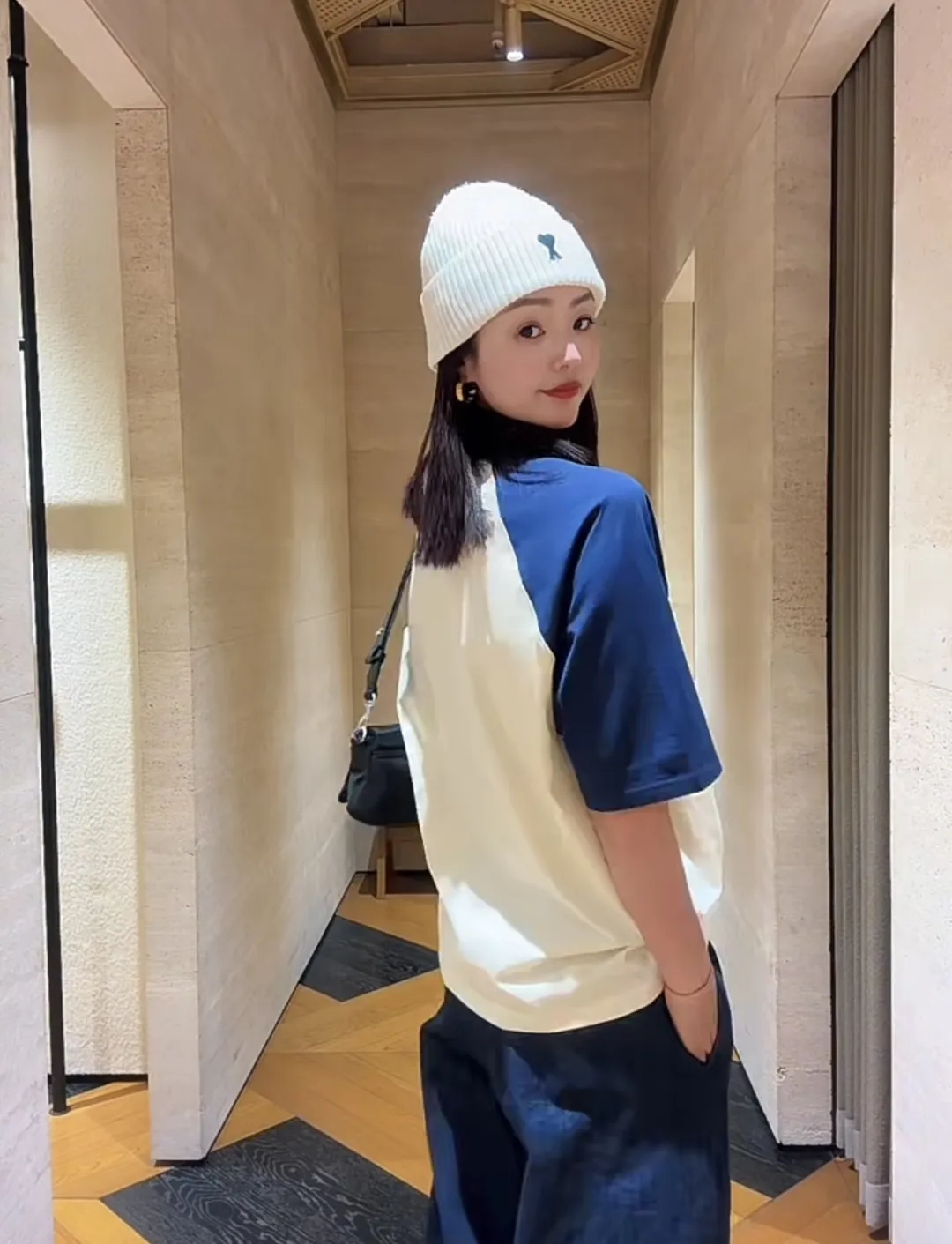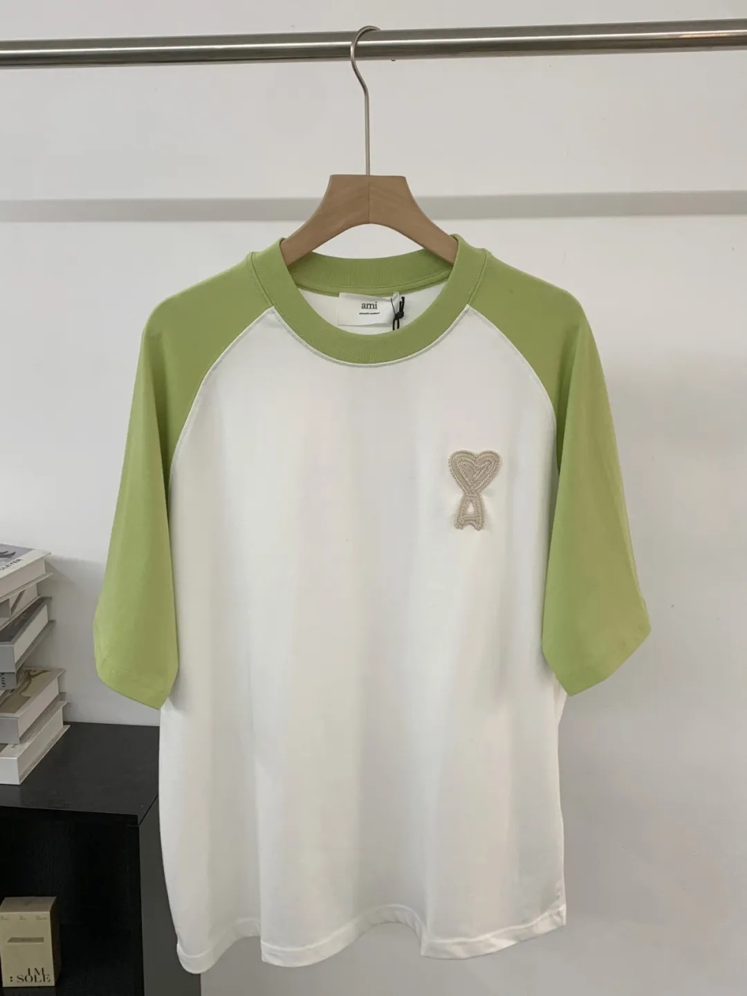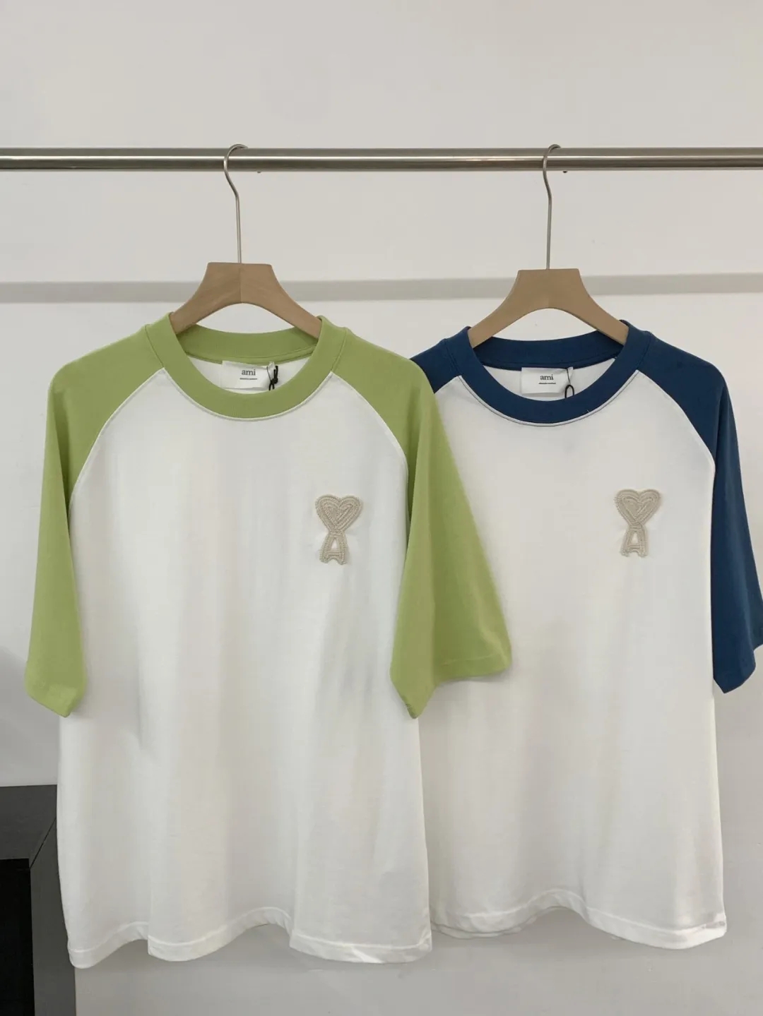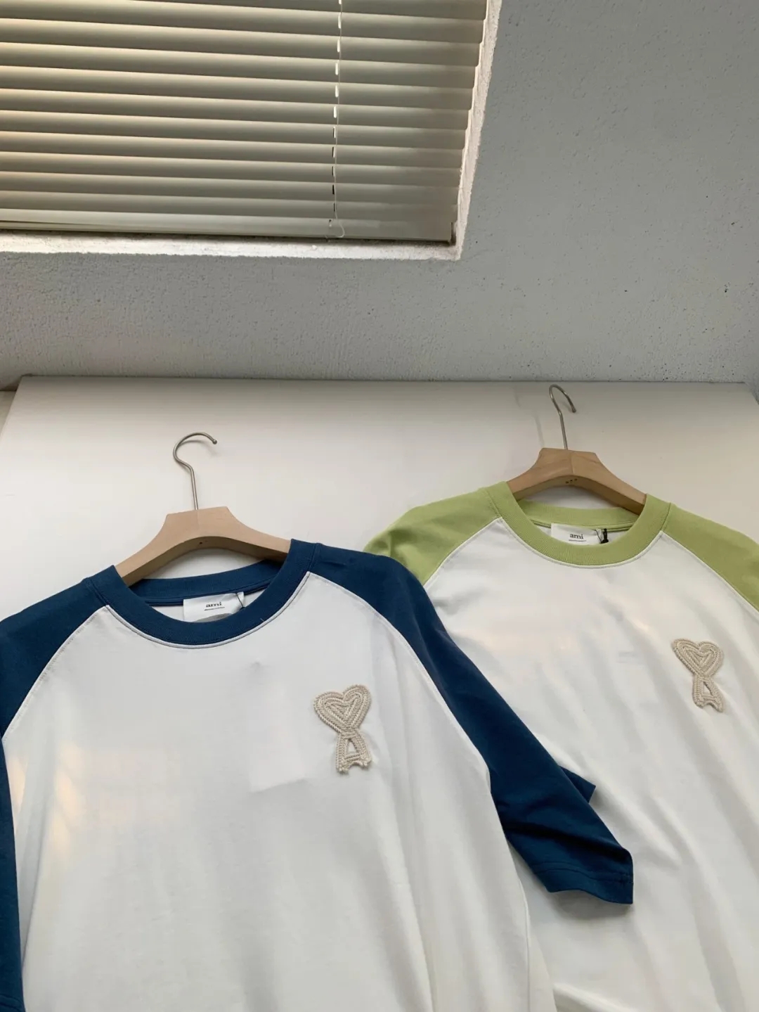 【xjwm1】26早春女士休闲撞色刺绣棉质圆领短袖T恤!!