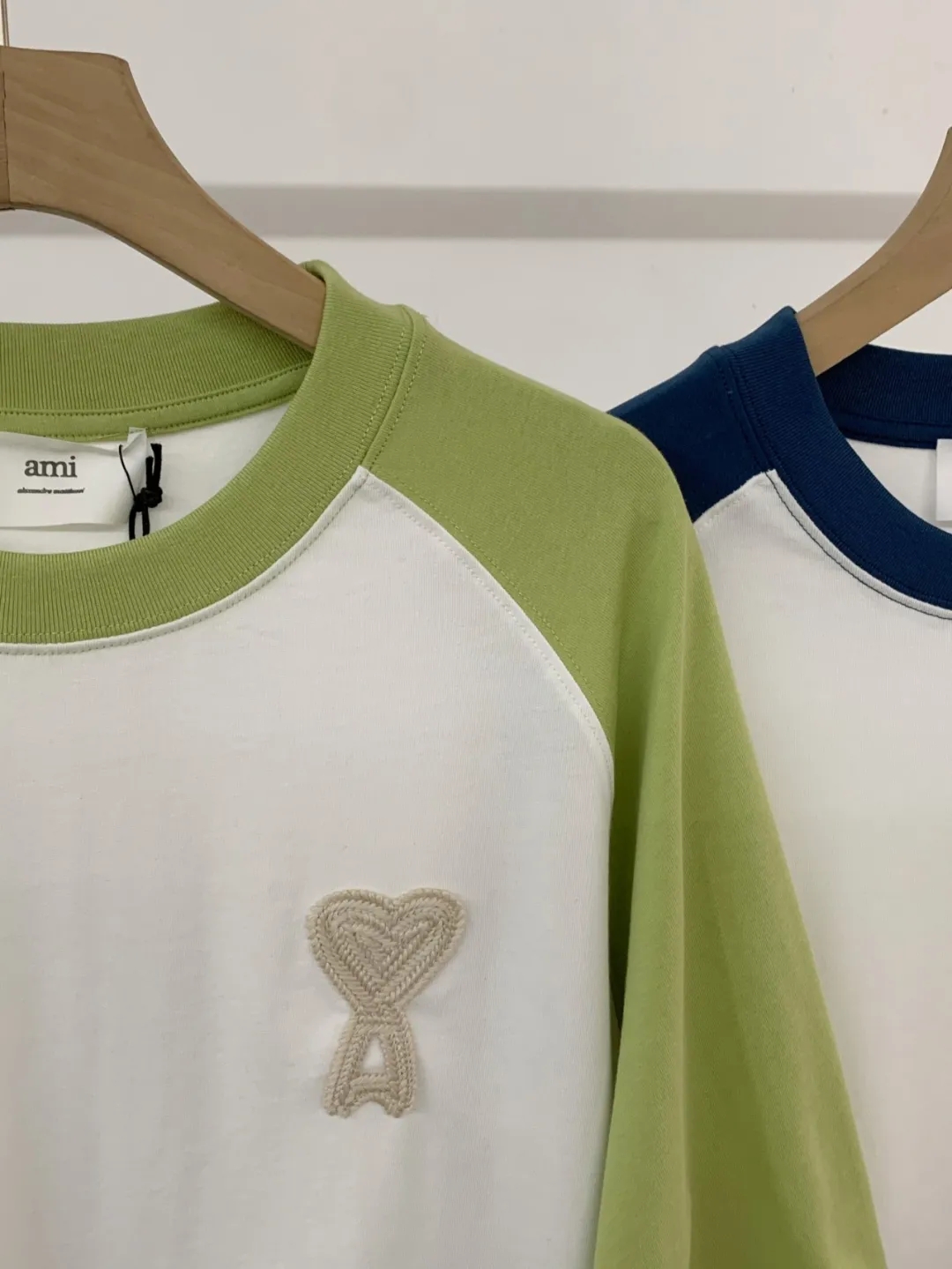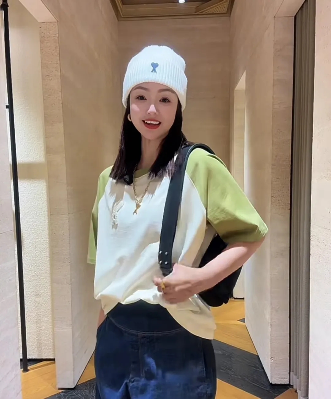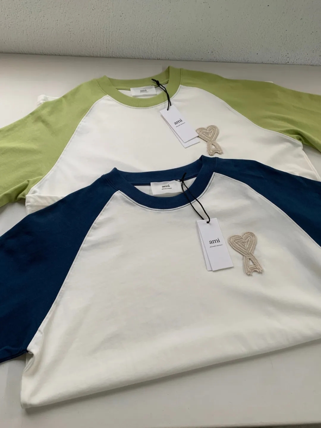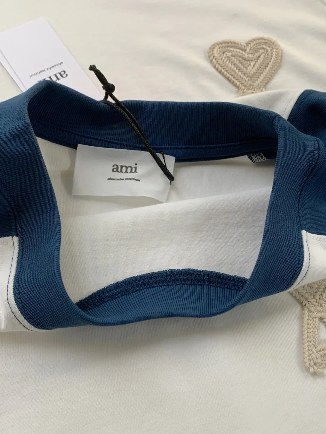 【xjwm1】26早春女士休闲撞色刺绣棉质圆领短袖T恤!!