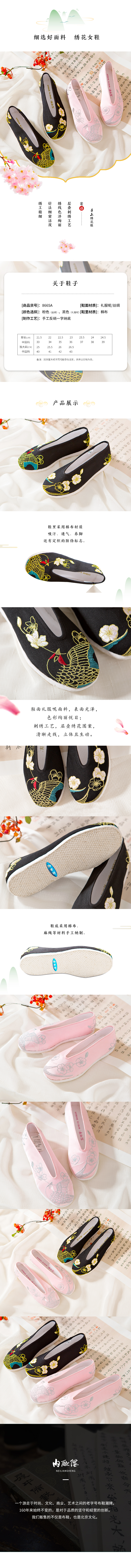 内联升女鞋手工单鞋千层底雨燕报春手工小元口布鞋(云燕)8665A