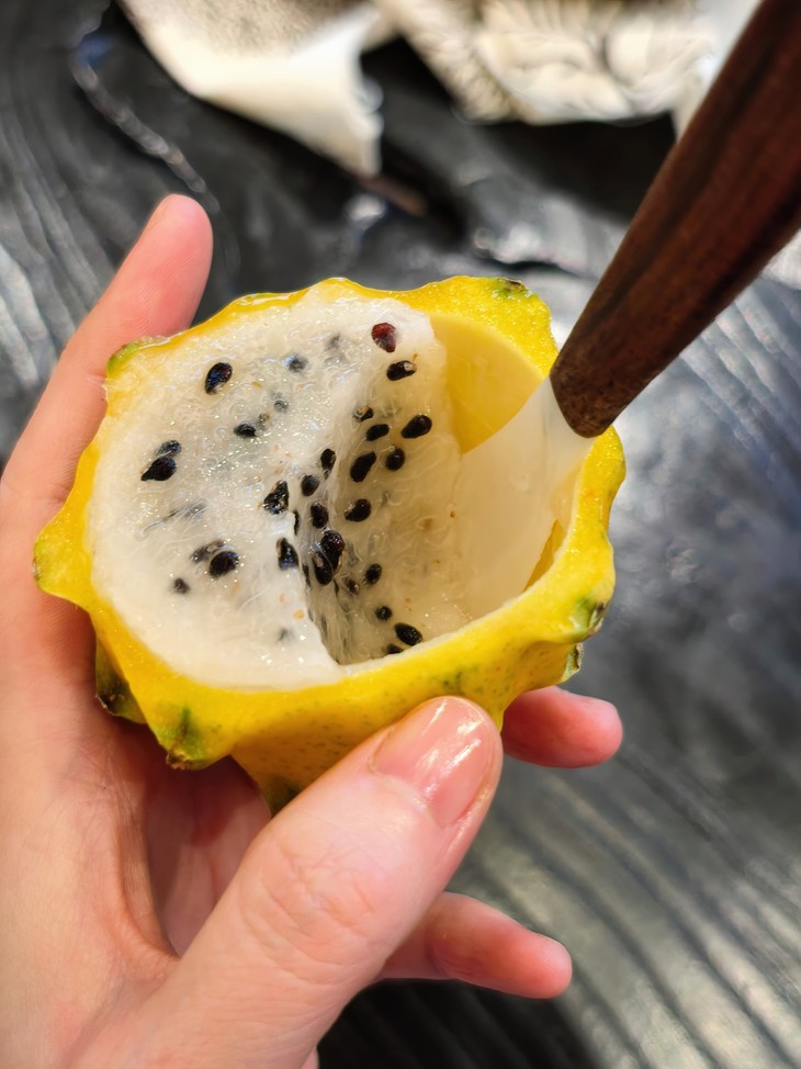 燕窝果吃起来,也真的如冰镇燕窝般丝滑!果肉晶莹剔透,香滑四溢,有点像火龙果,但又更甜糯,还有丢丢果冻感,靠近外皮的纯白色部分,则有着山竹般的甜蜜多汁,甜度有到20-25度,清甜不腻,非常满足!无论是自己吃还是送亲朋好友,都是非常哇塞的选择,特别是肉食为主,或经常熬夜应酬的情况,更要多来点了,丰富的膳食纤维,对健康大有裨益!