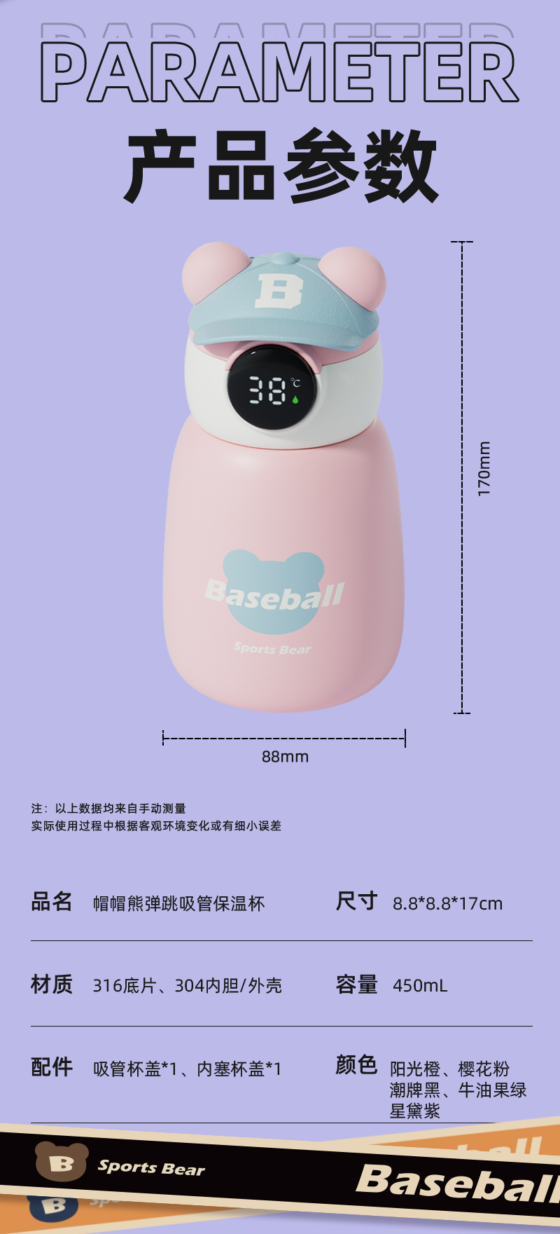 小熊款智能温度显示儿童保温杯,容量450ml 【朋友圈】_HLY