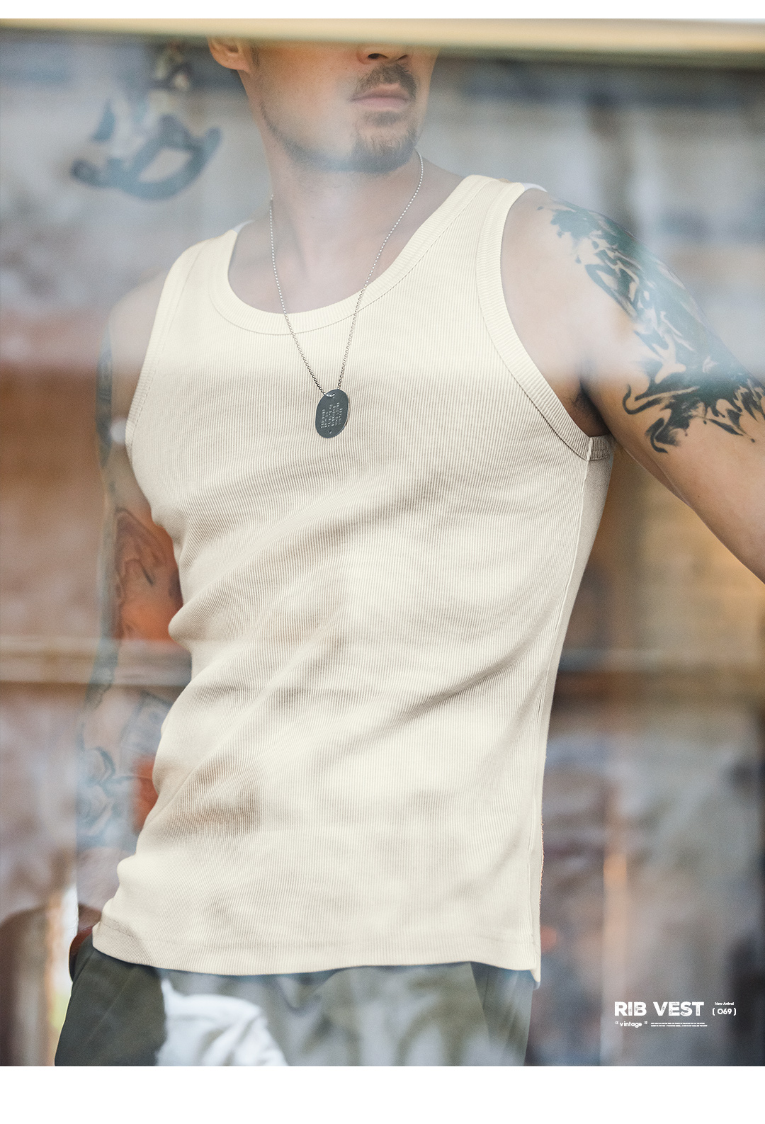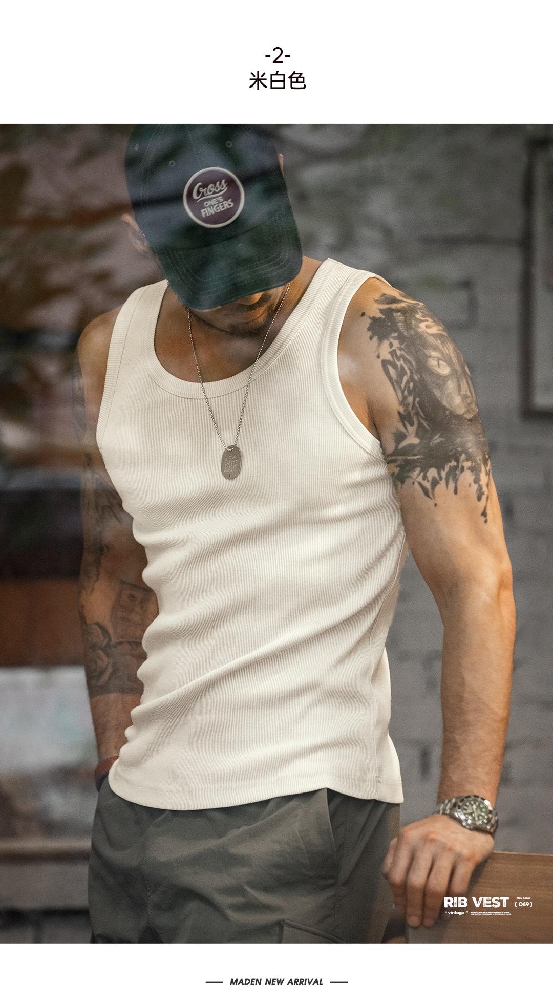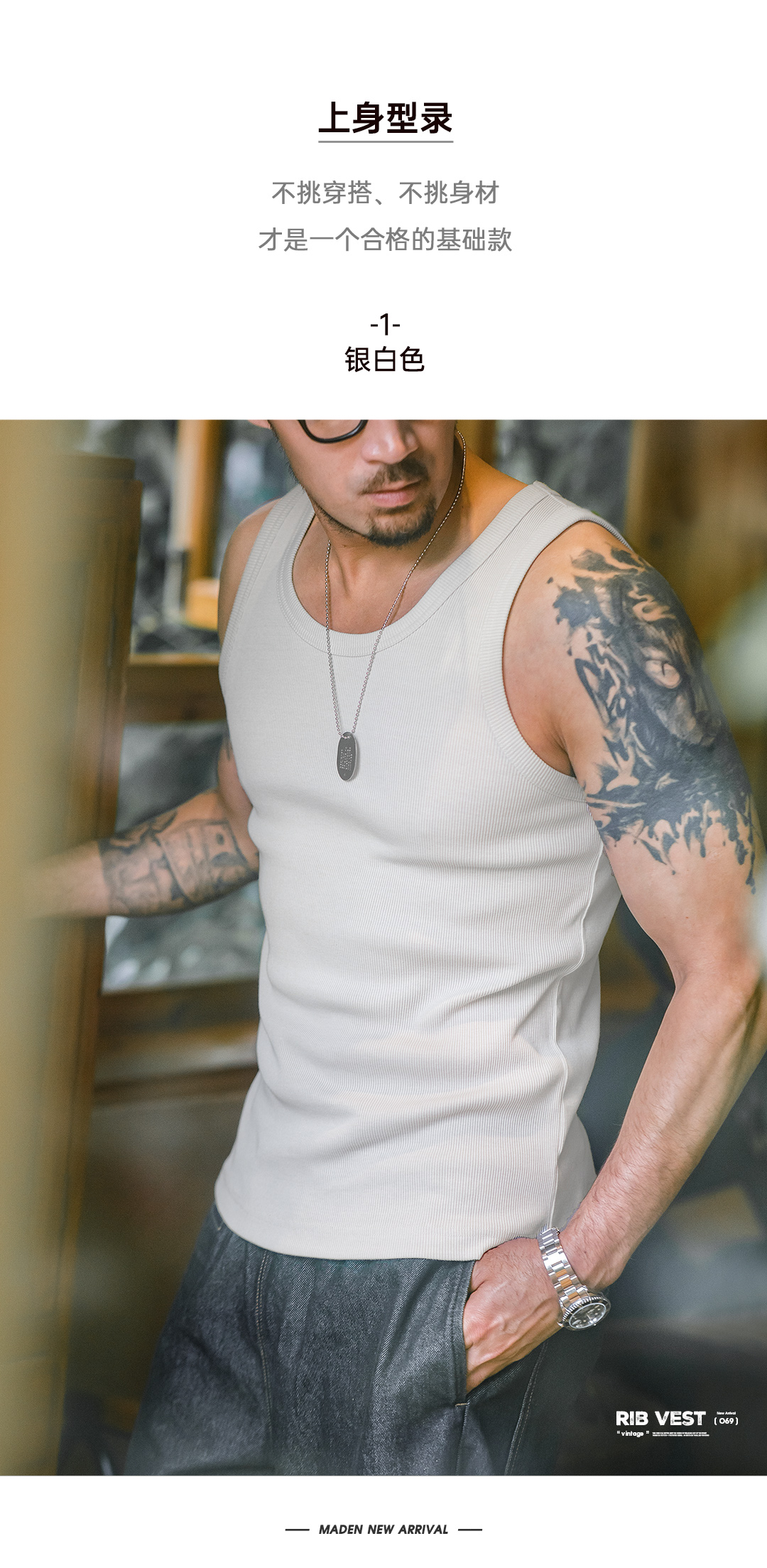 工装优选复古白色棉健身背心运动老头汗衫跨栏重磅螺纹坎肩打底男