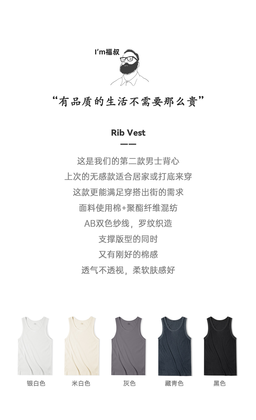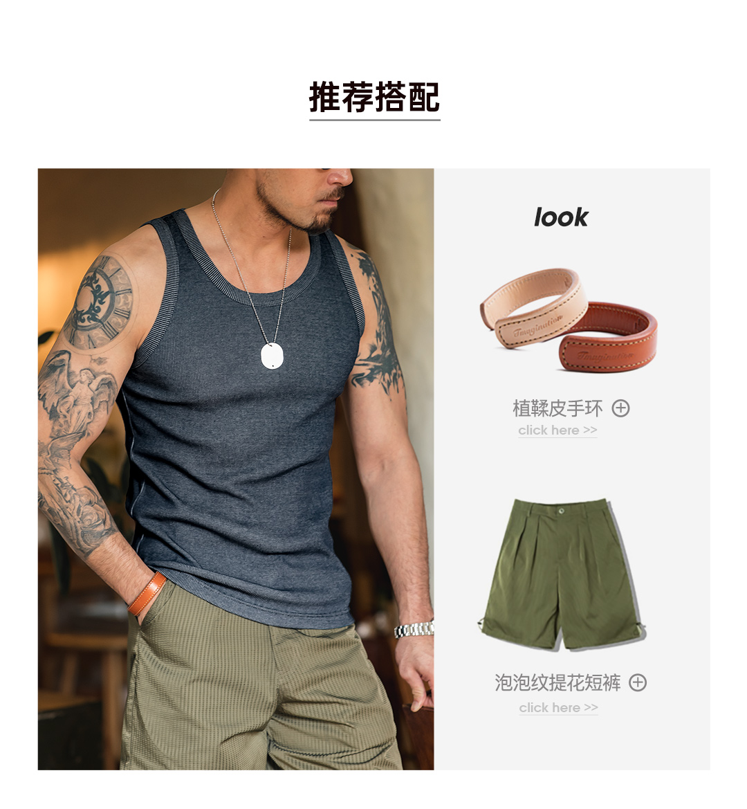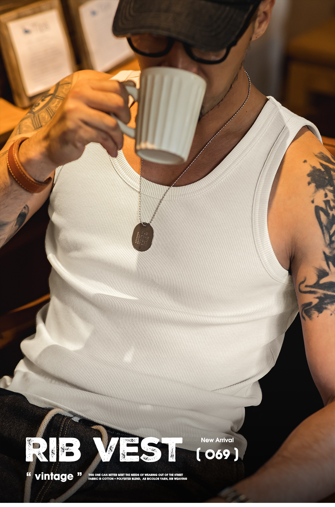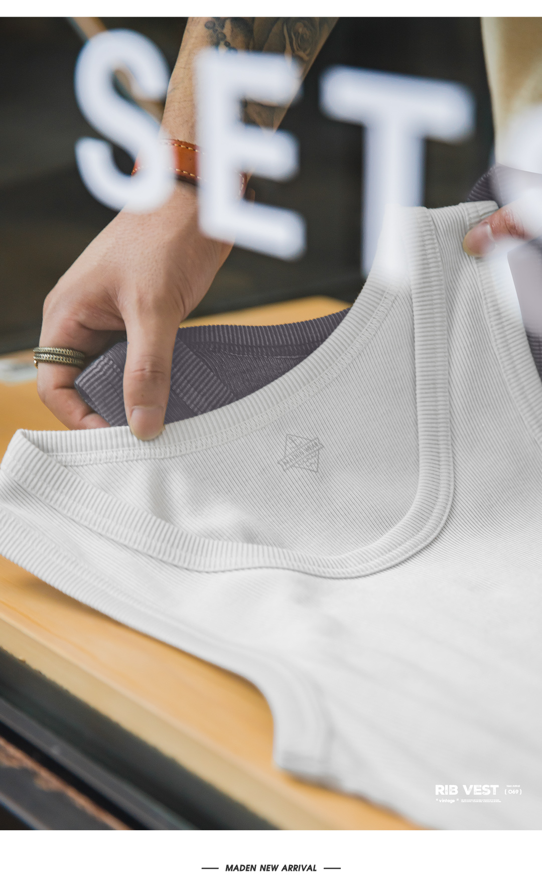 工装优选复古白色棉健身背心运动老头汗衫跨栏重磅螺纹坎肩打底男