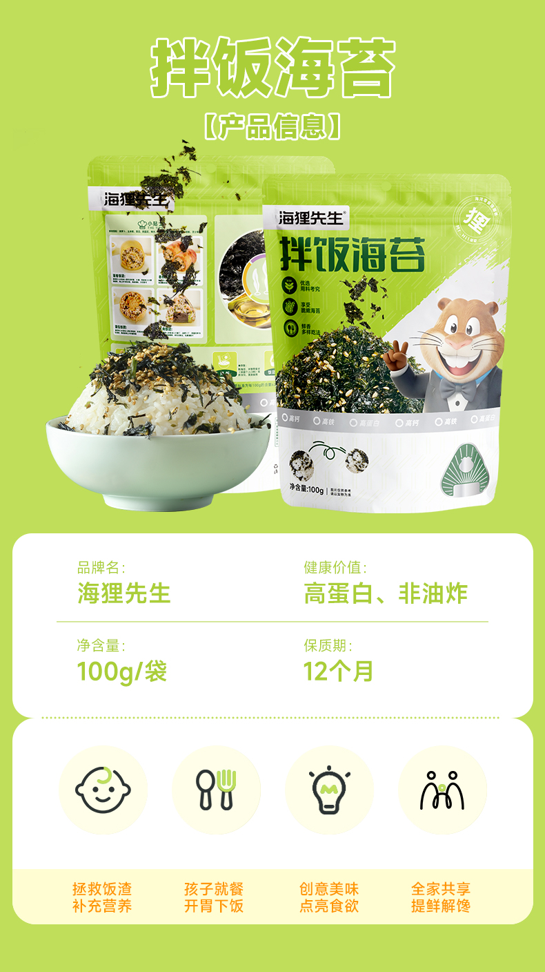 【赠送拌饭模具】海狸先生拌饭海苔100g*6袋下饭零食儿童休闲小零食