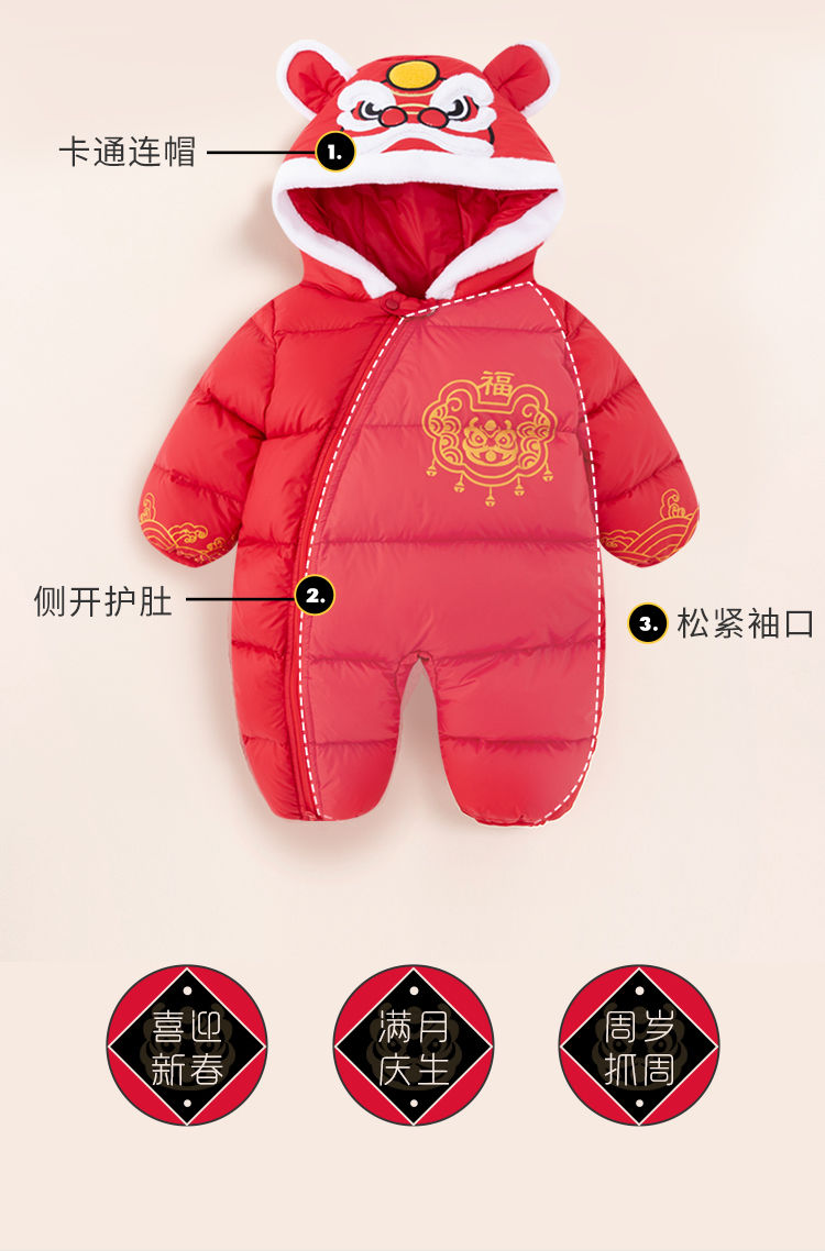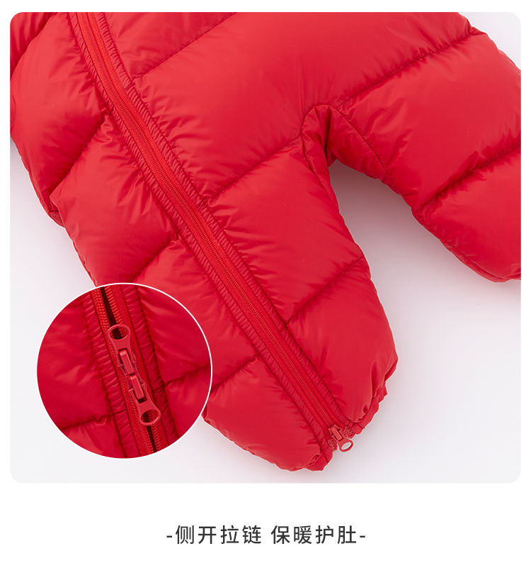 贝贝怡婴儿羽绒服连体衣侧开拉链秋冬套装宝宝加厚哈衣爬服214L501