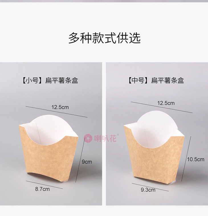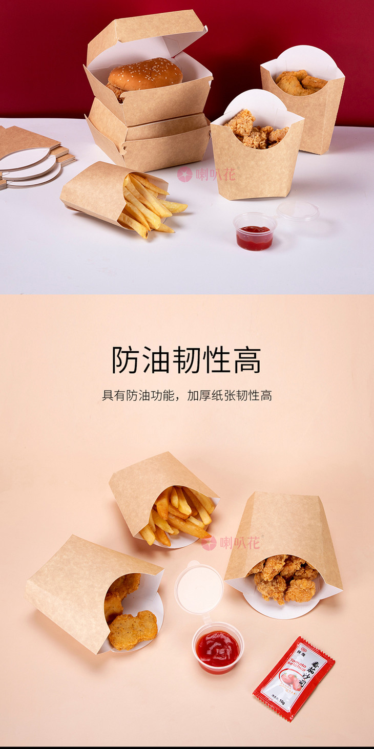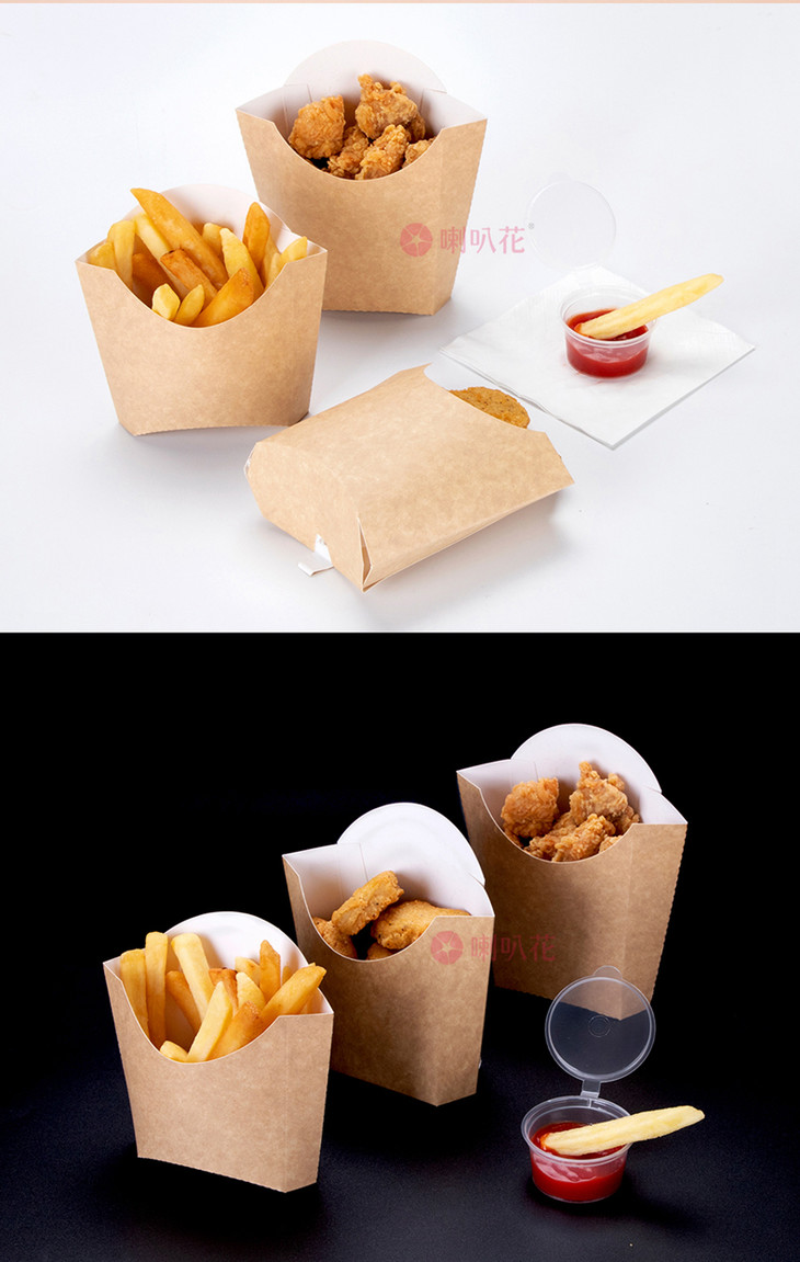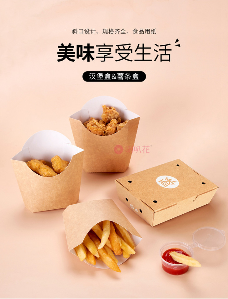 喇叭花一次性薯条盒牛皮纸鸡米花炸鸡盒汉堡小吃打包外卖包装盒