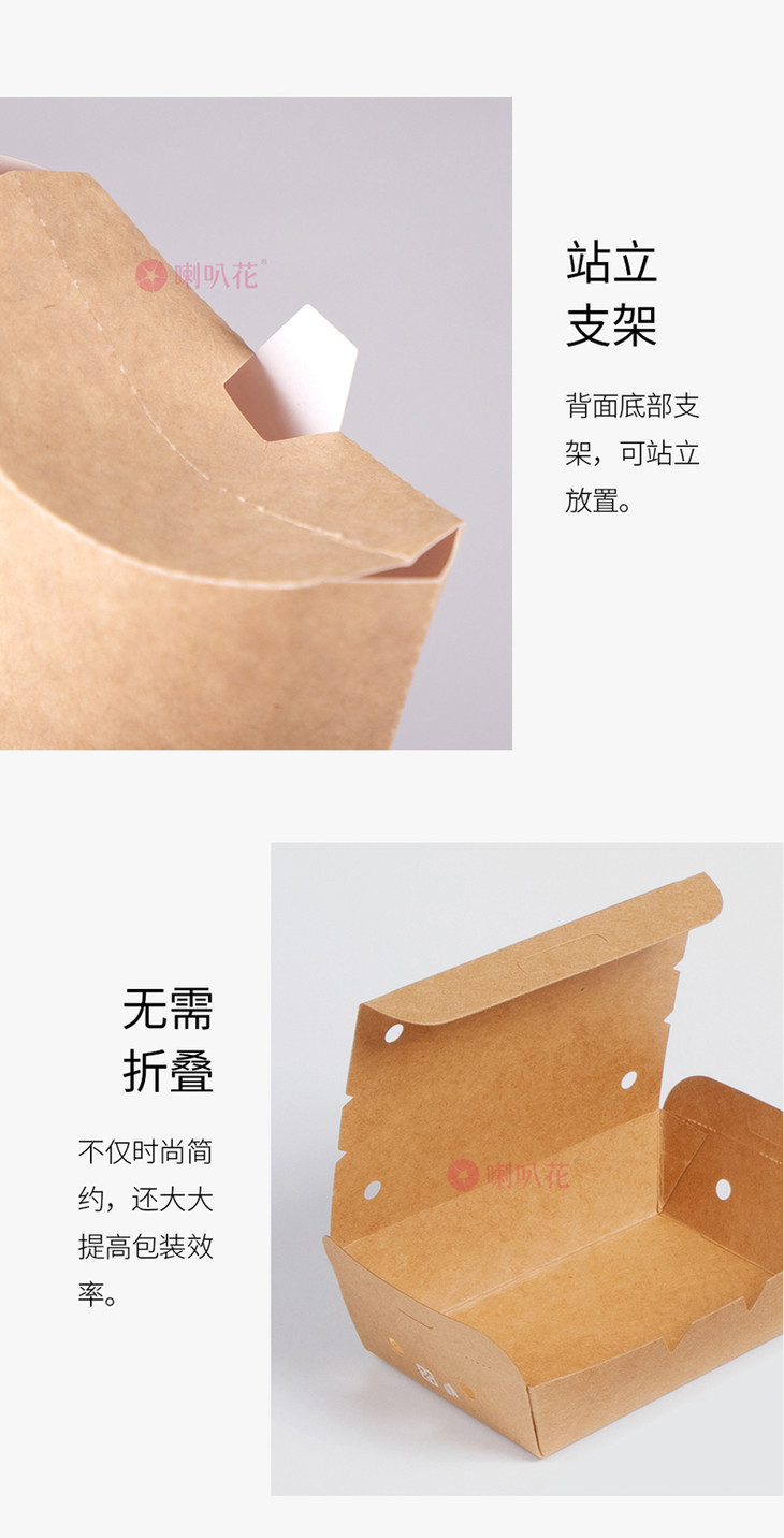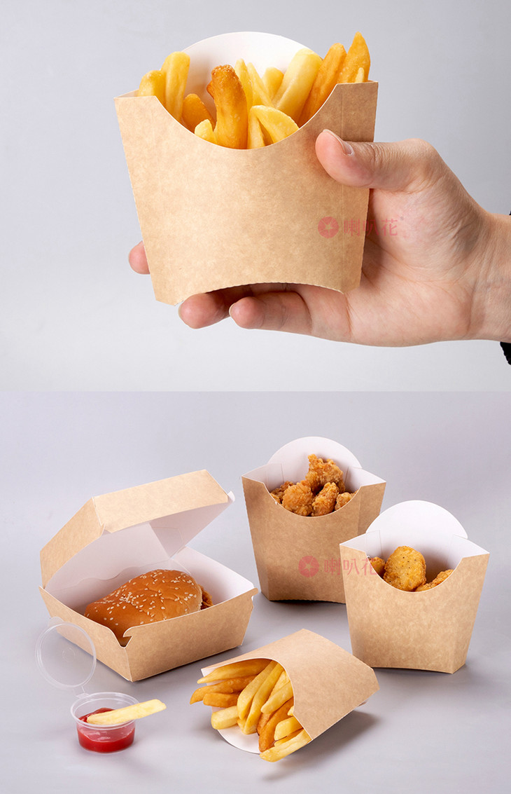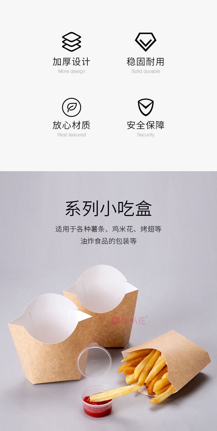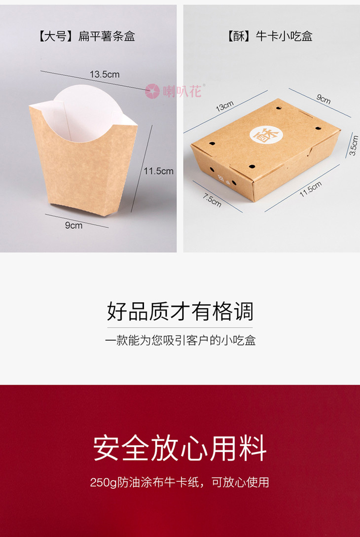 喇叭花一次性薯条盒牛皮纸鸡米花炸鸡盒汉堡小吃打包外卖包装盒