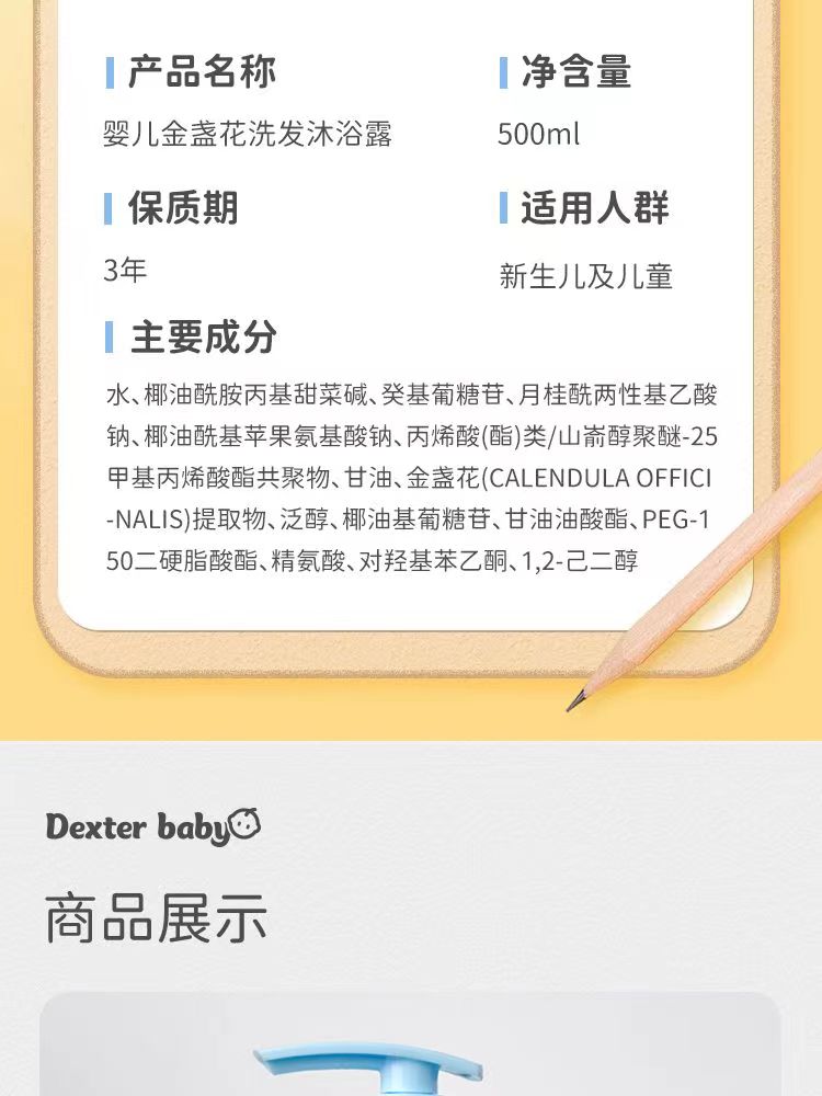 戴可思婴儿金盏花洗发沐浴露二合一500ml