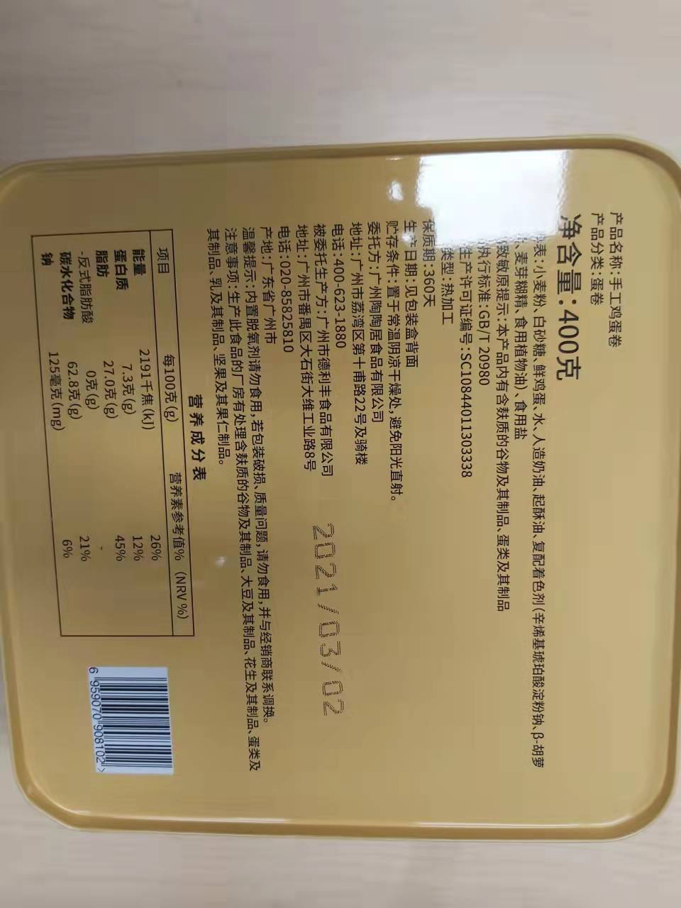 【陶陶居-手信】手工鸡蛋卷400g 广府蛋卷