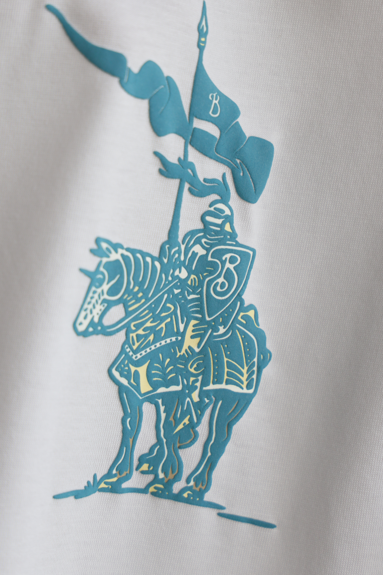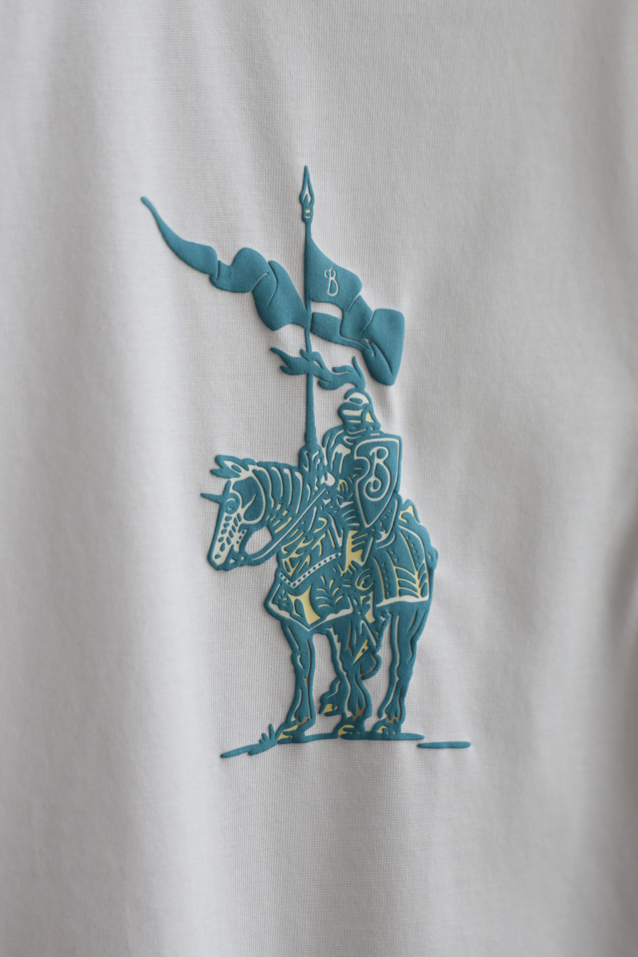 B.B 战马三色丝光 发泡印花 圆领T恤