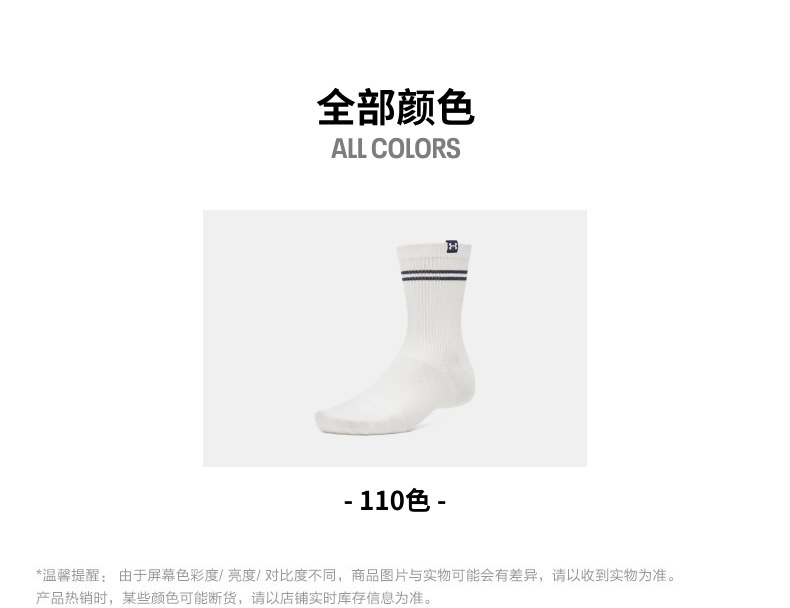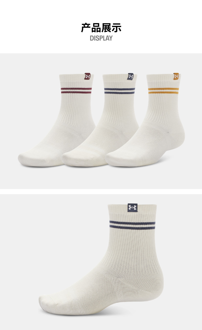 【春上新】7楼安德玛UA Sportstyle男女情侣运动休闲中筒袜-3双装1390130 吊牌价199元
