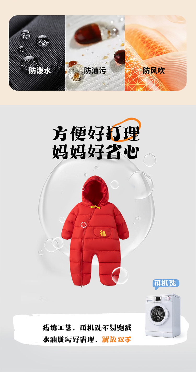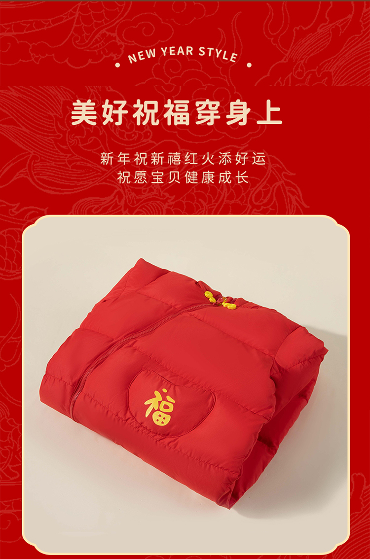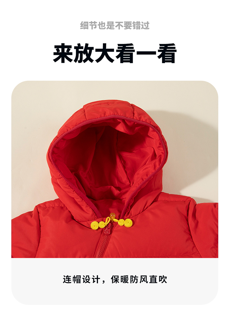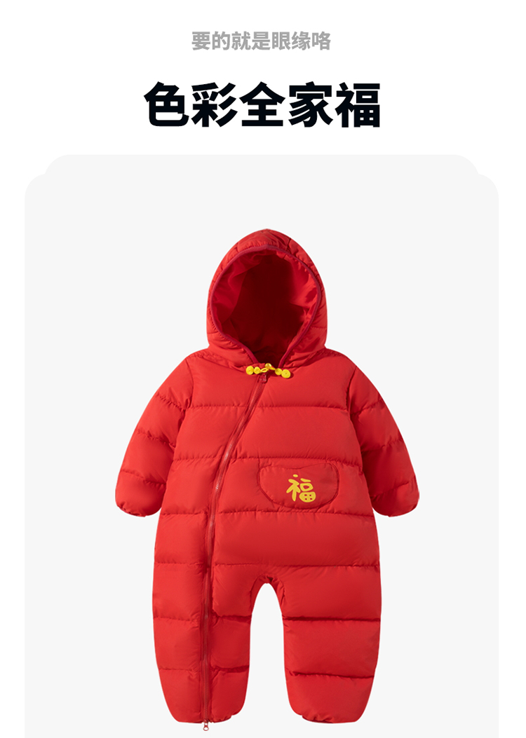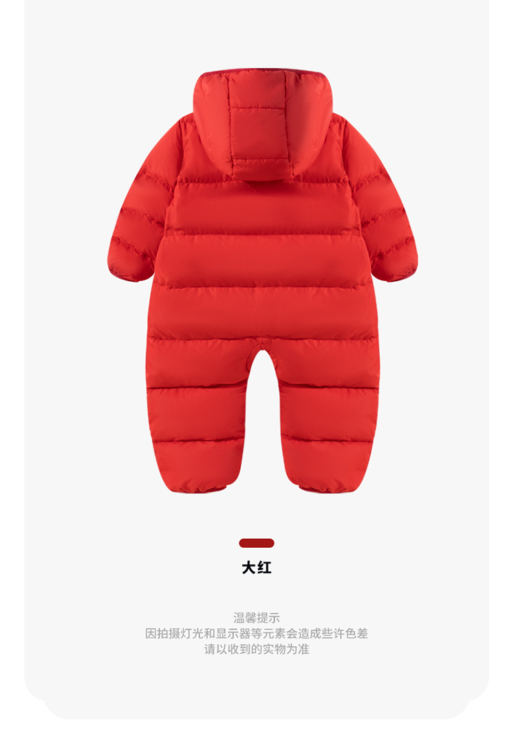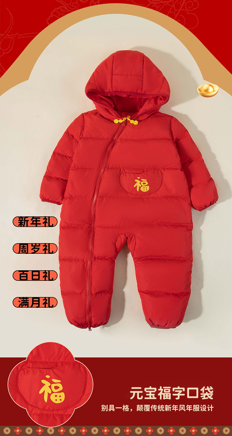 贝贝怡童装男女宝宝连帽羽绒服新年连体衣新生儿加厚连身衣拜年服ZB4DL002