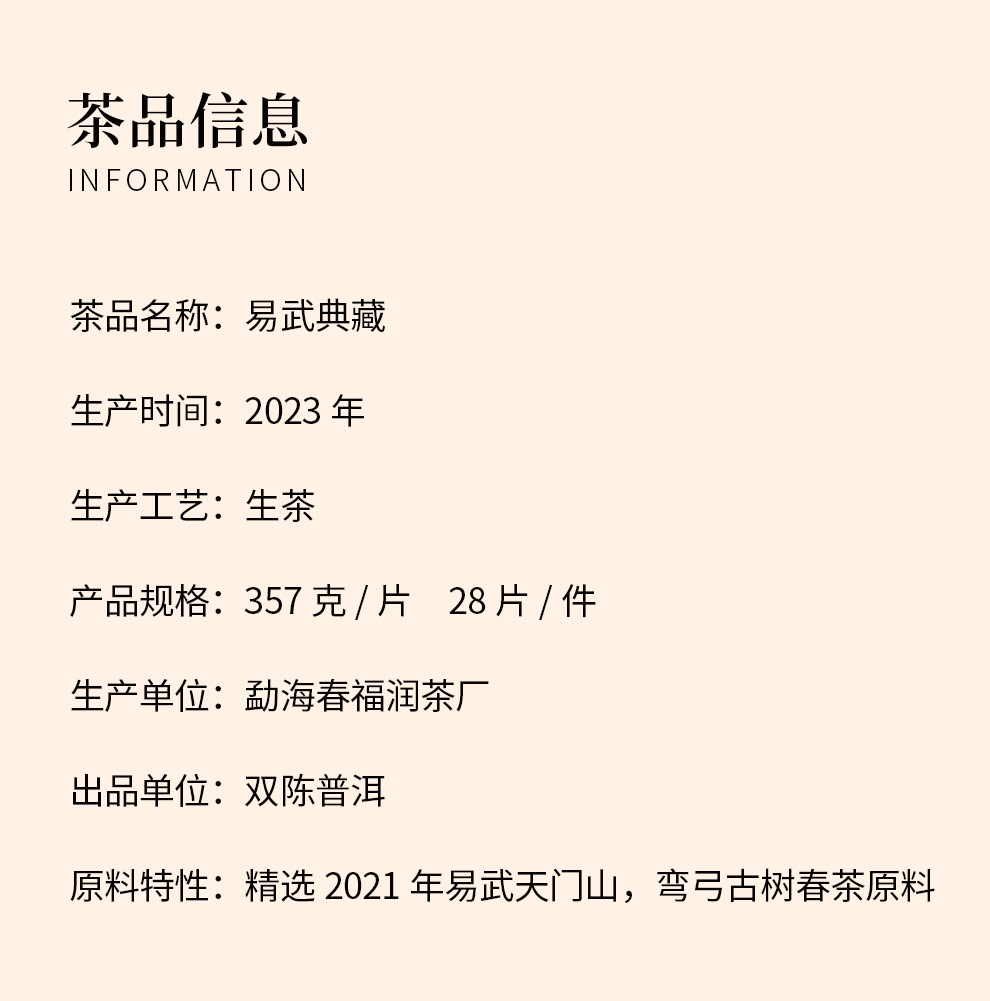 双陈2023年易武典藏生茶357g天门山弯弓高端名山春茶易武之美典藏之作