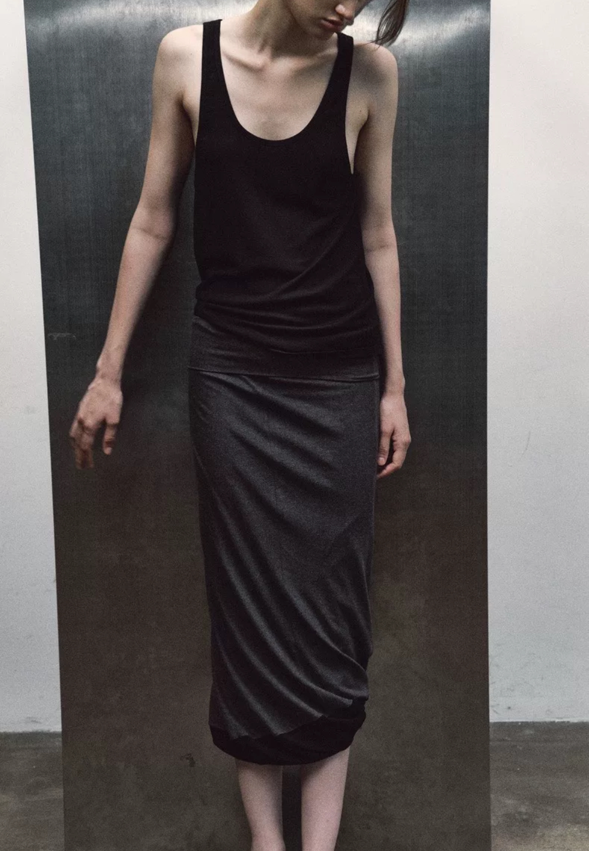 [特价]双面可穿 软糯高弹旋转扭造型半裙 灰色