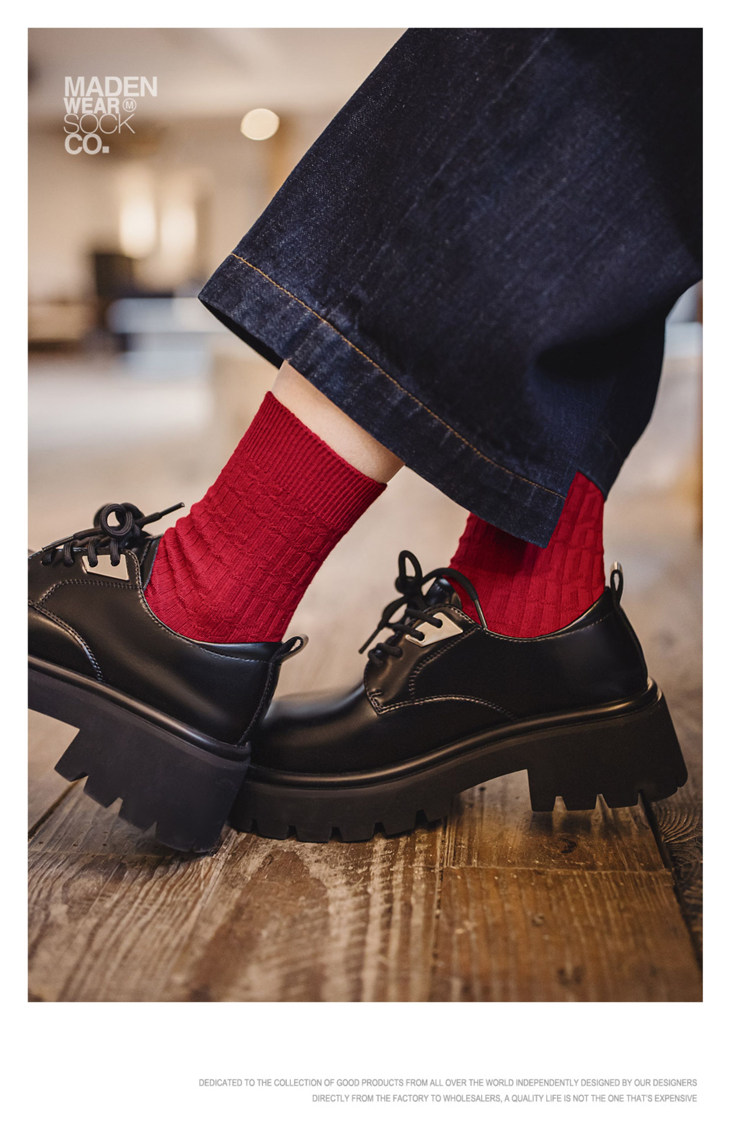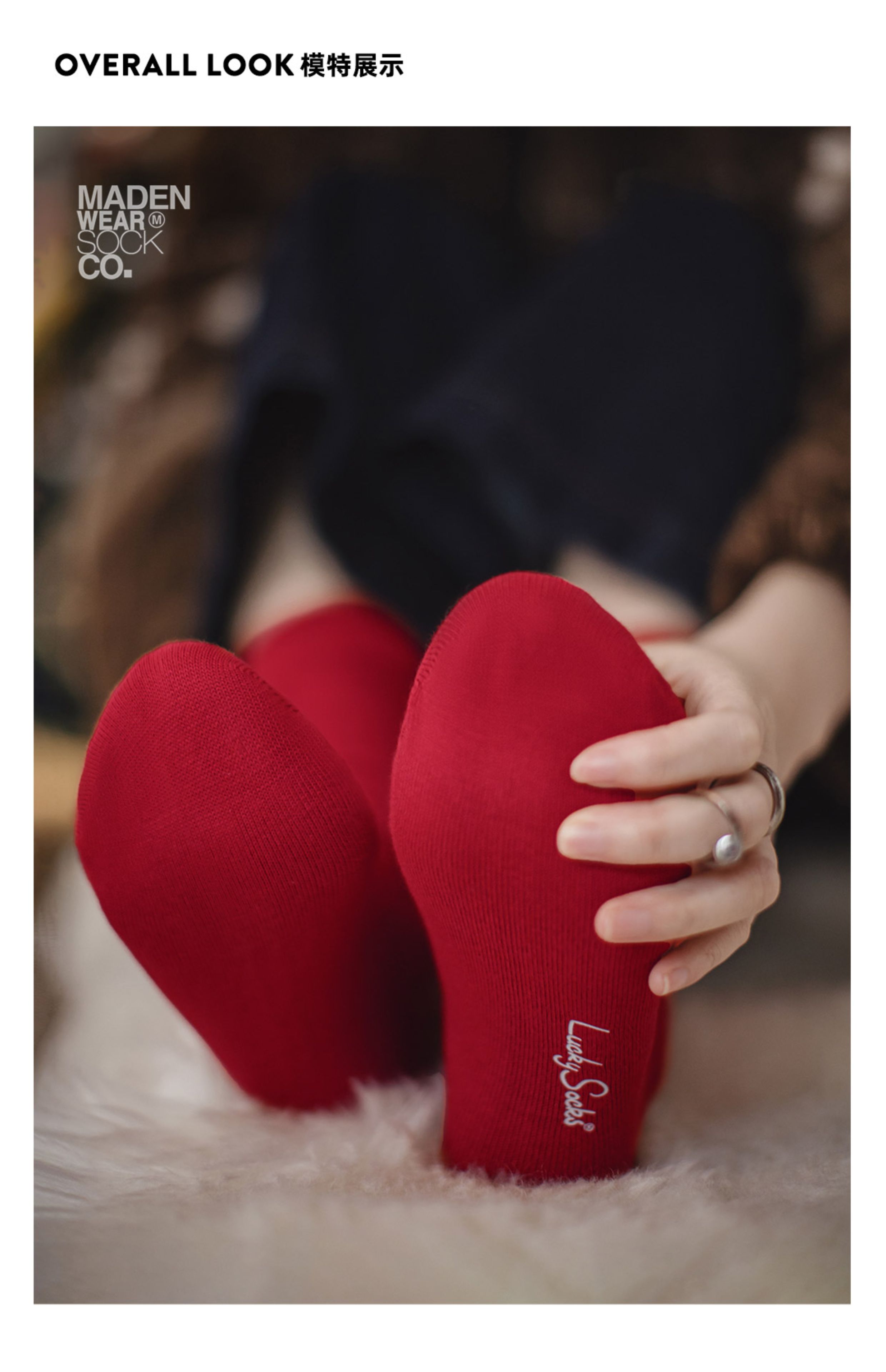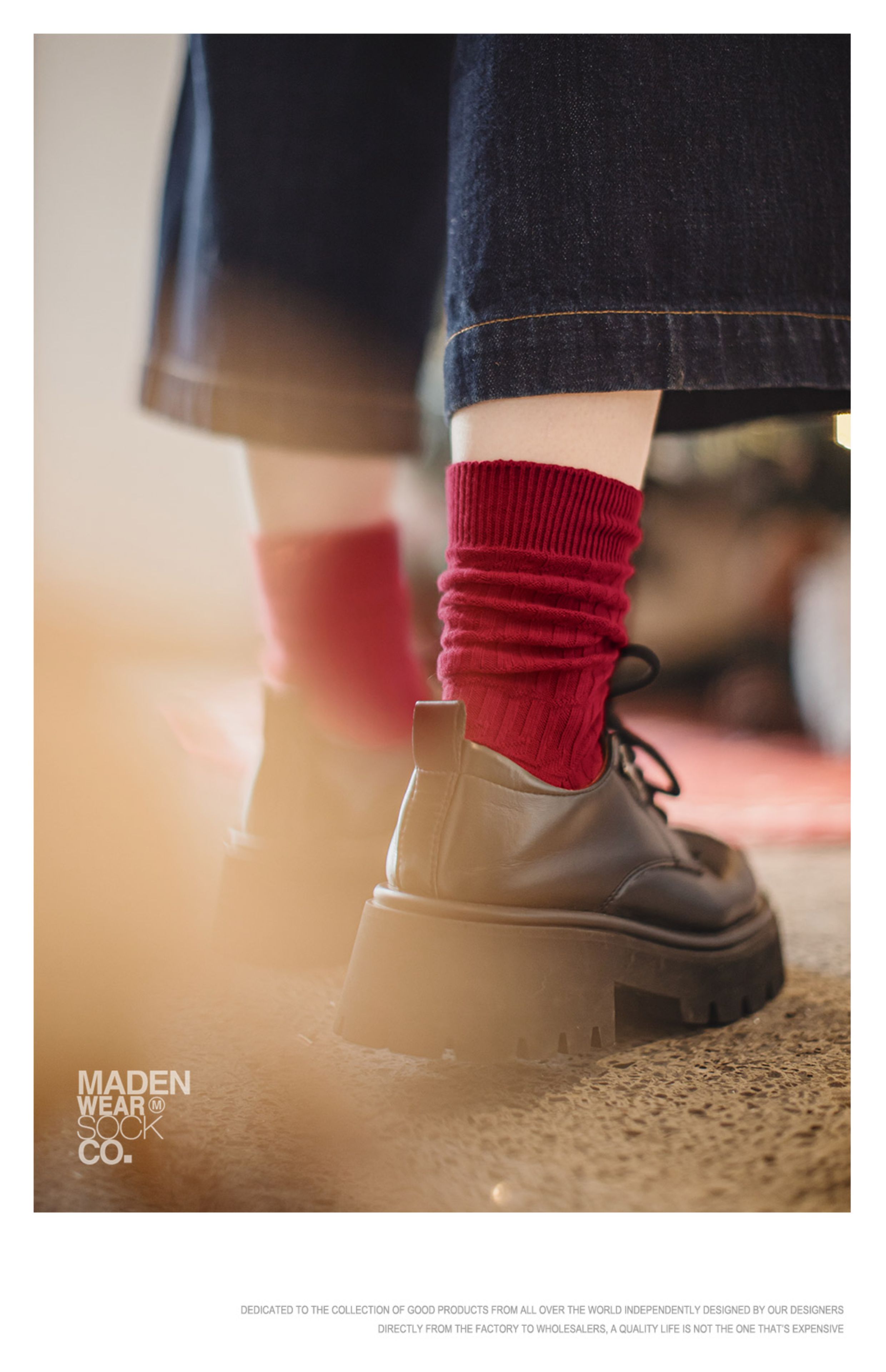 马登安可拉红圣诞氛围复古棉袜子中筒运动袜百搭精梳棉秋冬长袜女