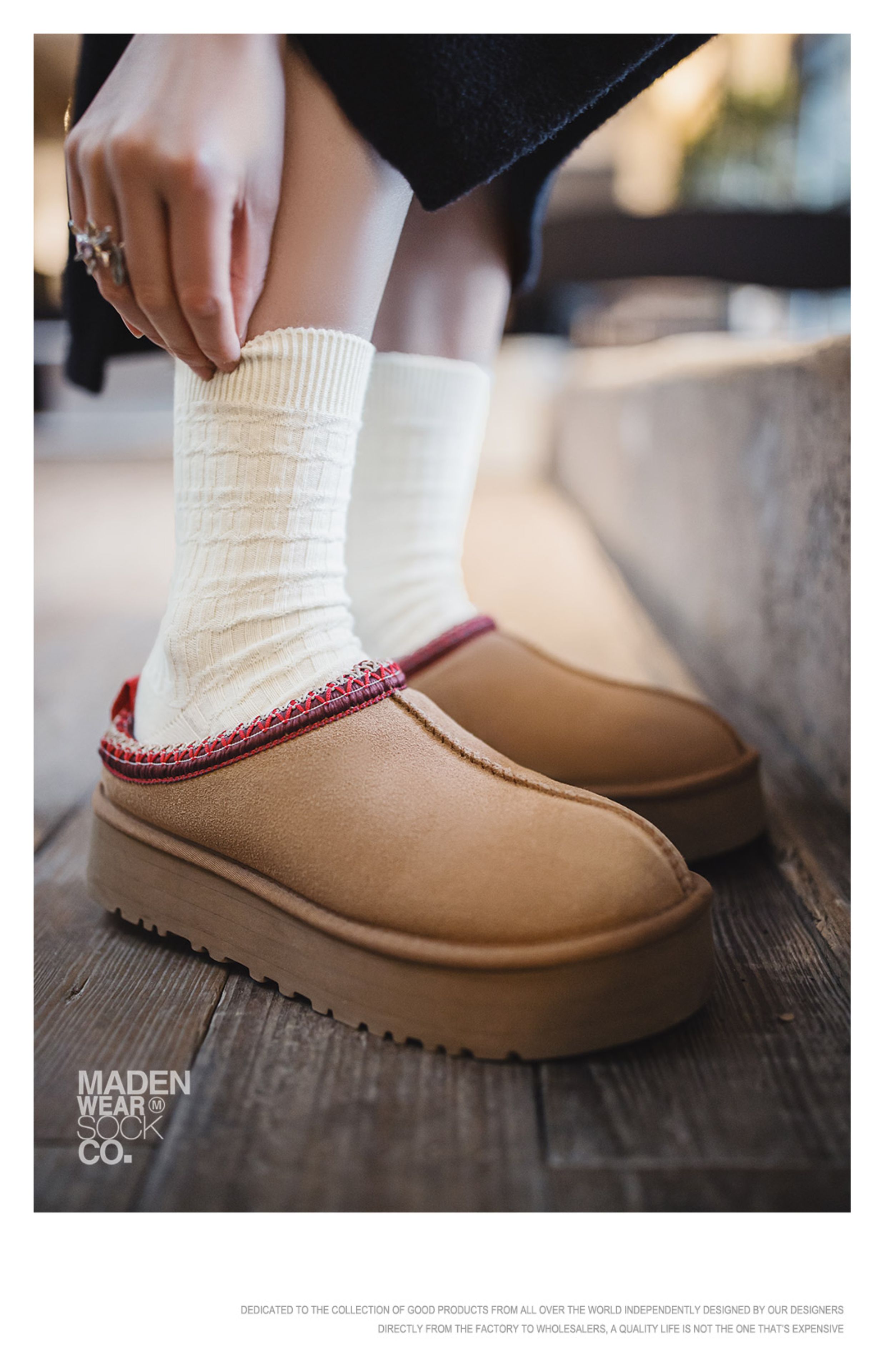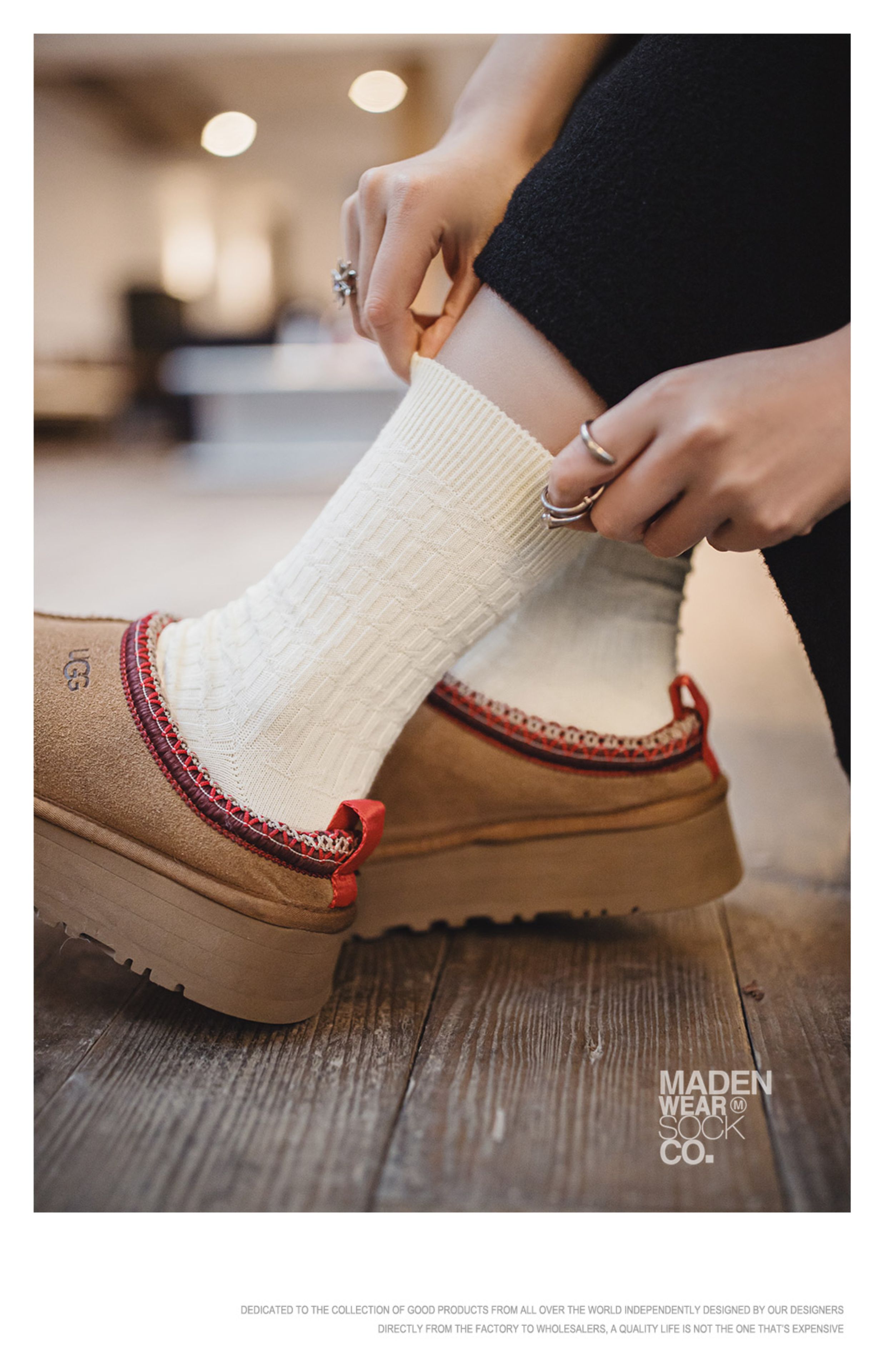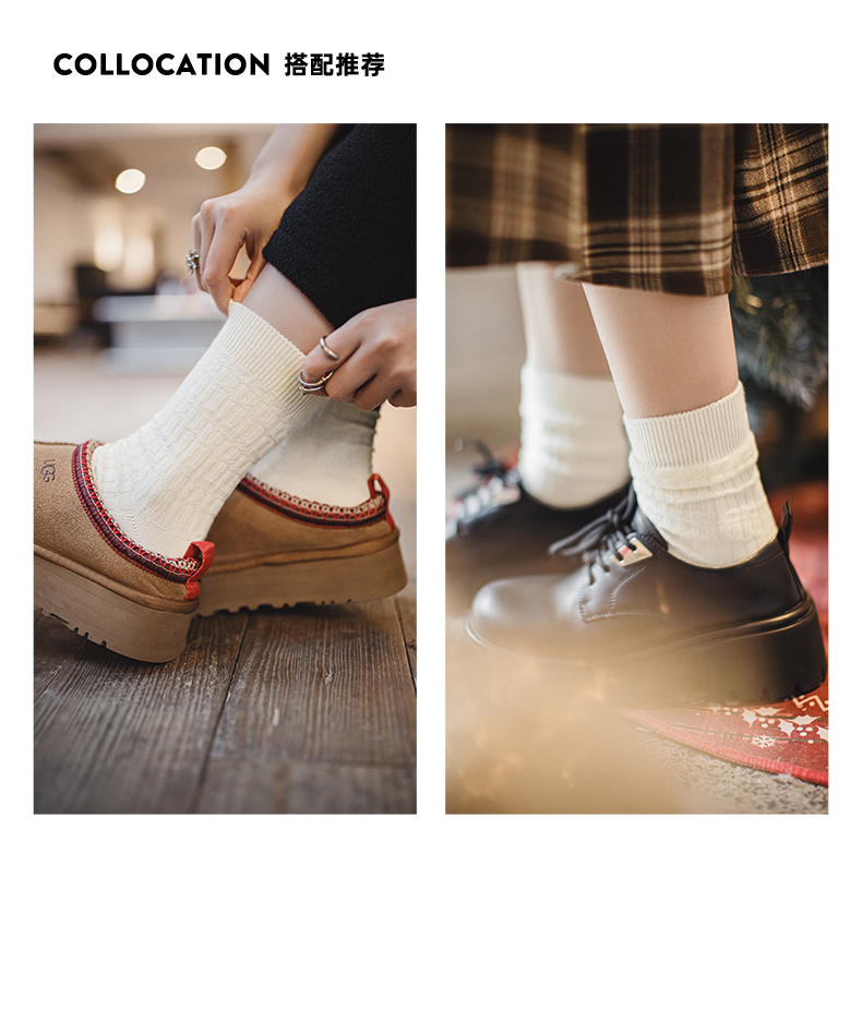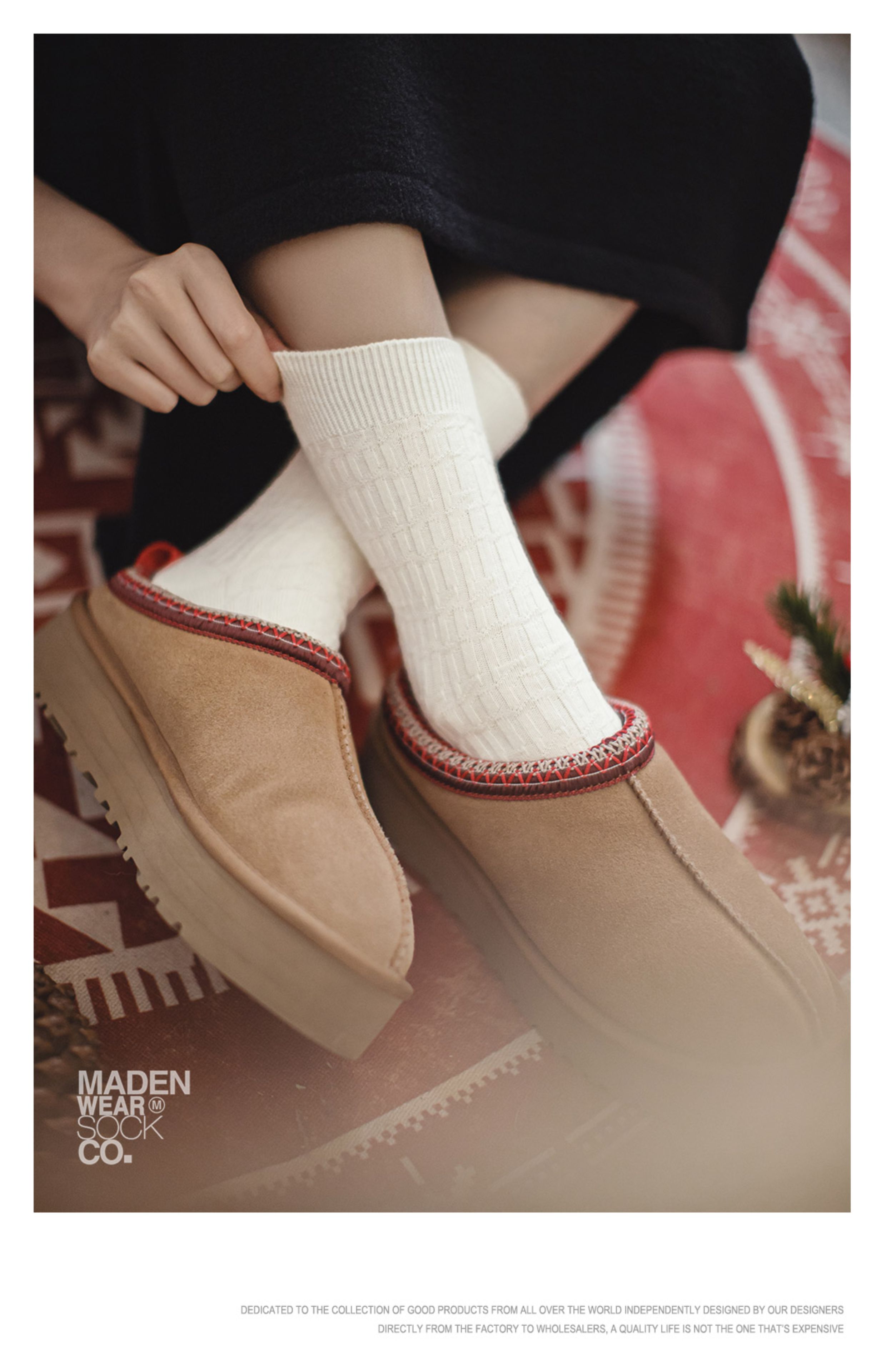 马登安可拉红圣诞氛围复古棉袜子中筒运动袜百搭精梳棉秋冬长袜女