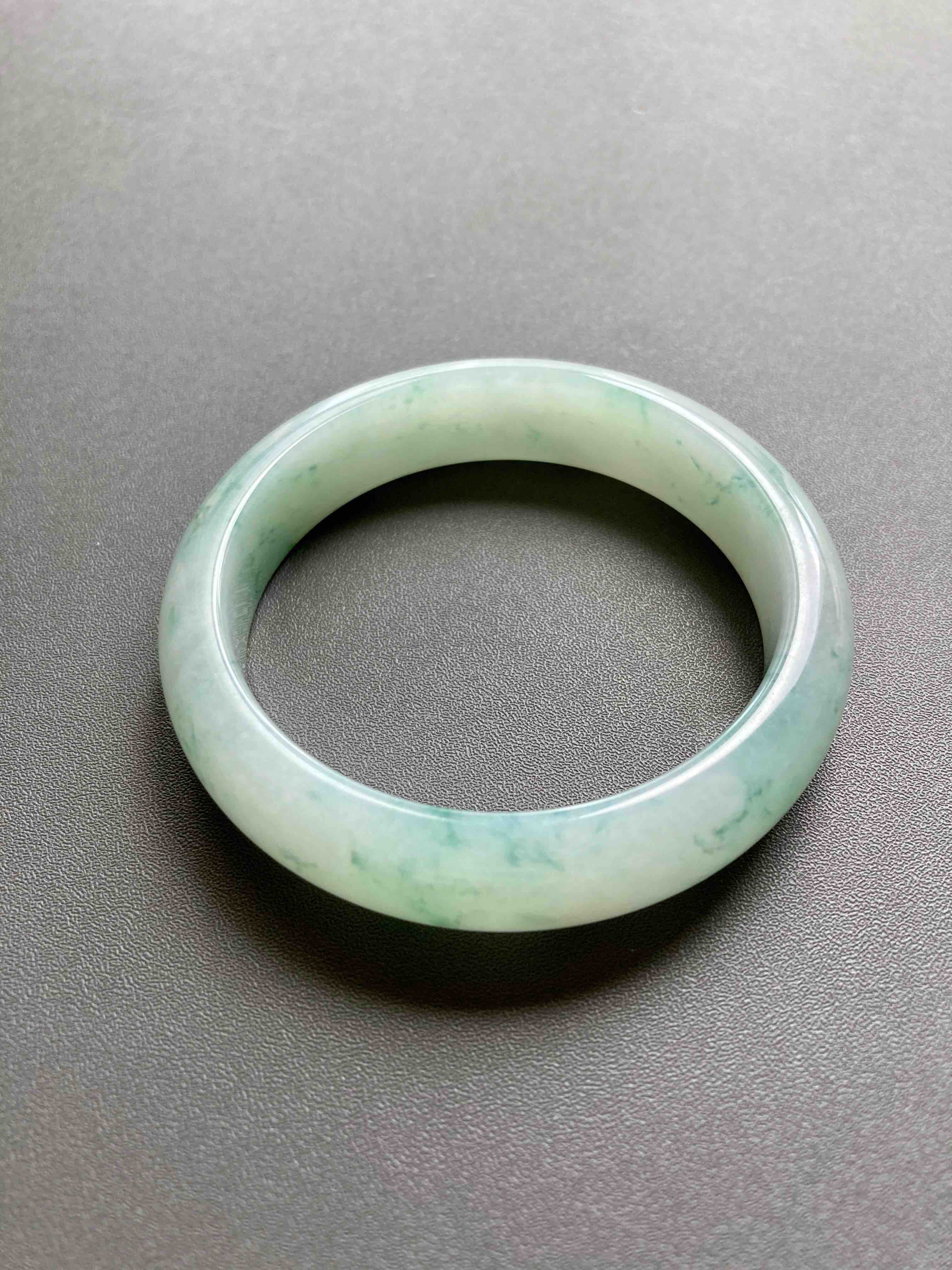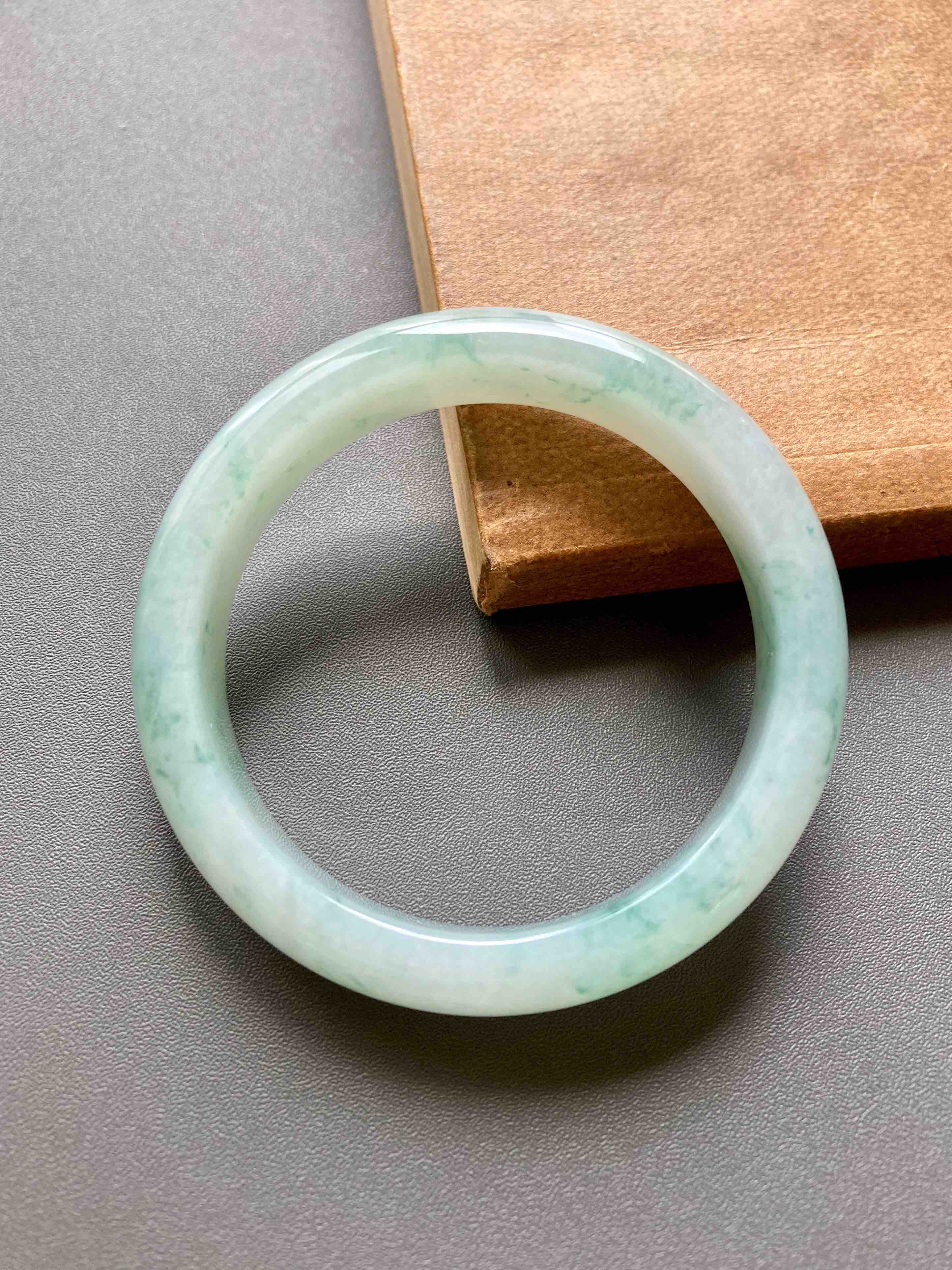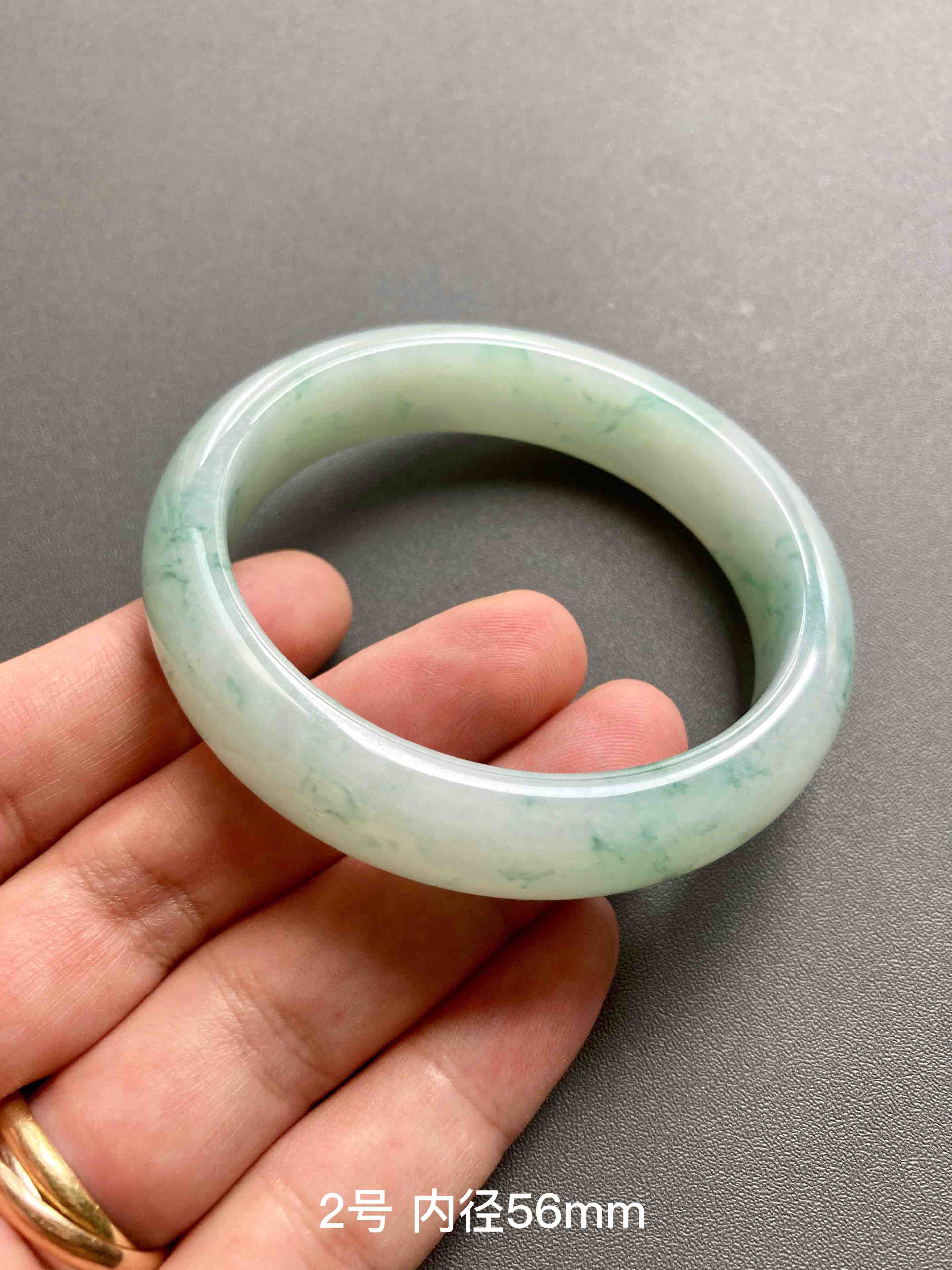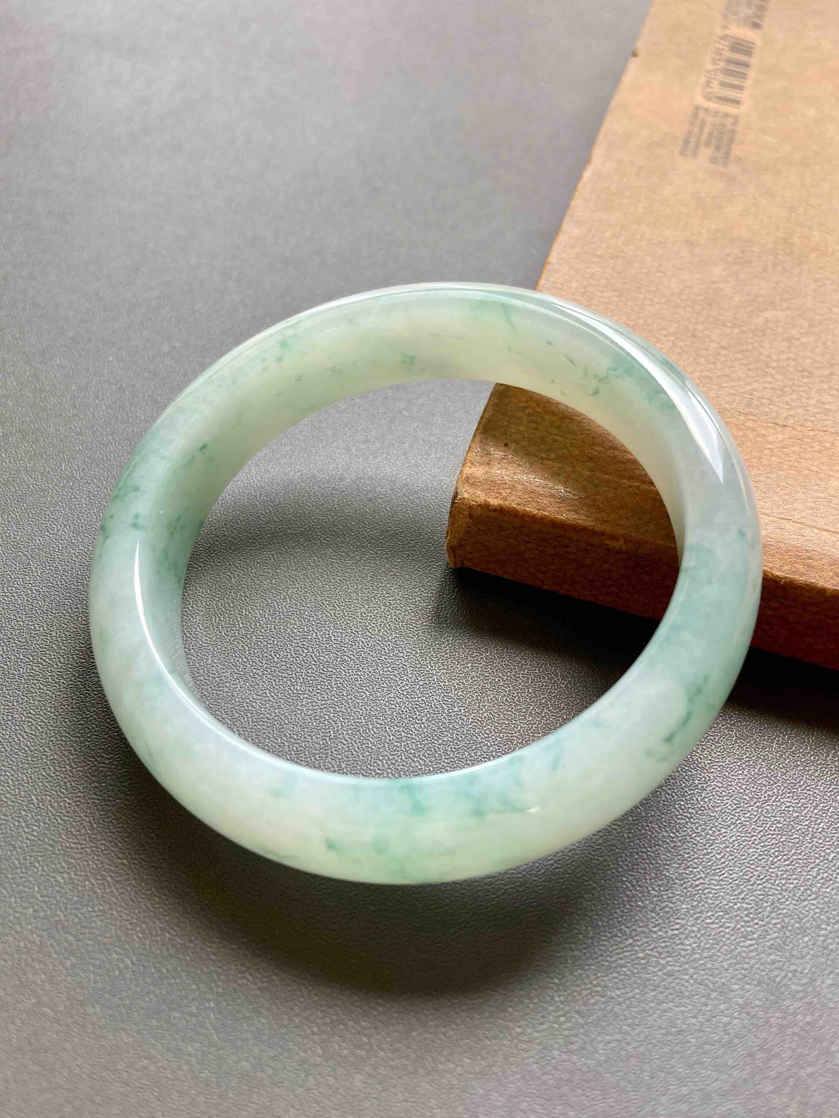 糯冰种飘花翡翠手镯56,牛奶一样细腻丝滑质感的手镯人人喜欢,再加一点果冻感是不是就更棒,推荐一个种水特别好的飘花手镯,晶莹剔透,细腻得几乎没有结构,飘小碎花,戴着显肤色,青春靓丽的那种,漂亮啊,内径56mm,宽13.3,厚8.3mm,手寸55到57都可以戴,是你吗