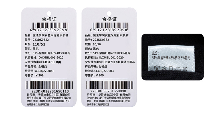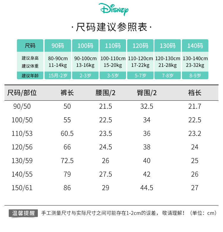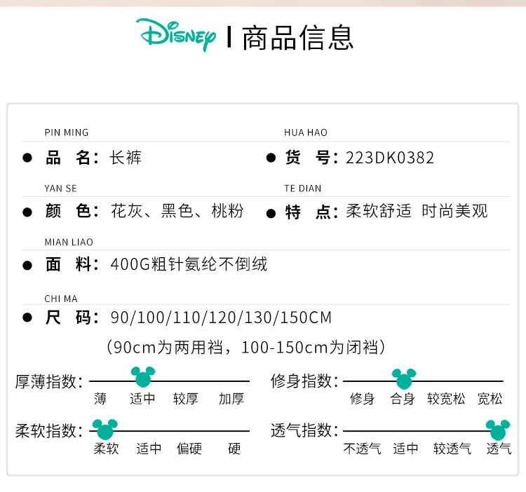 【商场同款】迪士尼女童秋季加绒保暖长裤223DK0382