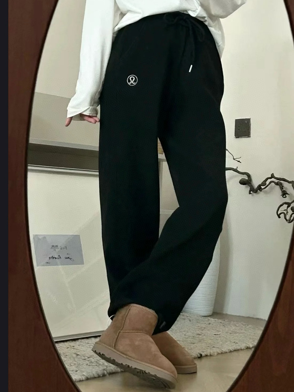 秋款,lulu液氨阔腿裤,无敌舒服!Lulu弯刀裤莫代尔运动长裤休闲裤阔腿裤 混纺裤