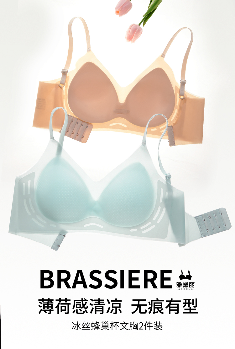 雅黛丽内衣女夏季薄款小胸透气无痕文胸软支撑防下垂冰丝美背胸罩