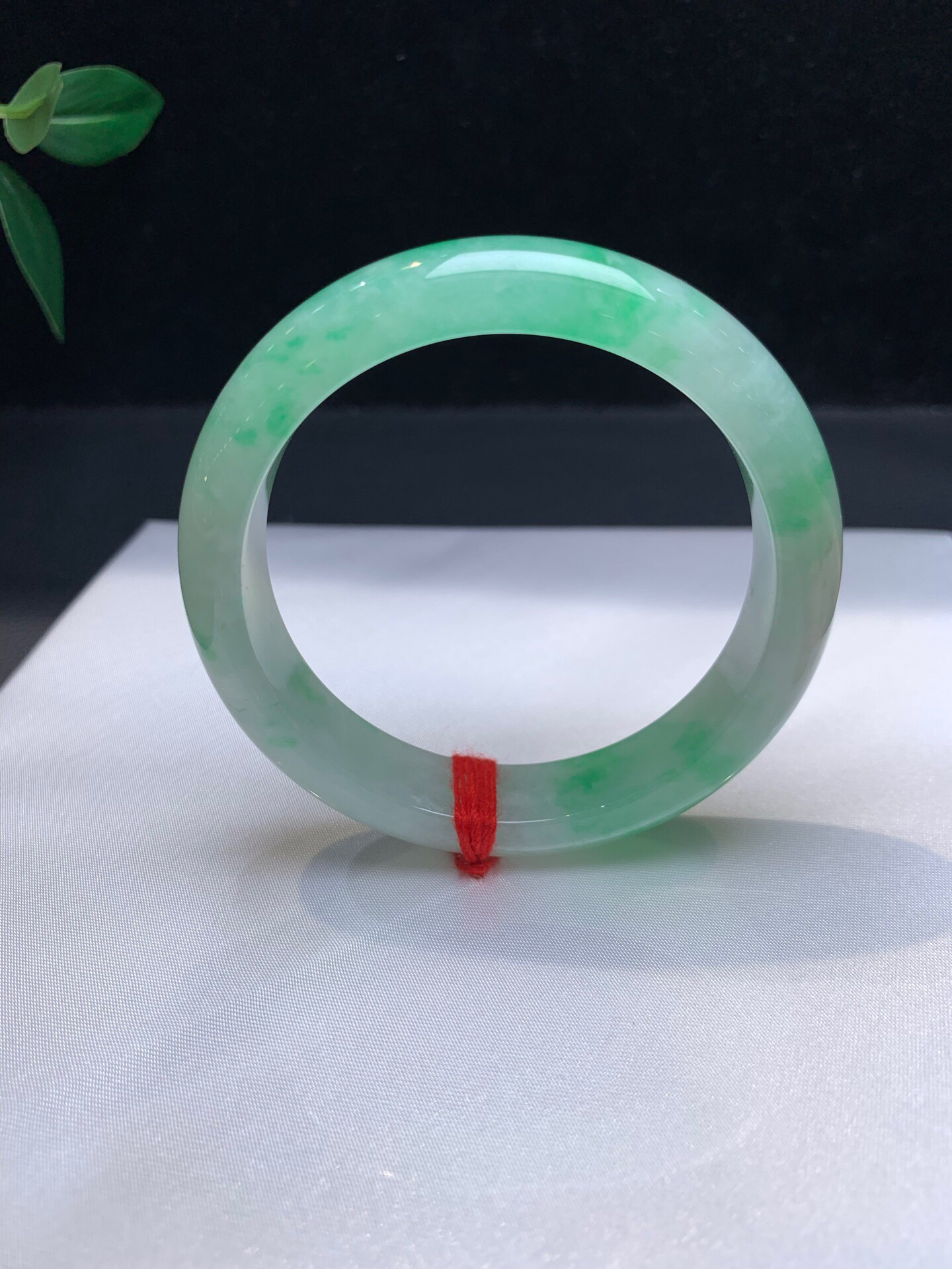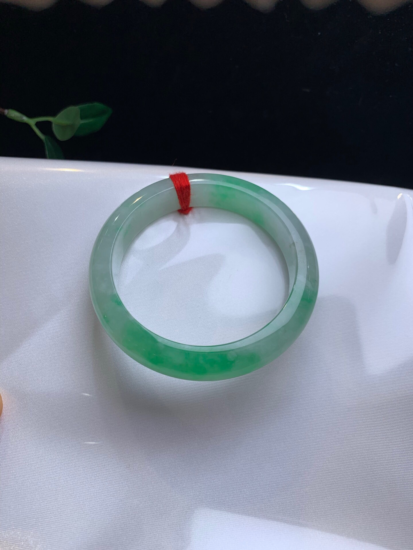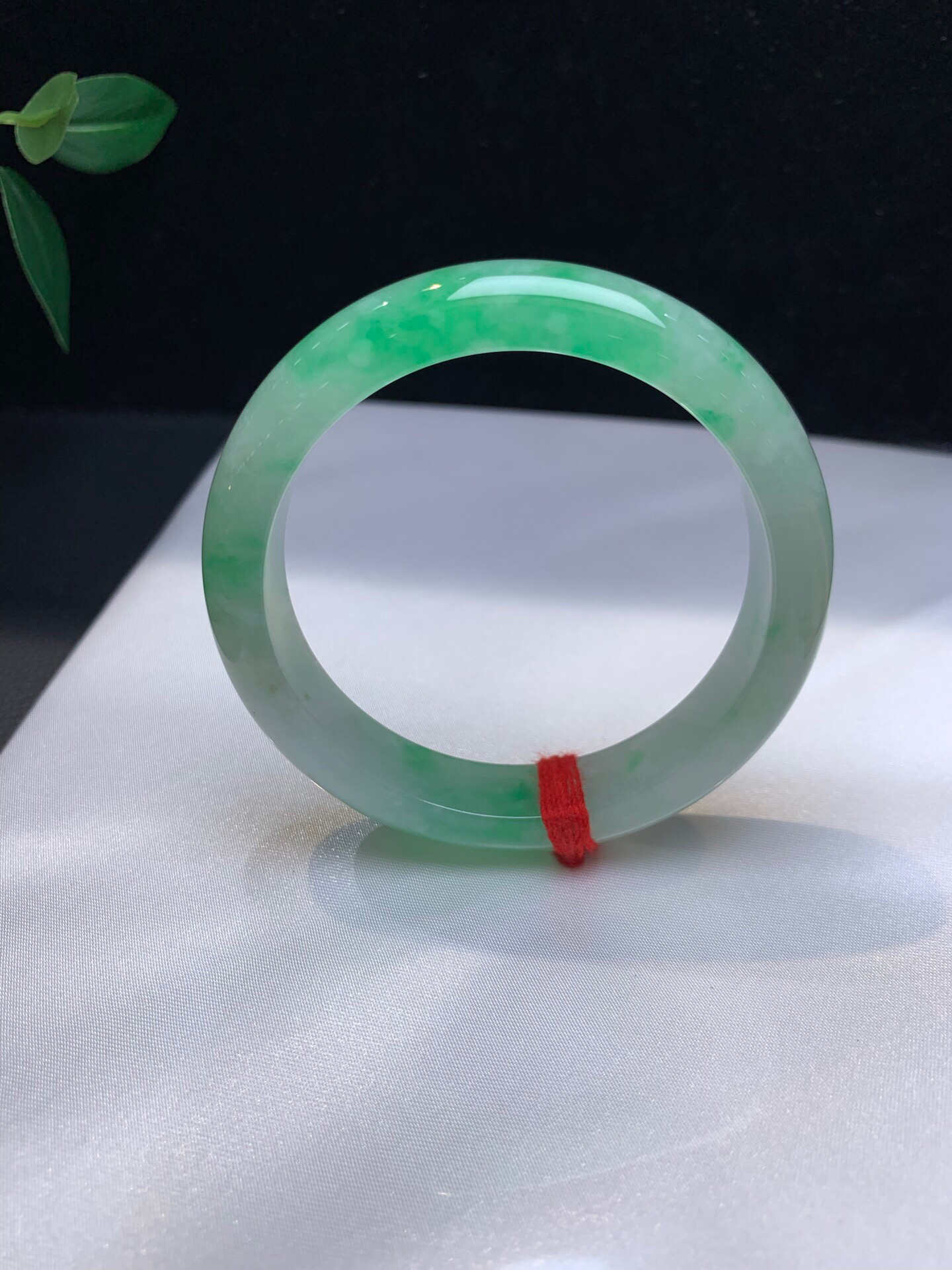 620162,55.5冰阳绿色手镯,种水好,一大截阳绿色,就是略有些棉感,上手效果特别美