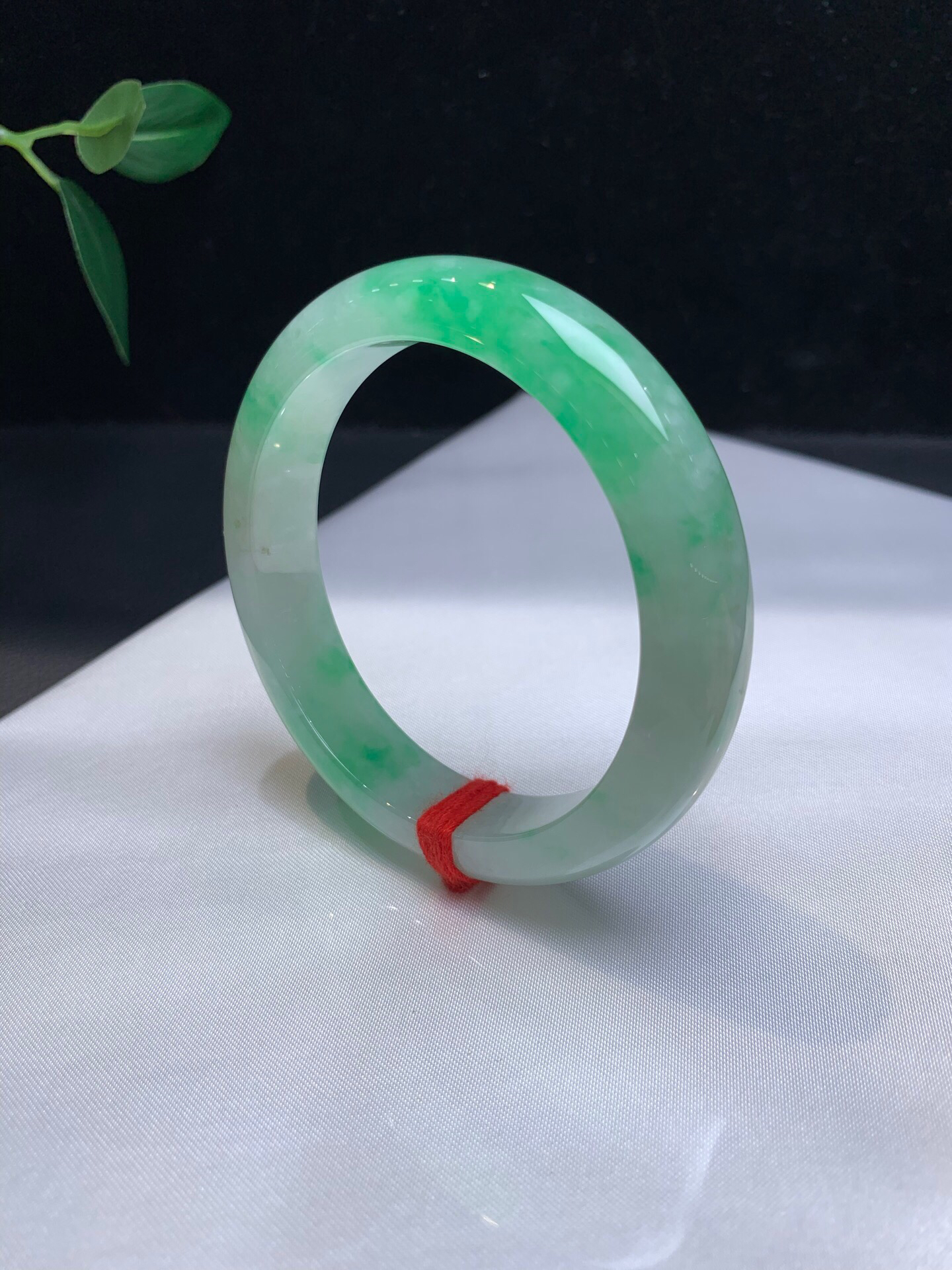 620162,55.5冰阳绿色手镯,12.8-8.2mm,种水好,一大截阳绿色,就是略有些棉感,上手效果特别美,无裂纹 ,超值价💰104000 #优石客珠宝#香玉荟萃