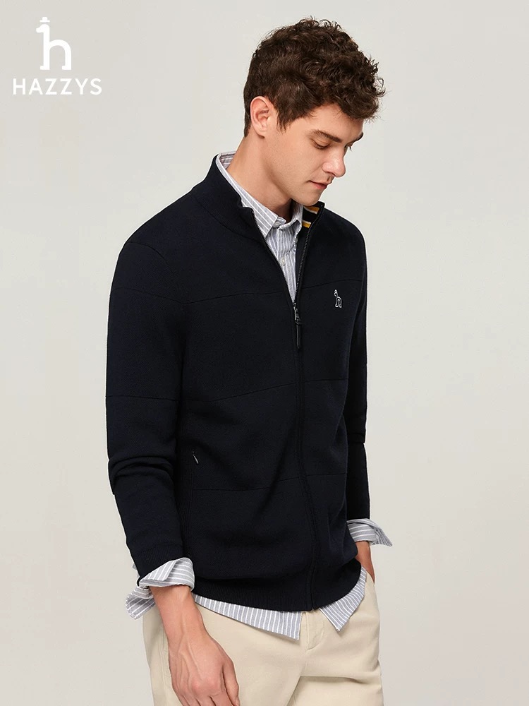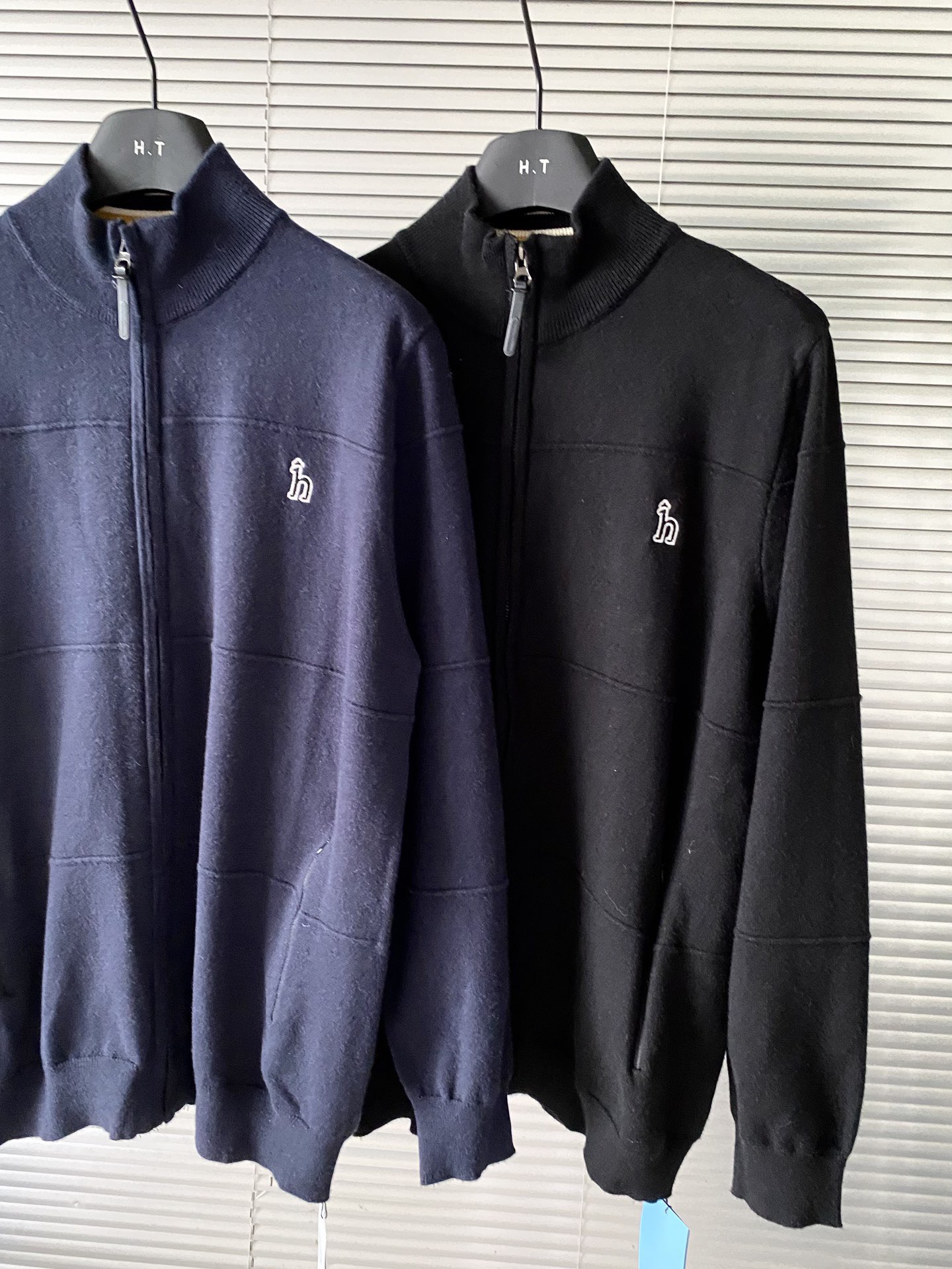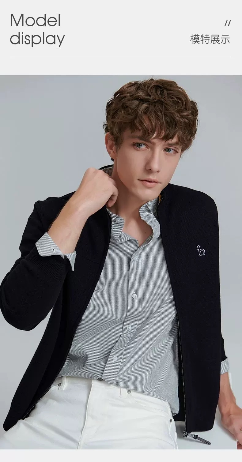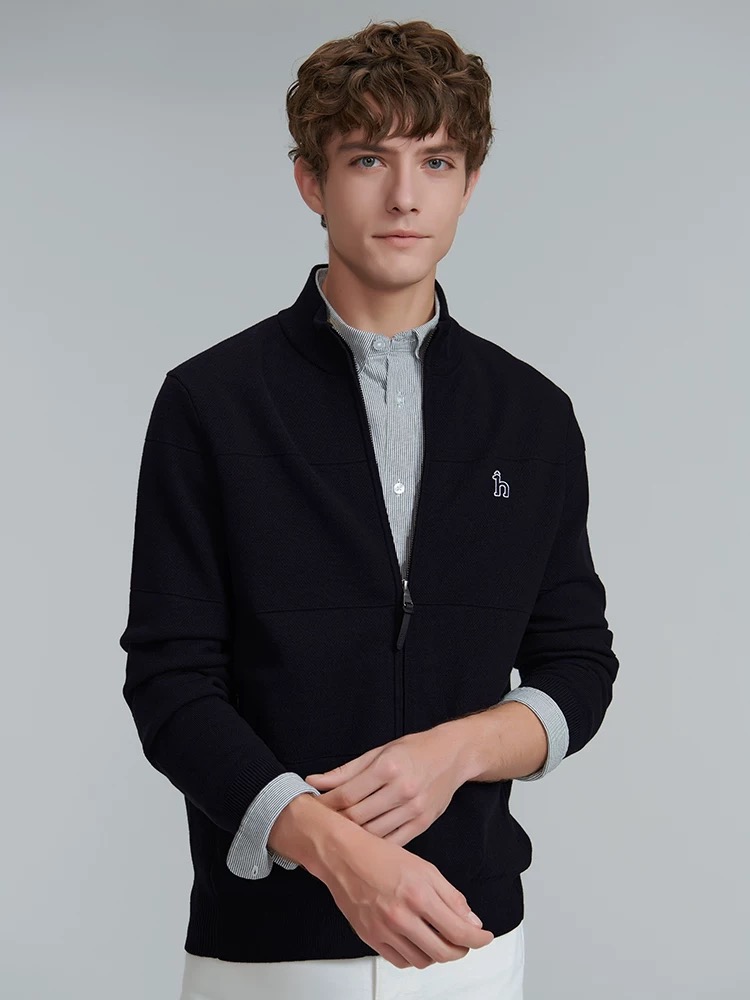 2025秋冬新品男士上衣 纯色长袖针织开衫 拉链保暖外套 精典刺绣logo 图案立体精 致有型 长形拉链头开合顺畅 螺纹袖口更贴合身型 下摆也采用了螺纹收口穿着舒适感和时尚感更强。本产品为羊毛混纺织物 (含有超过30%的羊毛成分)穿着途中经过大力摩擦等问题可能会出现起毛球属于正常现象,用剃毛机等工具剔除即可。另 羊毛混纺产品不建议高温洗涤及熨烫;不建议超大力拉扯。