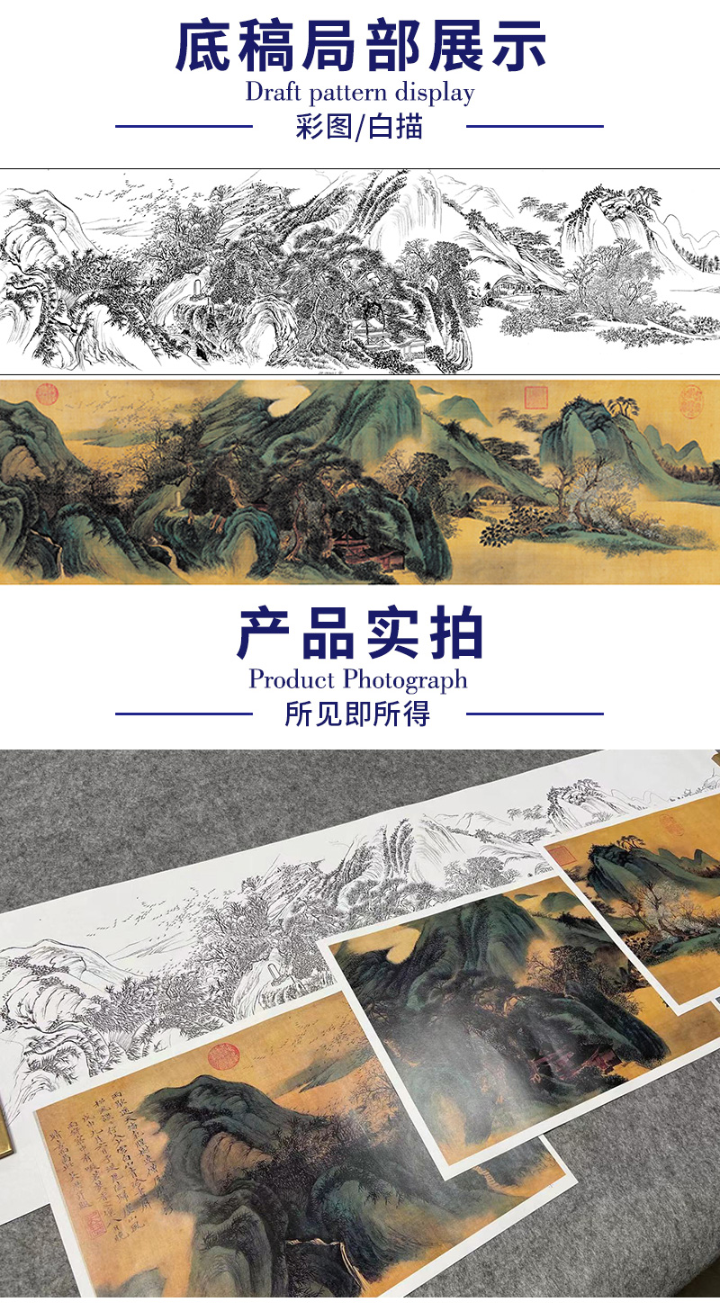 【长卷】工笔山水画白描底稿古画长卷吴历《云白山青图》多种白描尺寸可选G038
