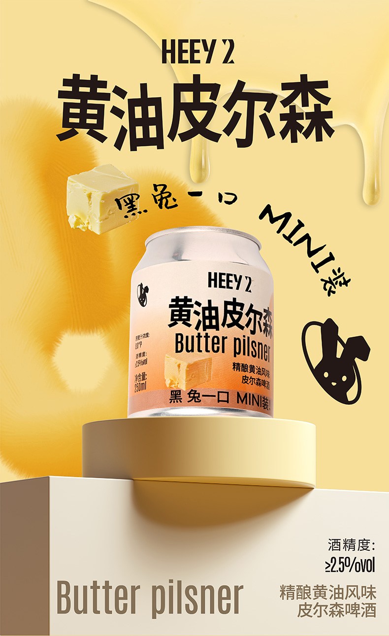 莱宝啤酒黑色兔子精酿黄油风味皮尔森啤酒聚会饮用低度新品