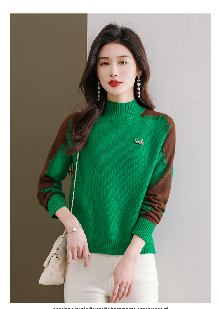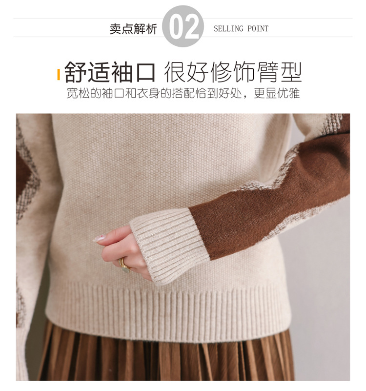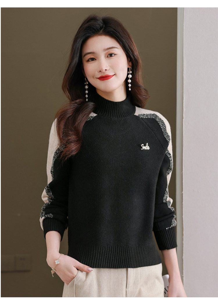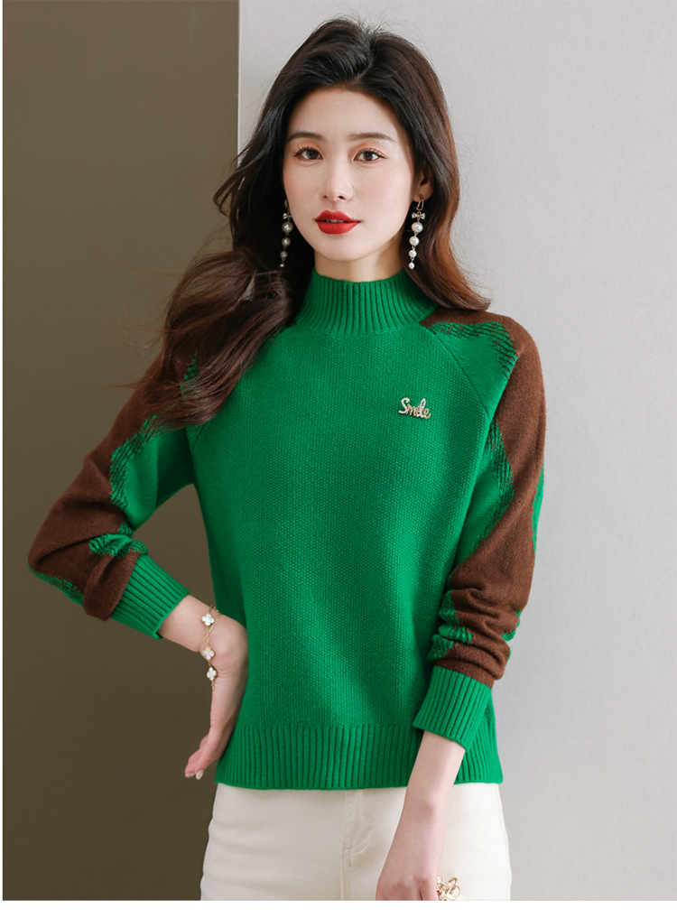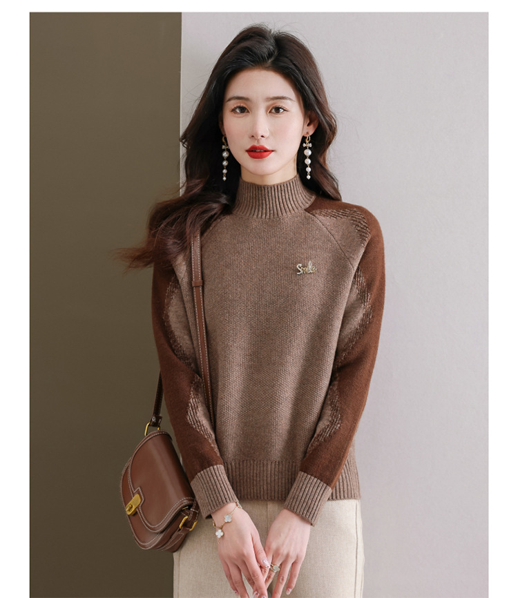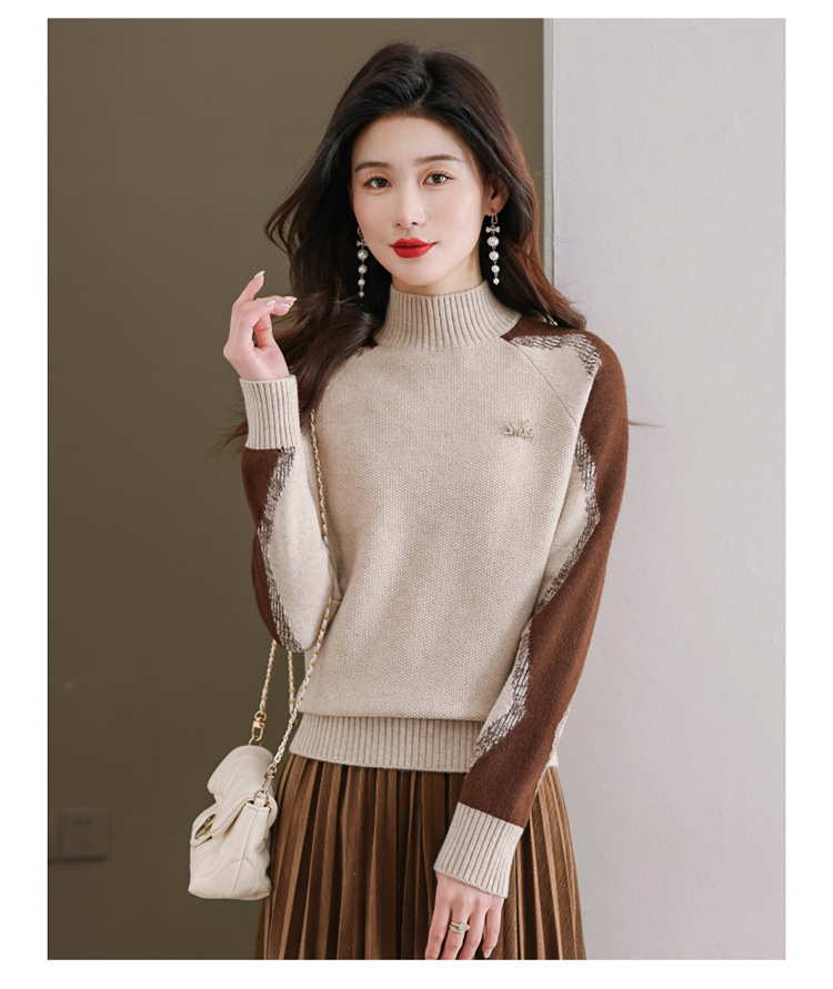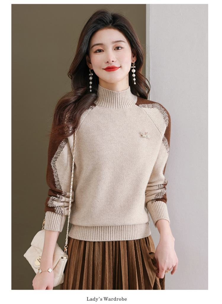 CC-101-90925半高领拼色羊毛毛衣女秋冬新款厚款慵懒风宽松时尚洋气针织上衣