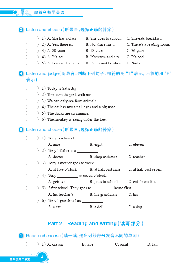 本丛书编者队伍是由具有多年一线教学经验的优秀小学英语教师组成。这些教师非常了解英语教材和课堂教学的实际情况,能在全面分析教材重难点的基础上,有侧重地设计练习,从而切实帮助学生提高英语学习的效率和效果。