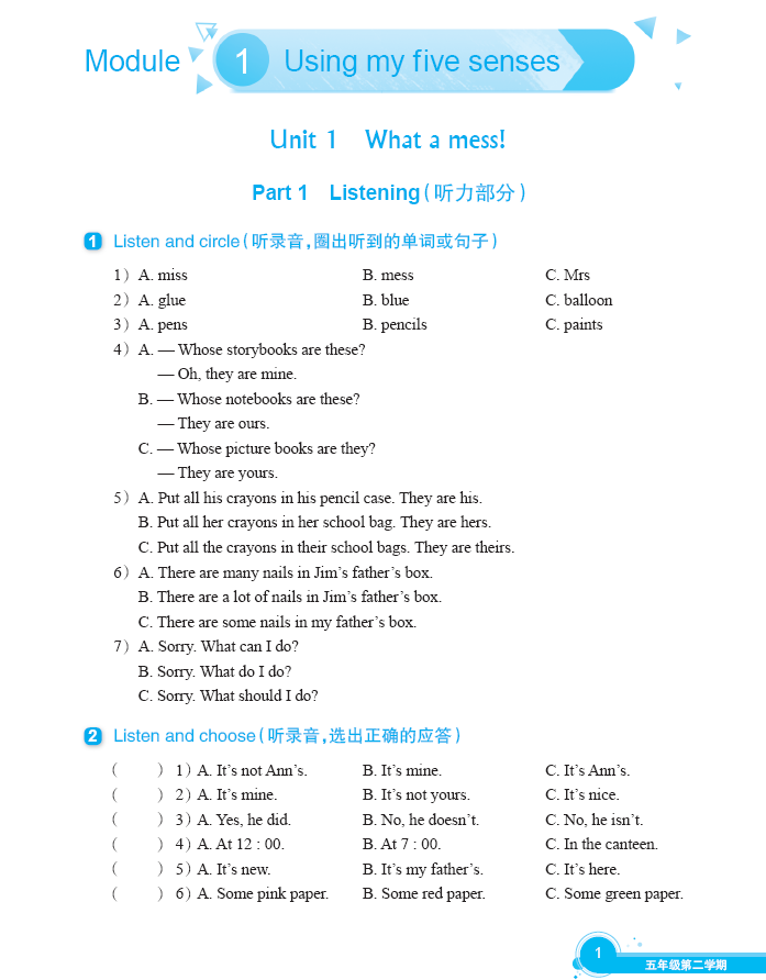 ◆ 循序渐进,提升能力 练习按从易到难的梯度编排,强调知识的循环复现,帮助同学们在掌握好课本核心知识的基础上,再针对重难点作进一步的巩固与拓展。在提升能力的同时,逐步增强同学们学习英语的自信心。