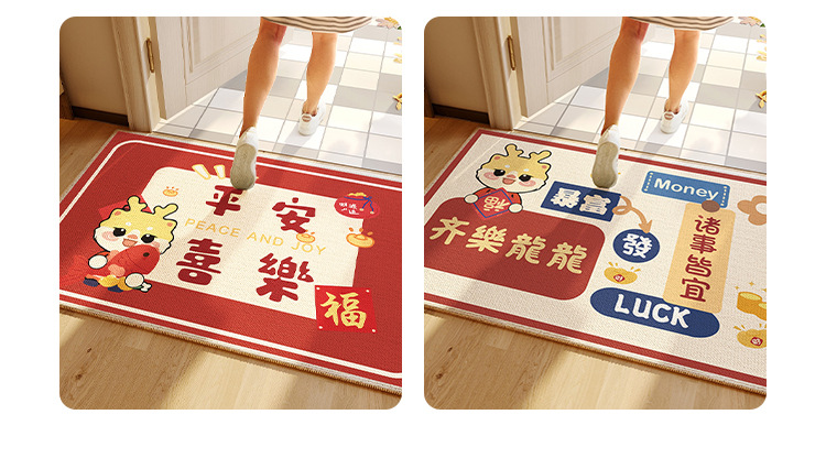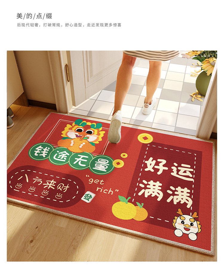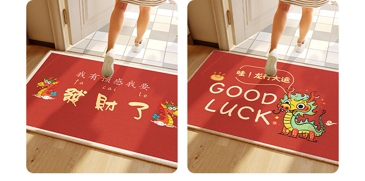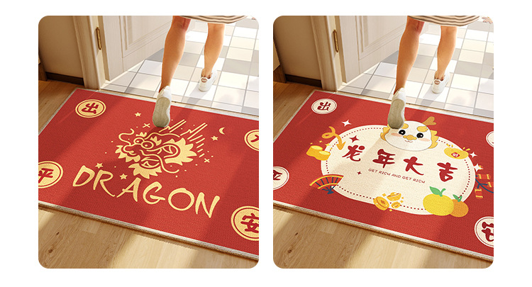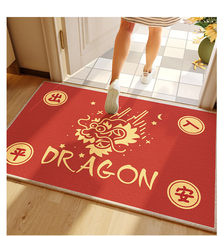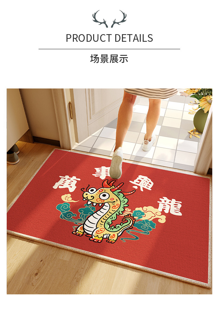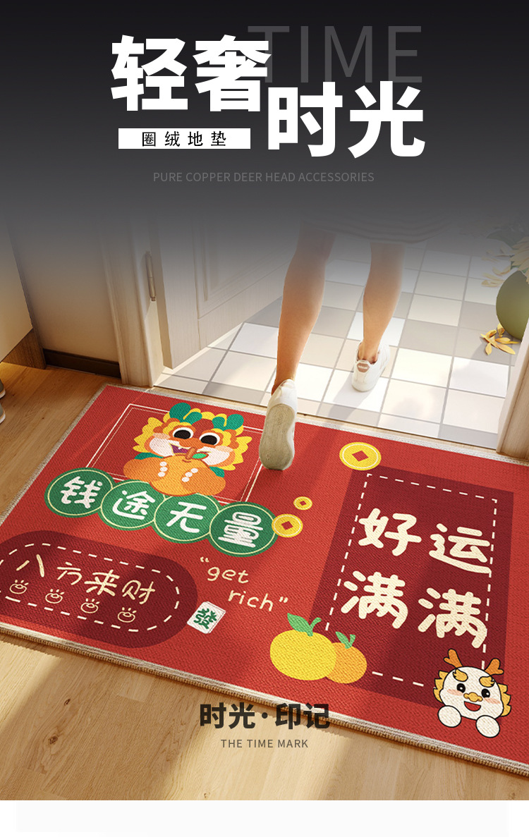 【享受时光!简约生活】卡通龙年入户地垫红色喜庆,玄关门口防滑垫家用圈绒门垫,舒适温馨 锁边平整 贴合地面
