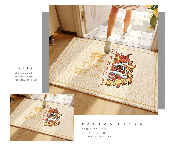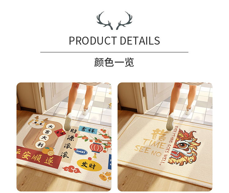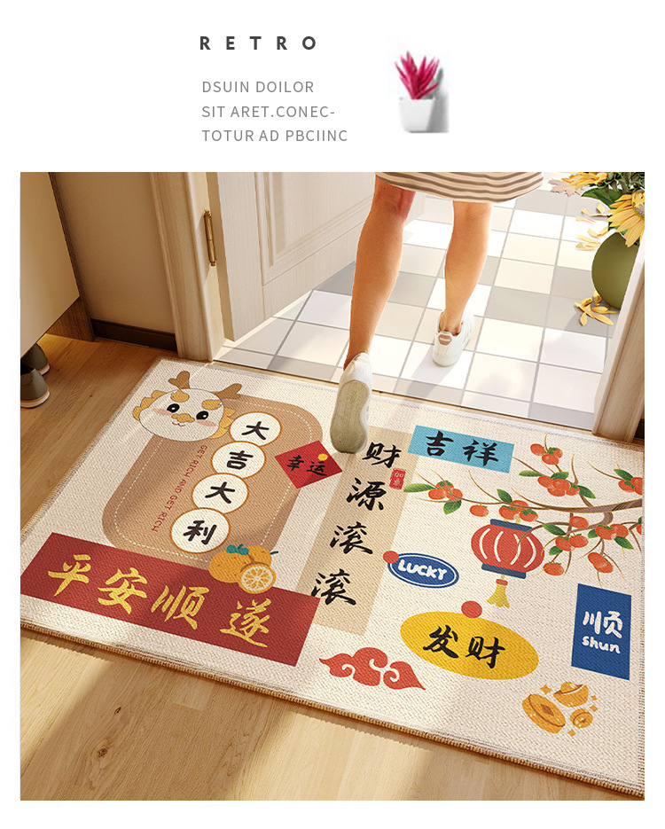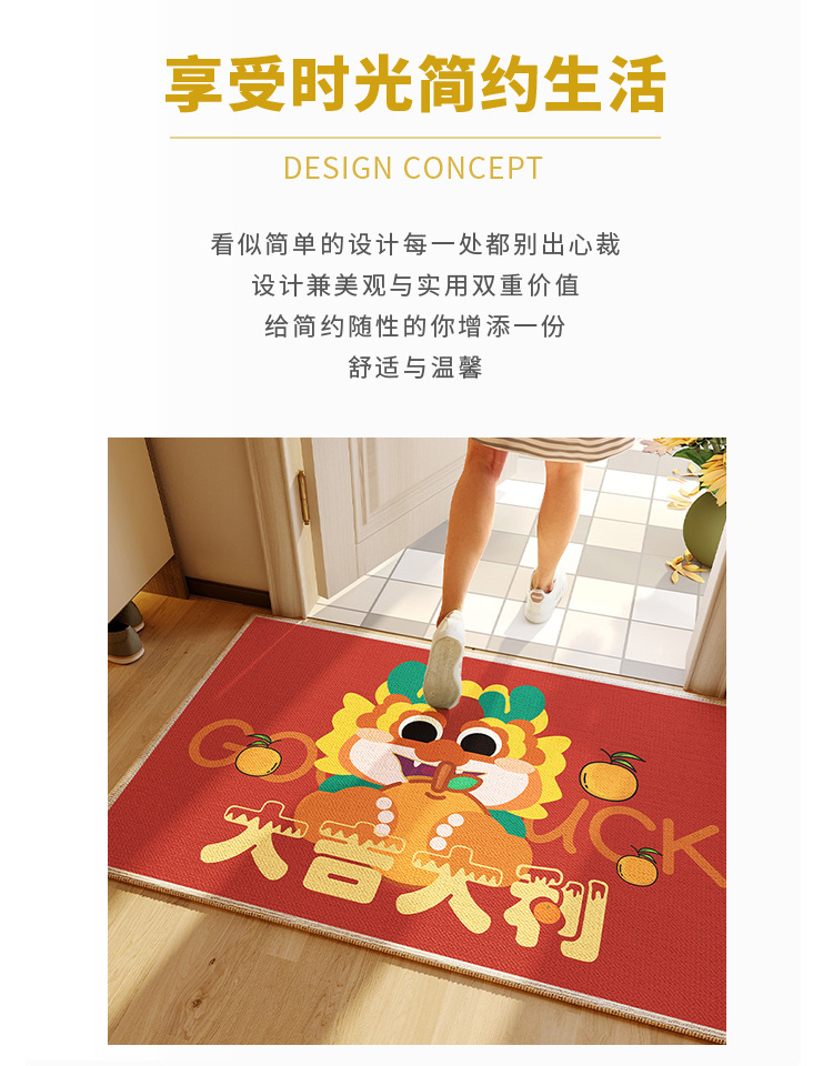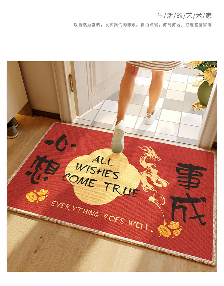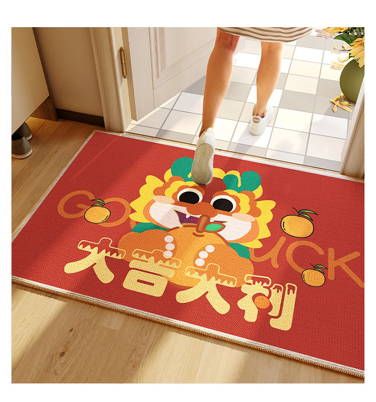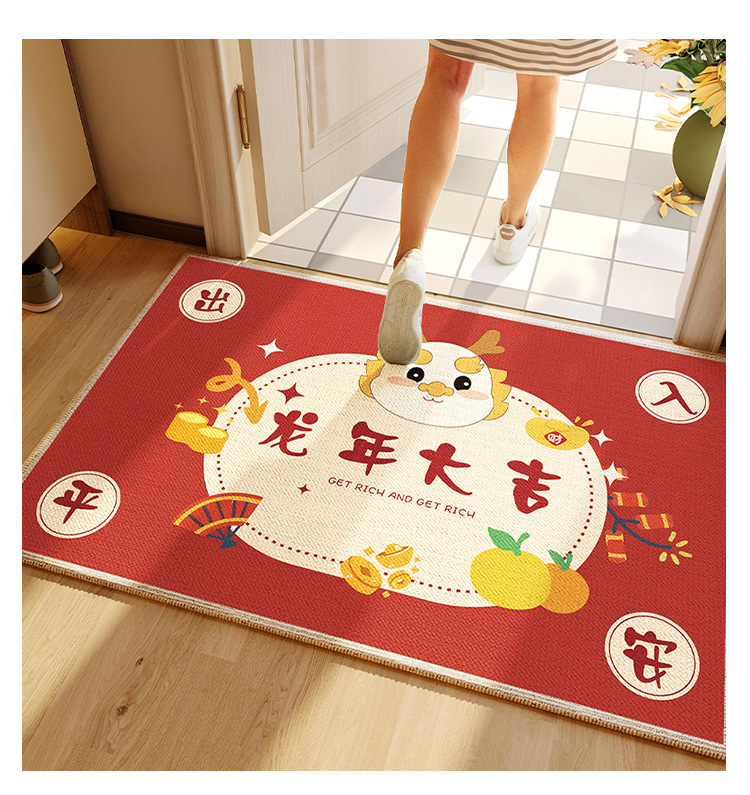 【享受时光!简约生活】卡通龙年入户地垫红色喜庆,玄关门口防滑垫家用圈绒门垫,舒适温馨 锁边平整 贴合地面