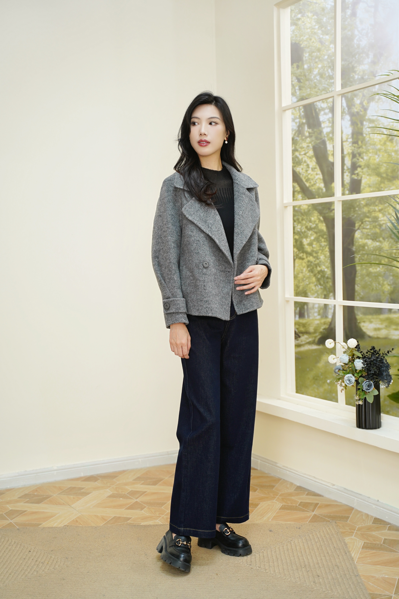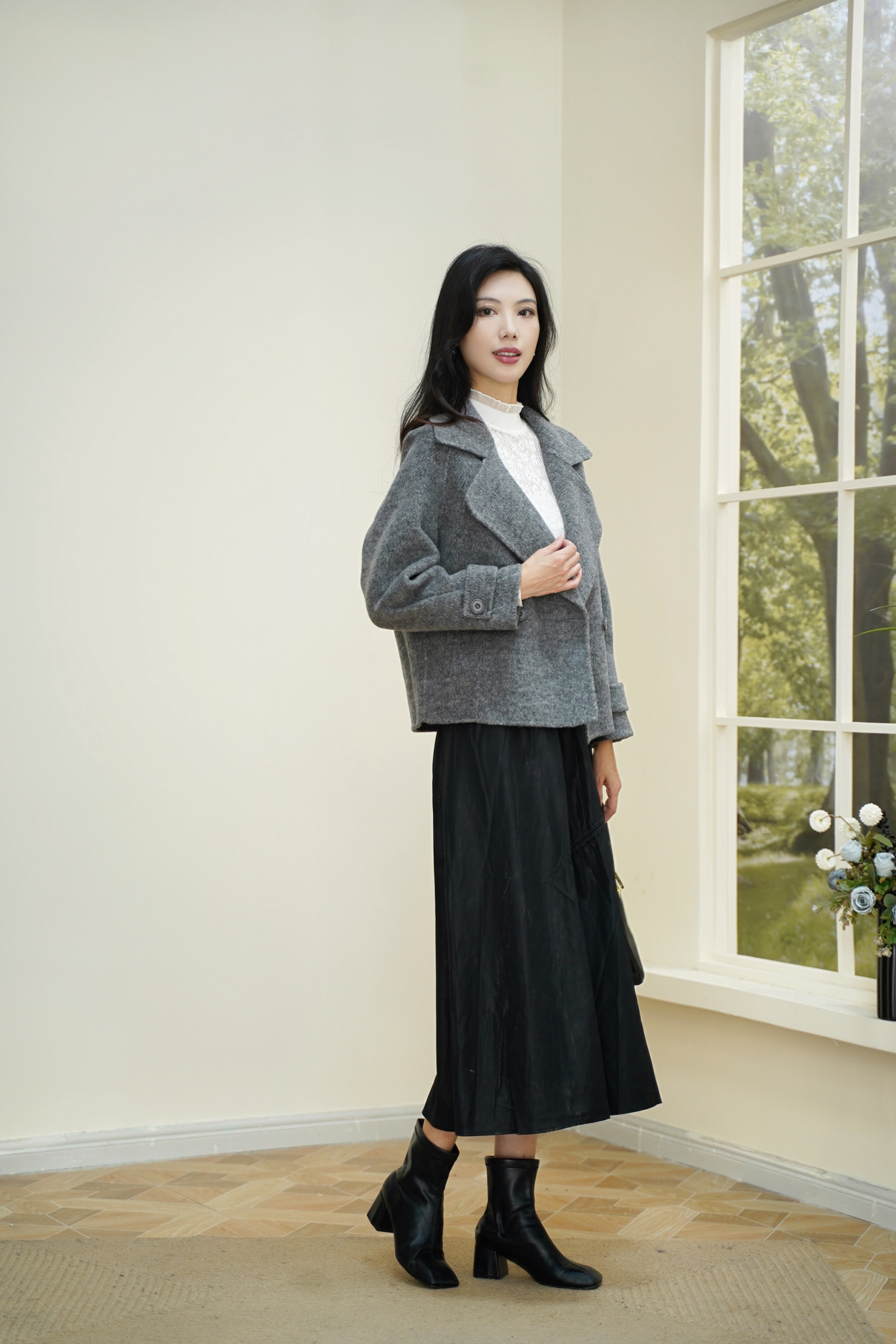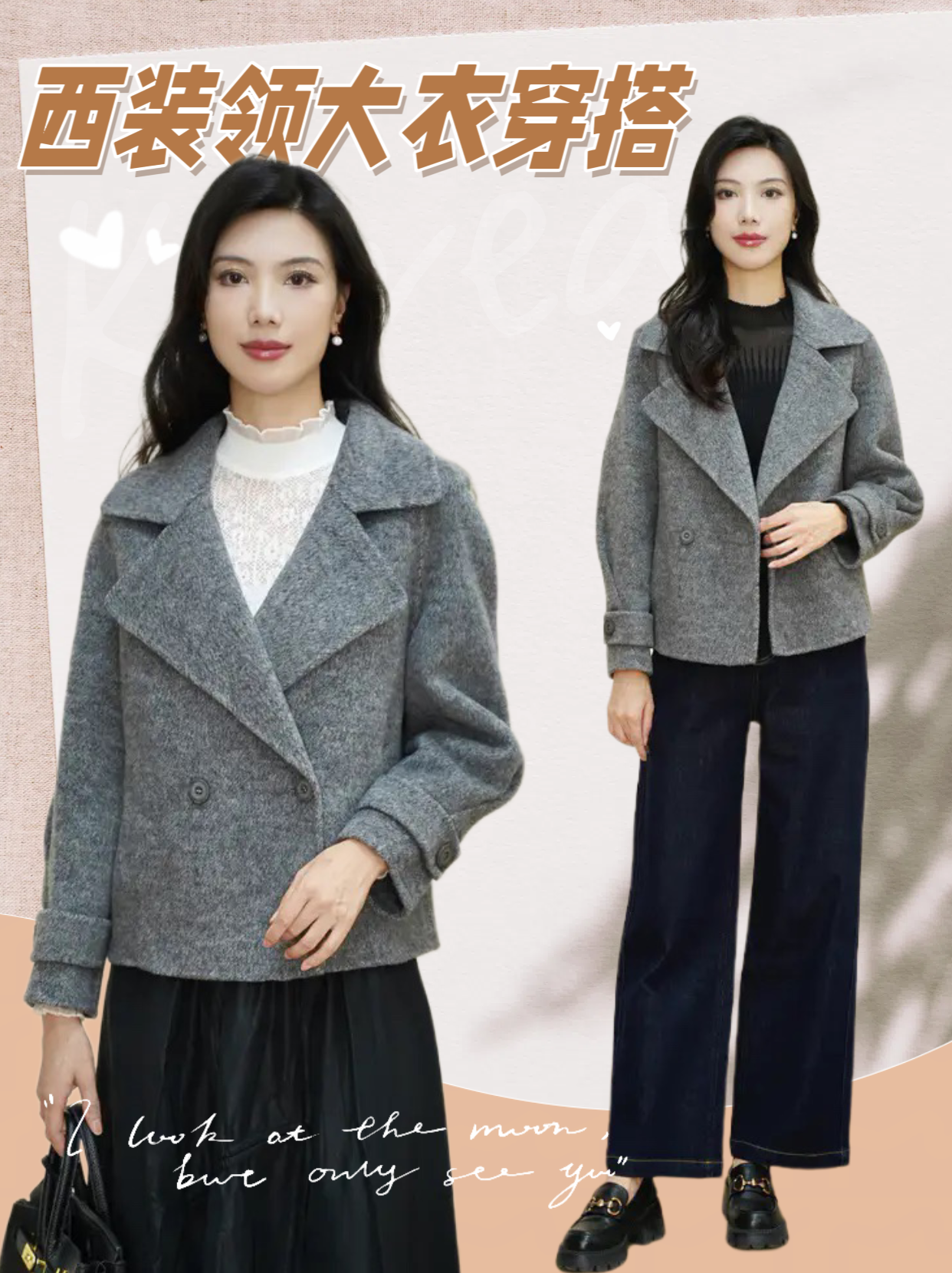 臣禾 西装领羊毛呢大衣 两粒扣短外套 JZ254080575