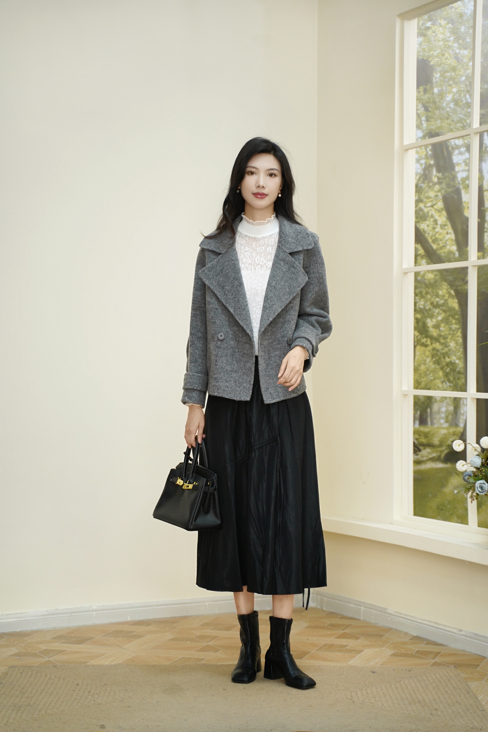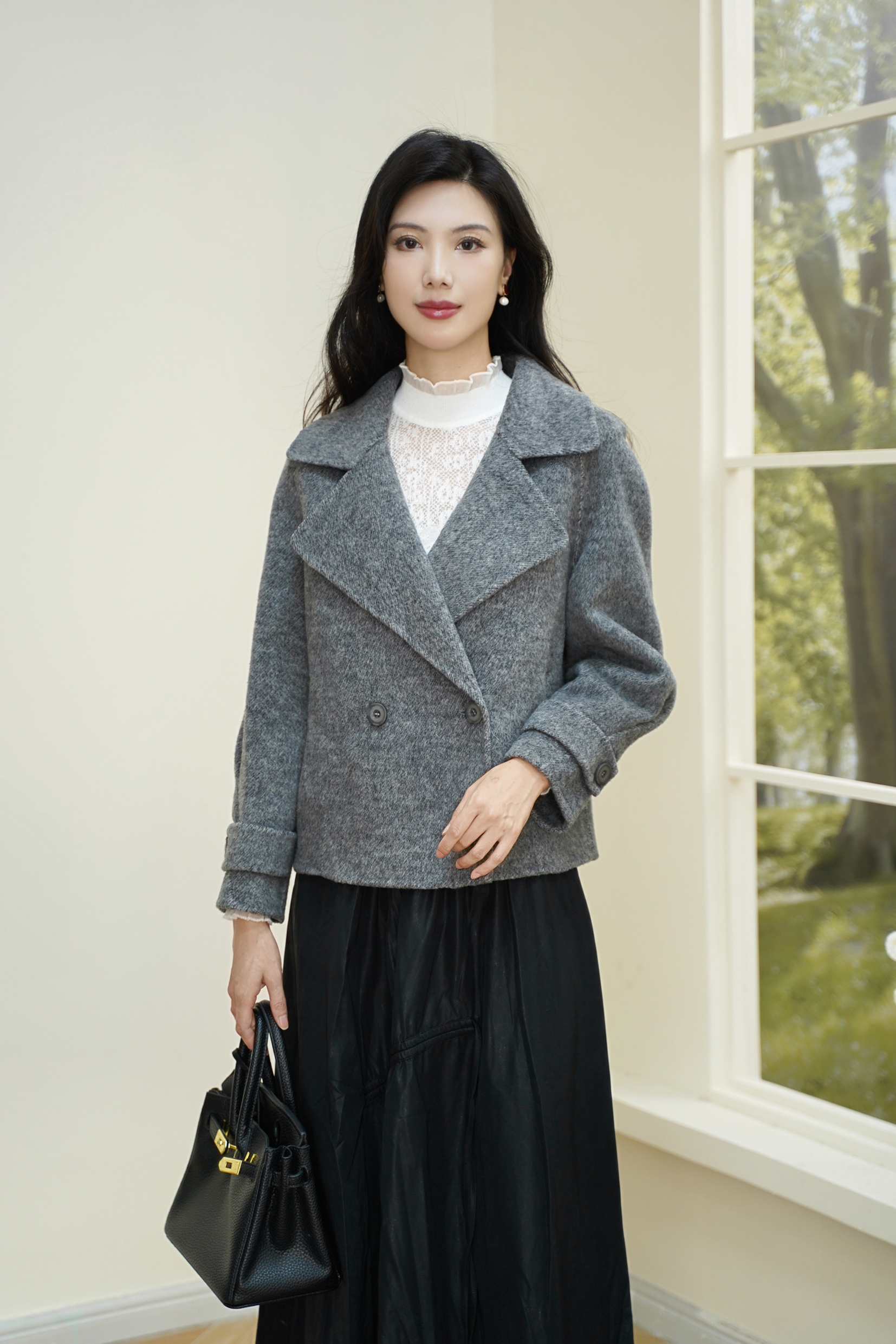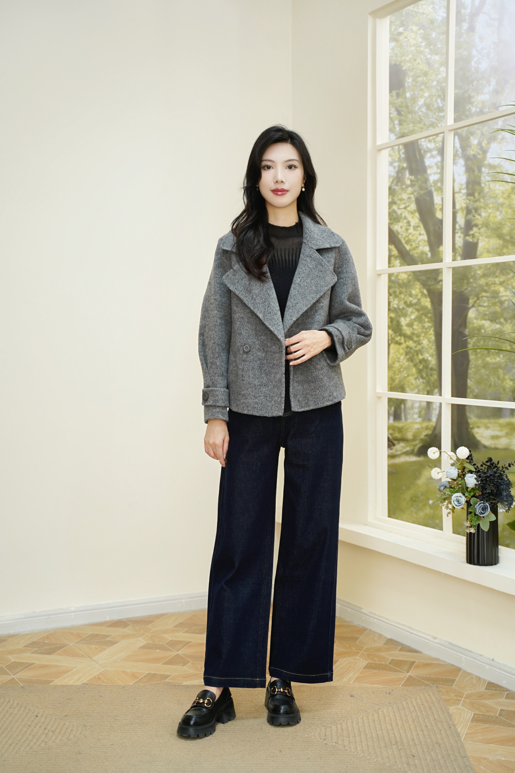 臣禾 西装领羊毛呢大衣 两粒扣短外套 JZ254080575