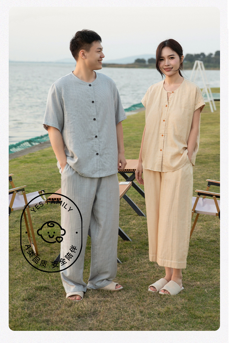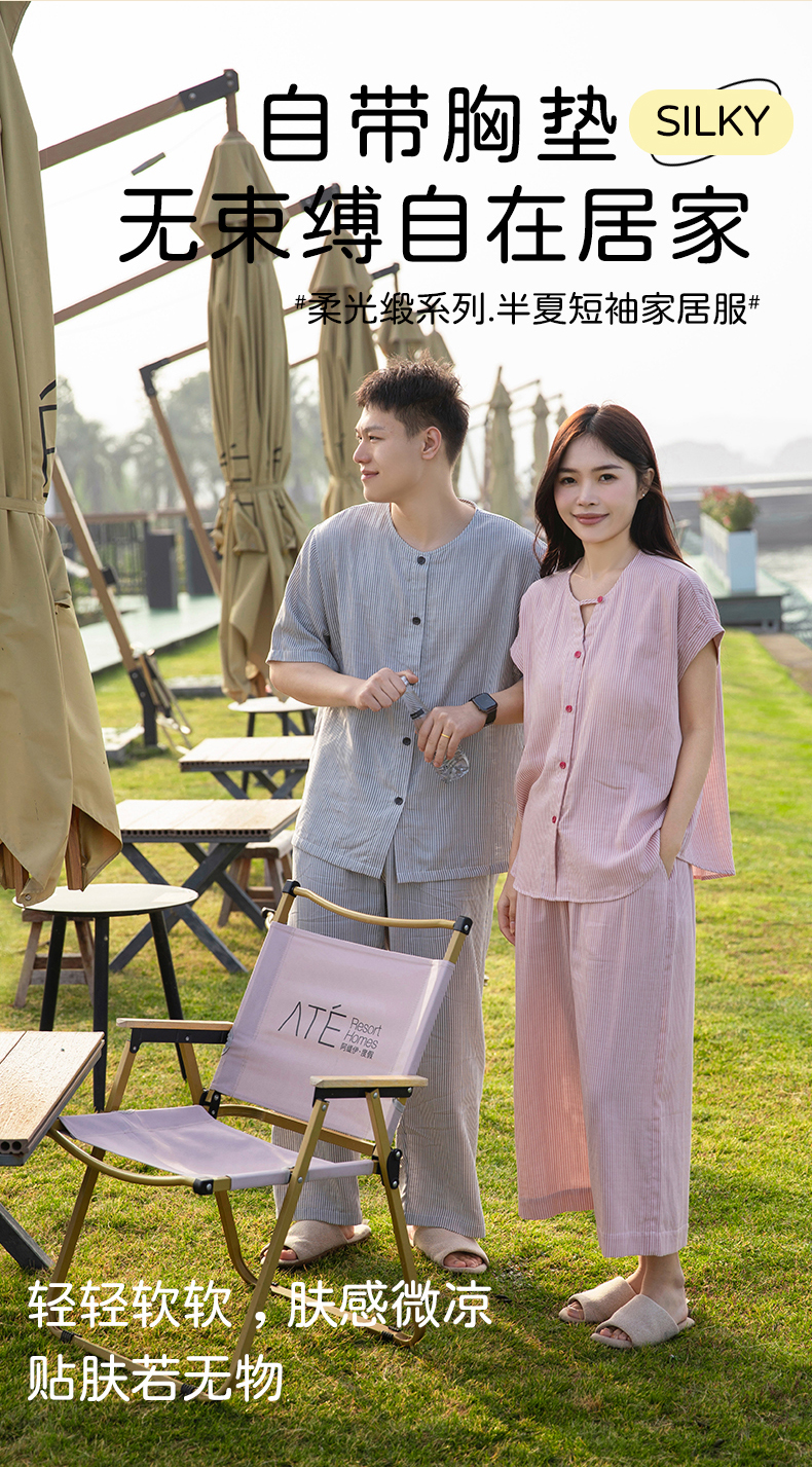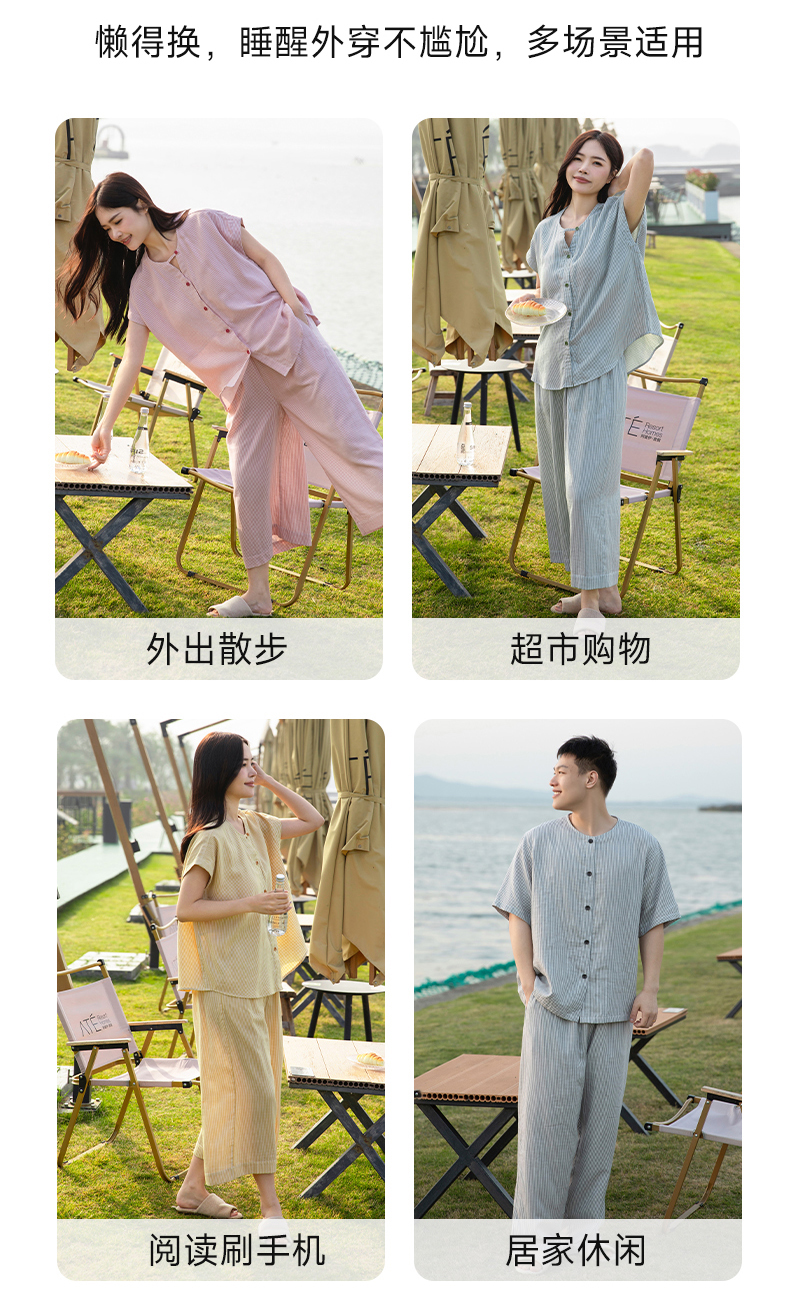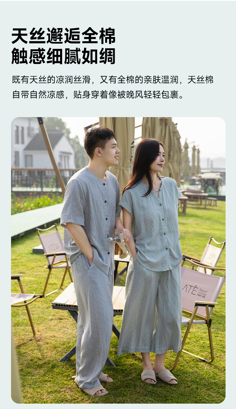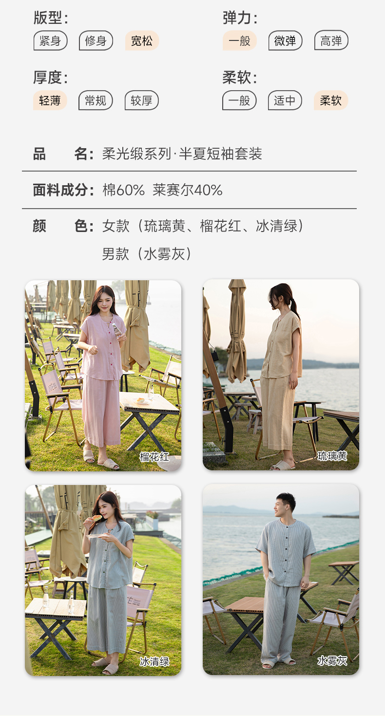 软糯亲肤 清爽舒适 | 60%棉+40%莱赛尔 宜色家情侣款柔光缎·半夏短袖家居服套装 4色入