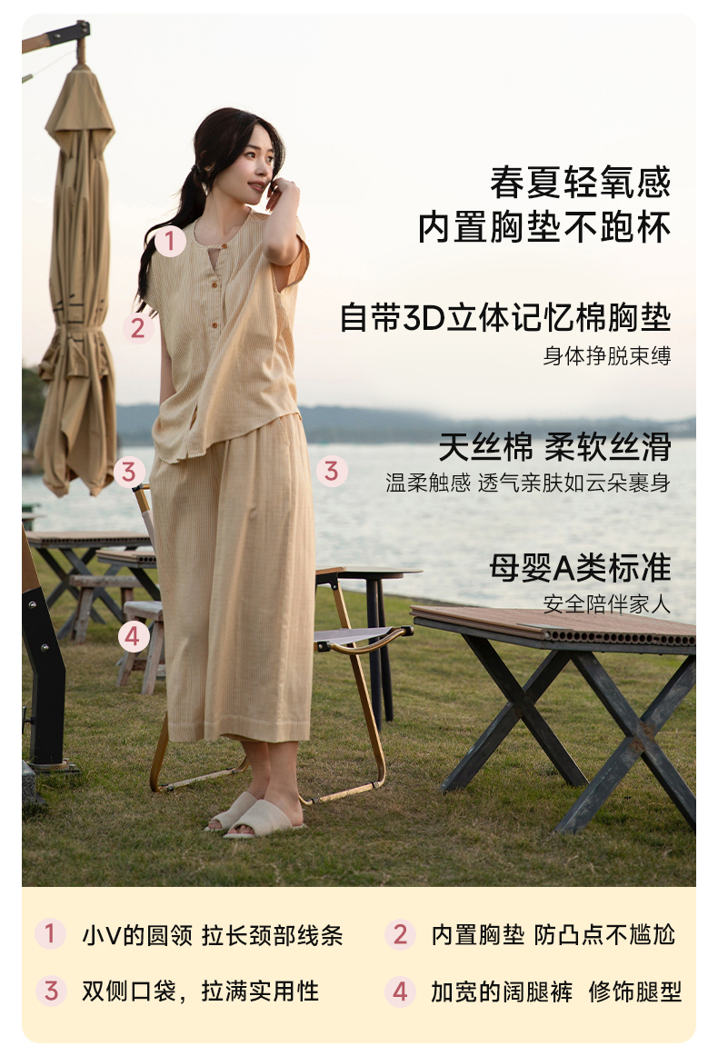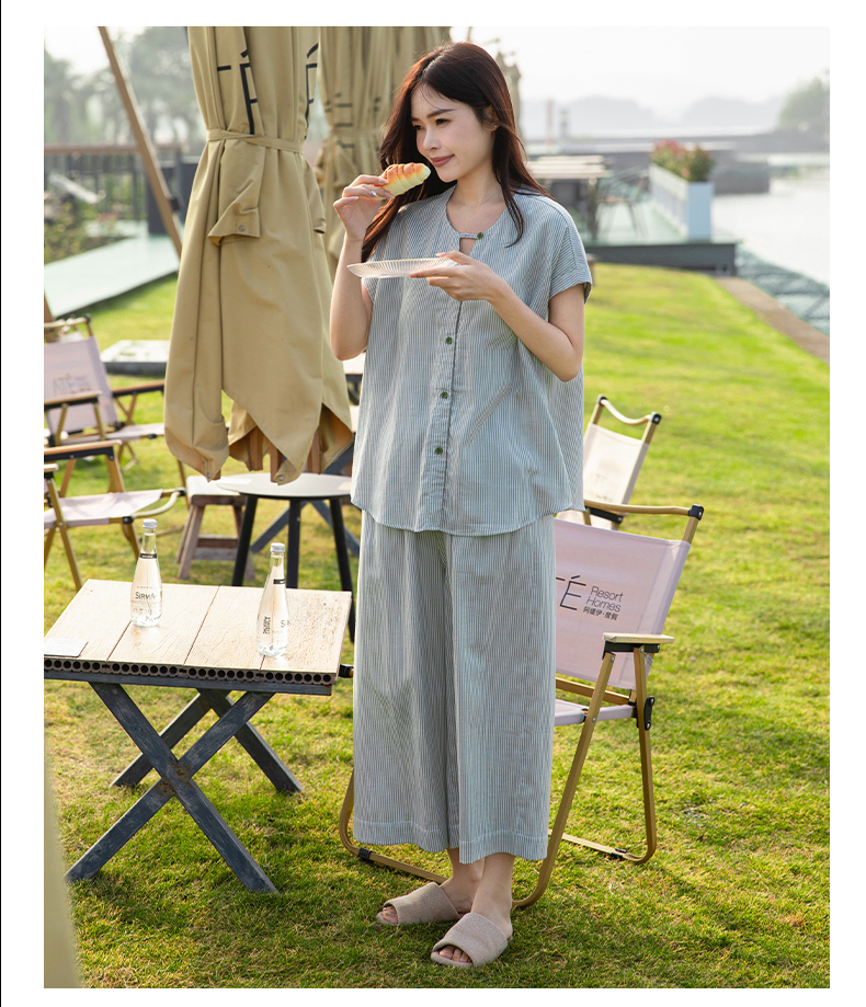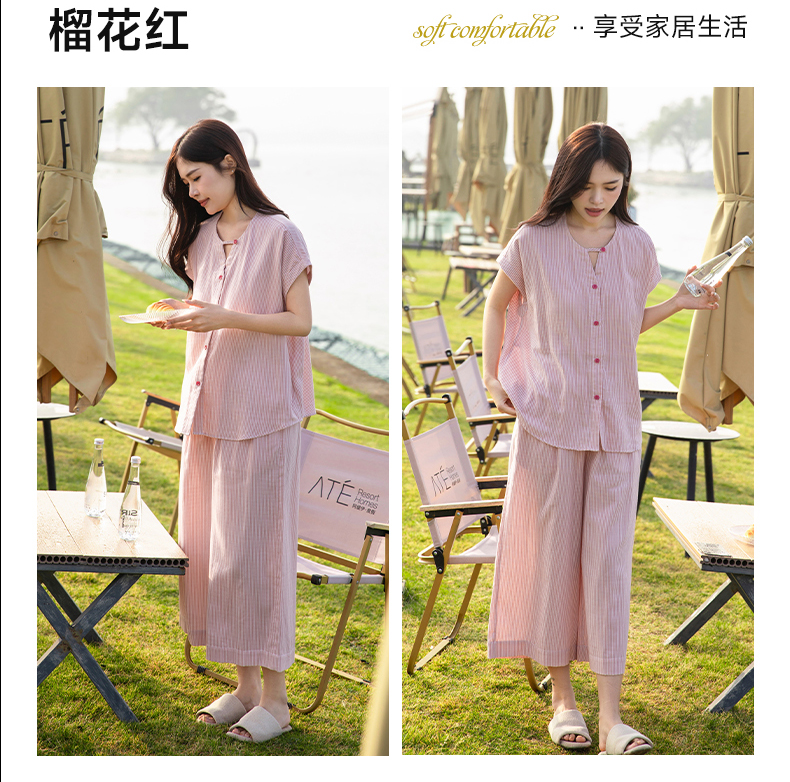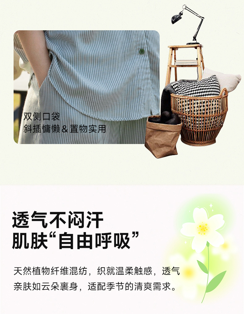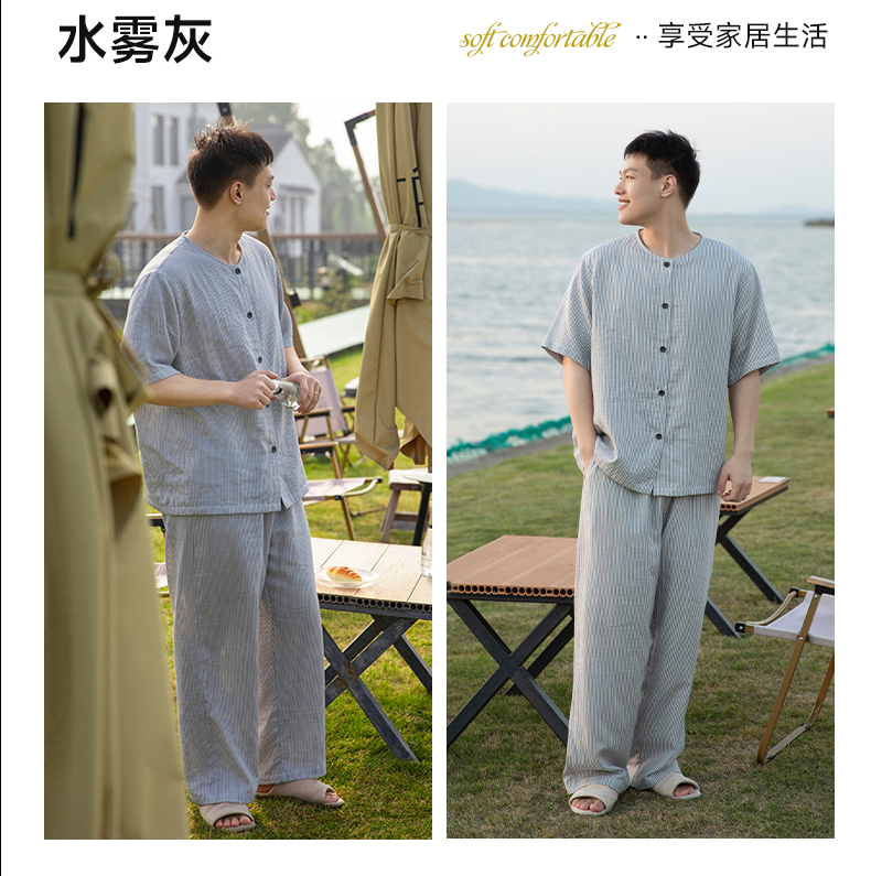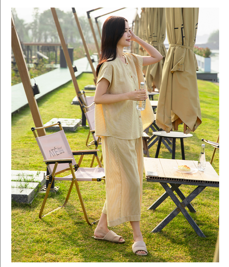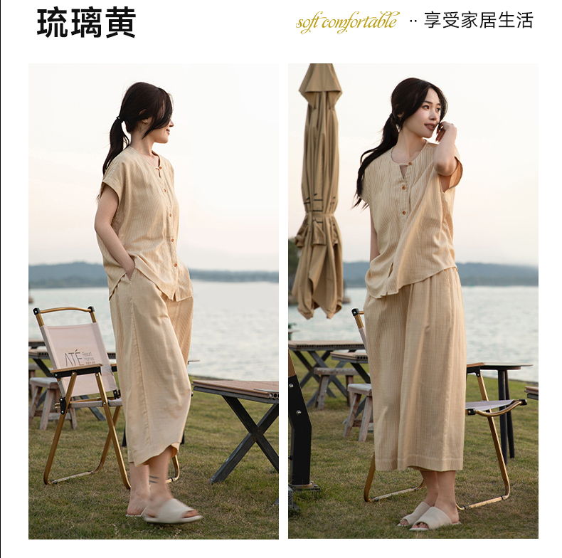 软糯亲肤 清爽舒适 | 60%棉+40%莱赛尔 宜色家情侣款柔光缎·半夏短袖家居服套装 4色入