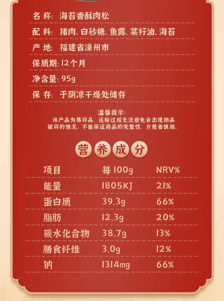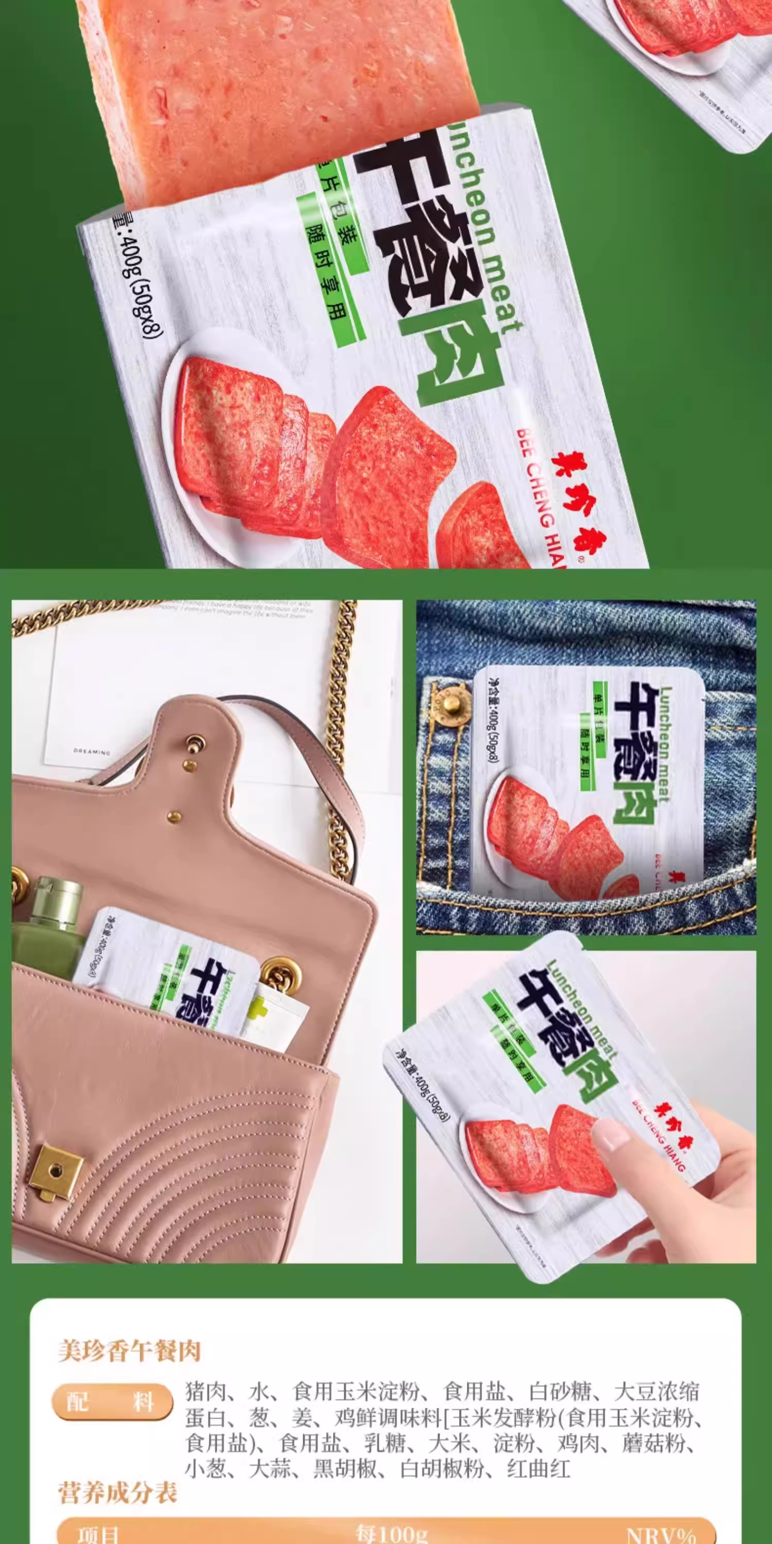 【组合】美珍香午餐肉400g*2盒+海苔香酥猪肉松95g*1包即食单片早餐零食