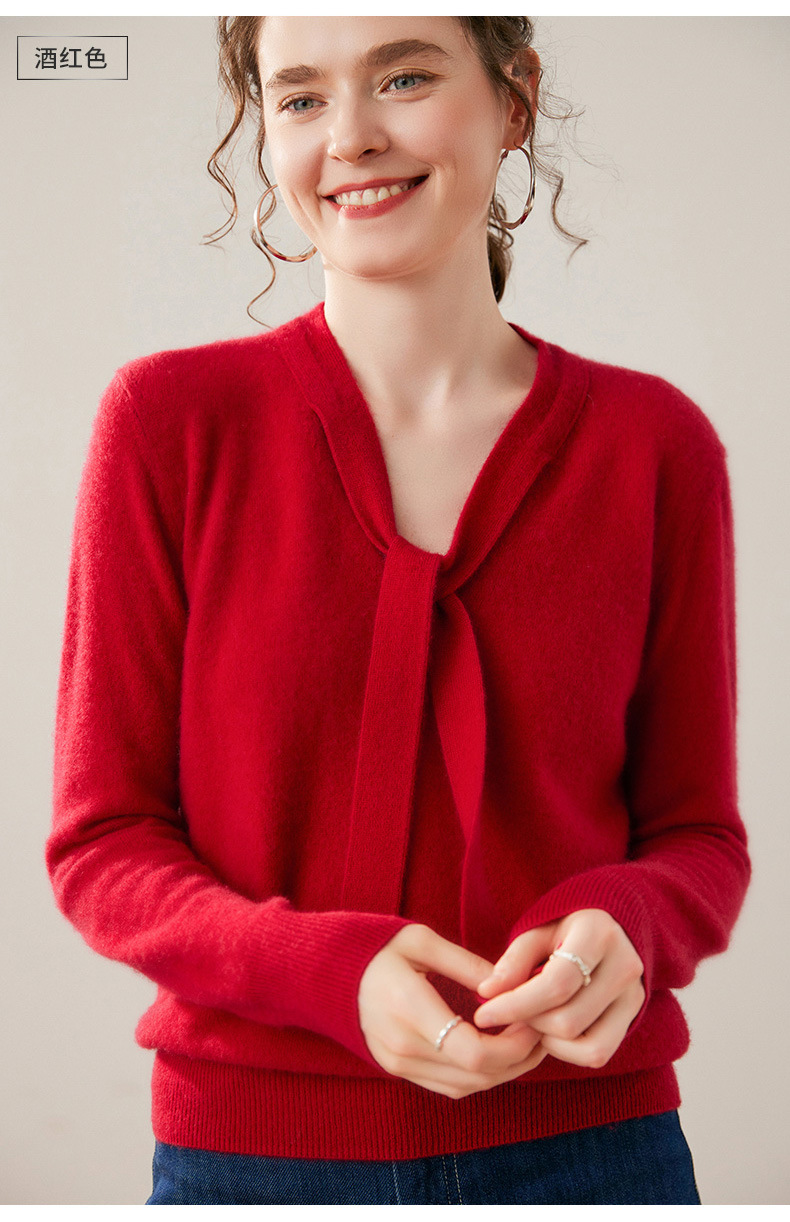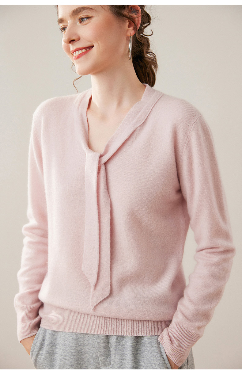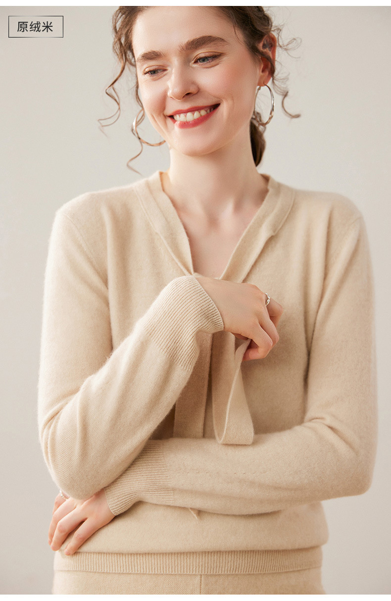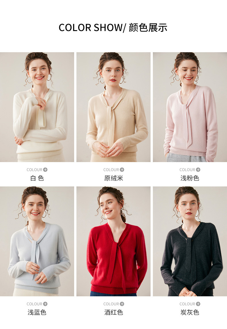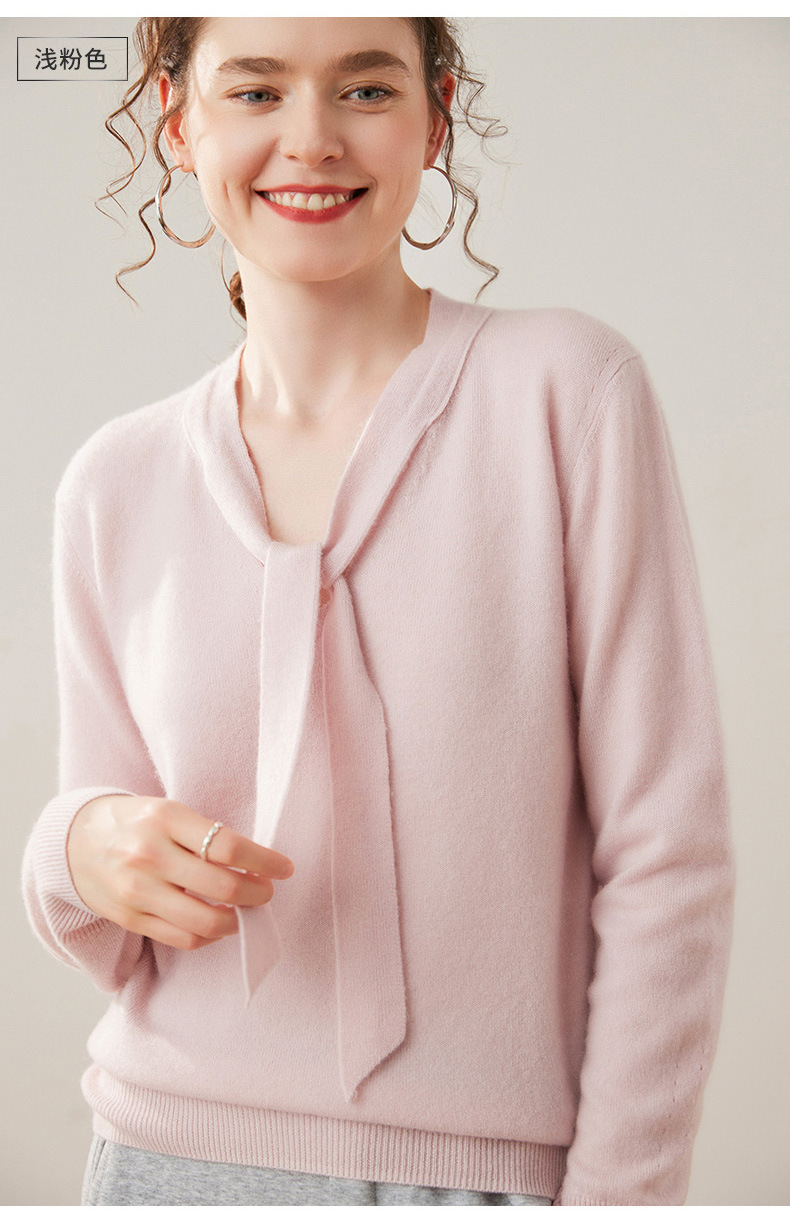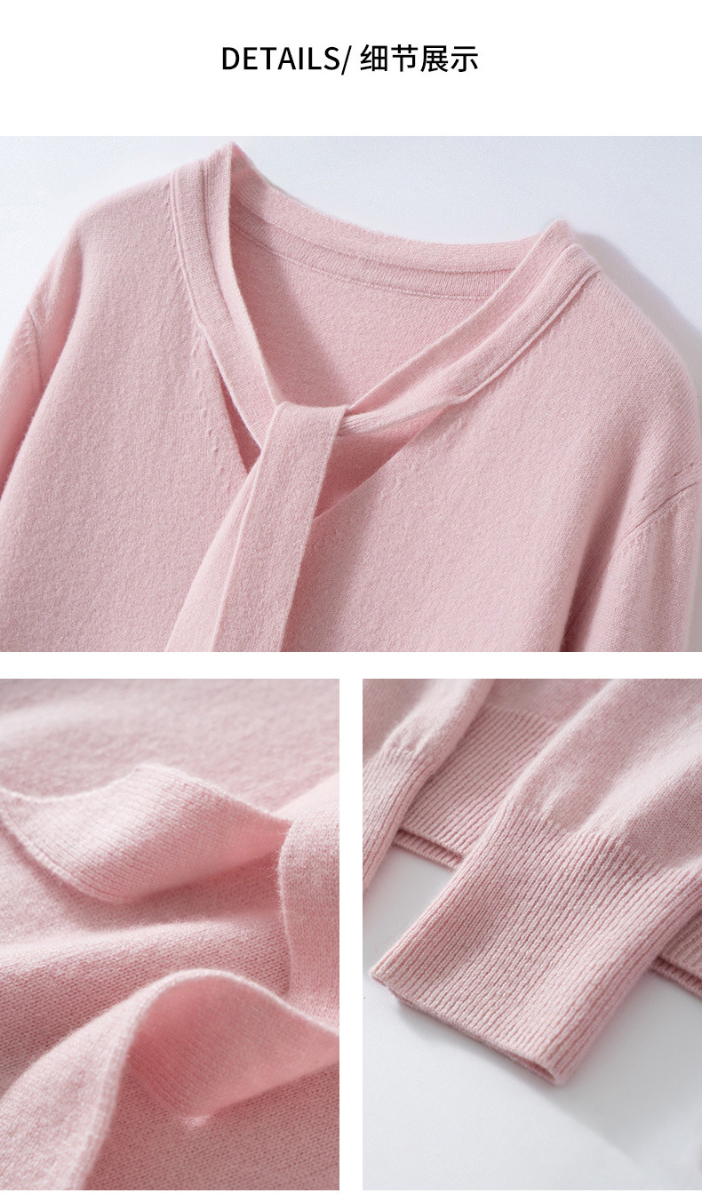 「高货rig」全新升级【铂金会员367/天猫499/差价132】(10257)洛诗琳新款V领套头羊绒衫2025秋冬蝴蝶结飘带针织毛衣女