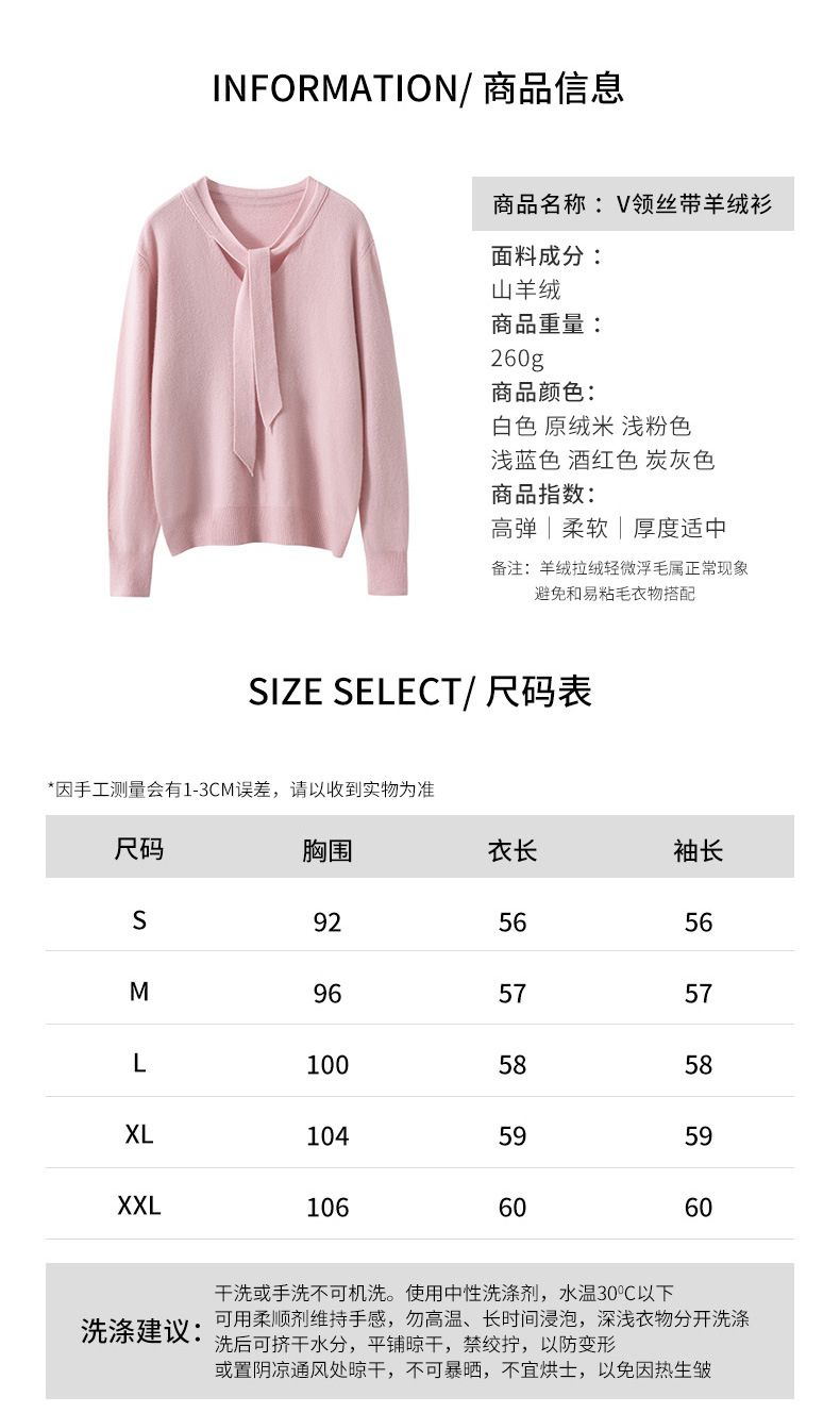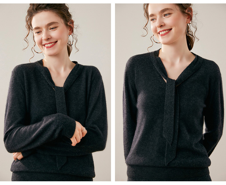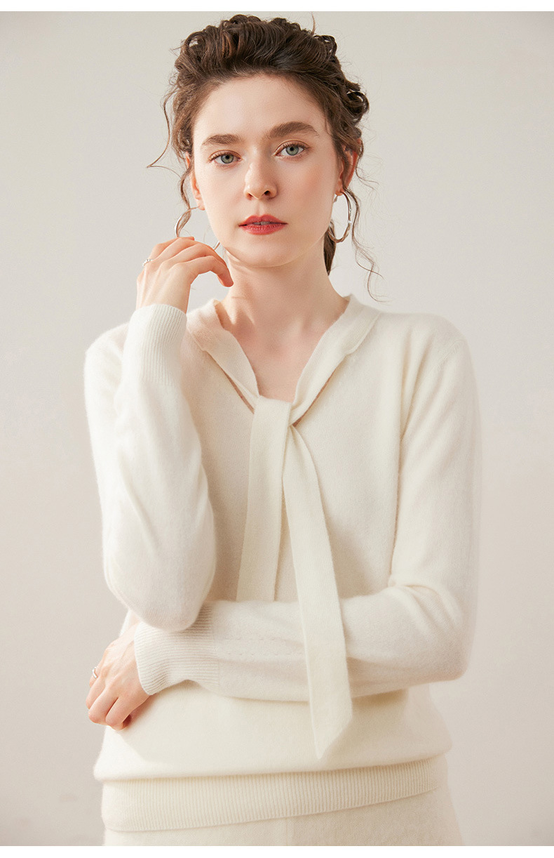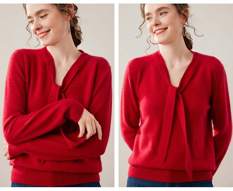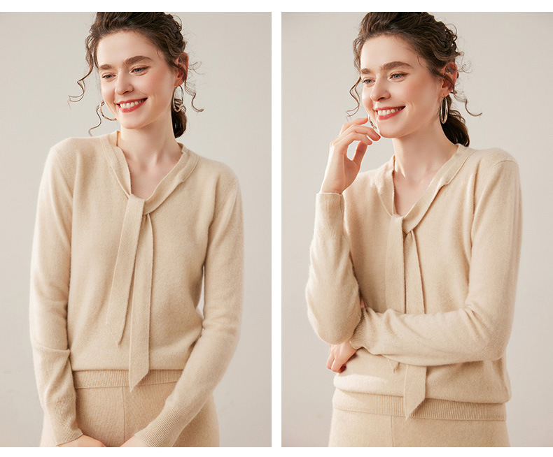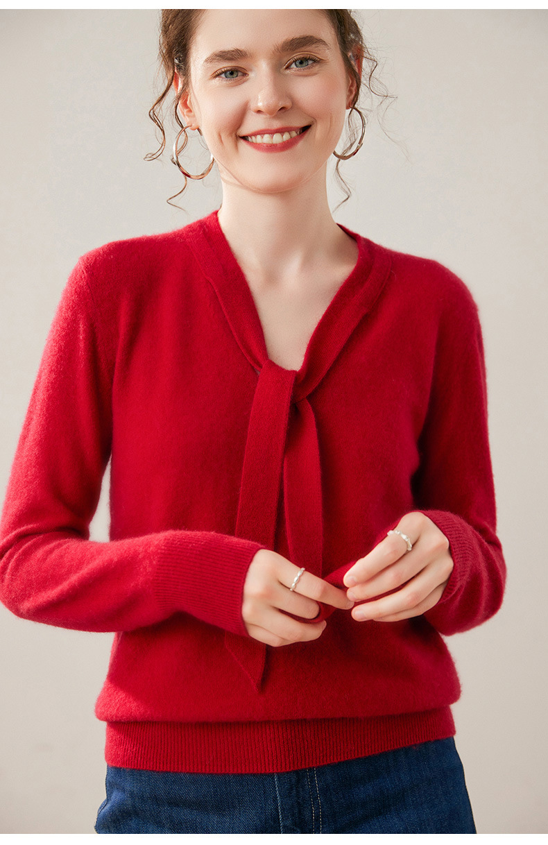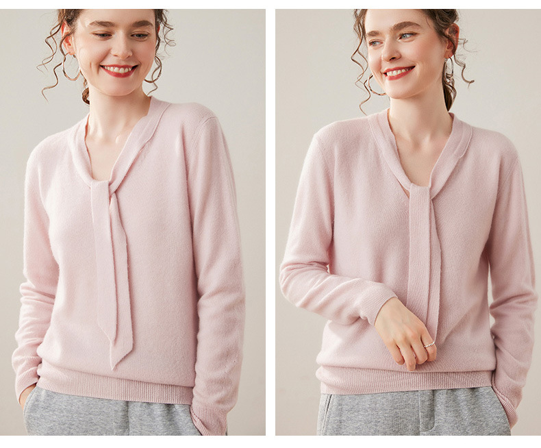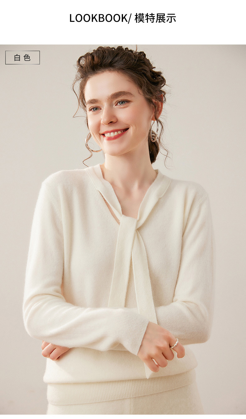 「高货rig」全新升级【铂金会员367/天猫499/差价132】(10257)洛诗琳新款V领套头羊绒衫2025秋冬蝴蝶结飘带针织毛衣女