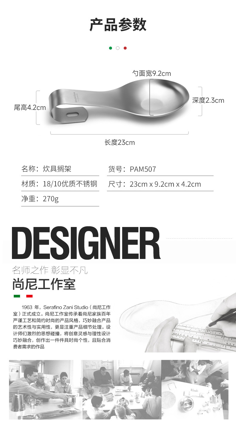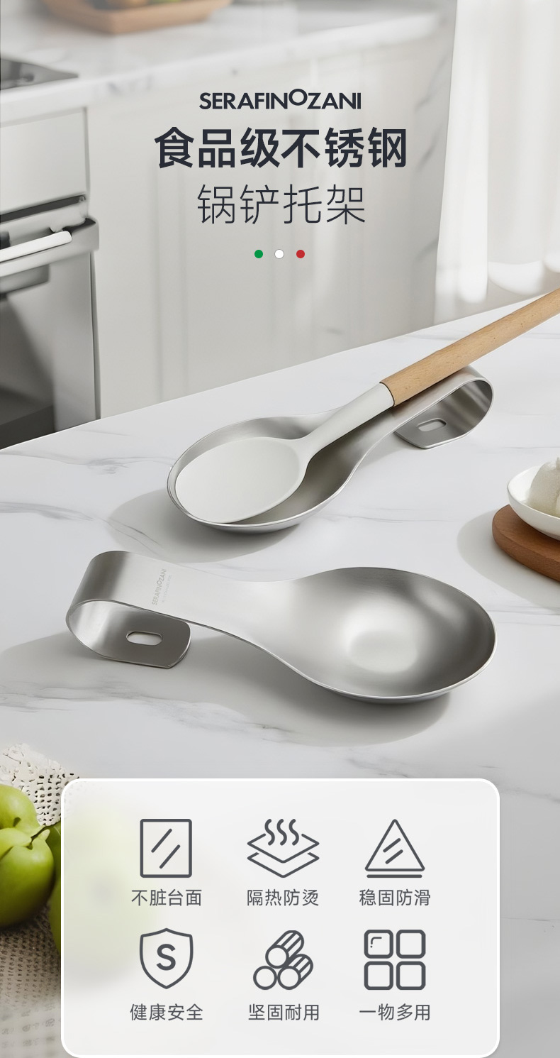 锅铲托架 不脏台面 | 意大利尚尼帕尔玛炊具搁架 保持灶台洁净 隔热防烫 不占台面(18/10优质不锈钢)