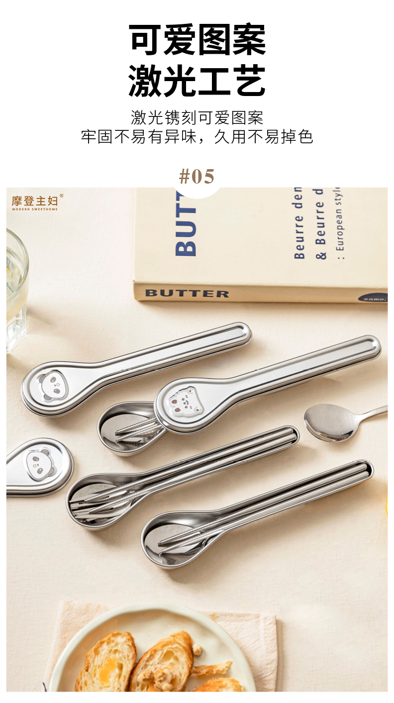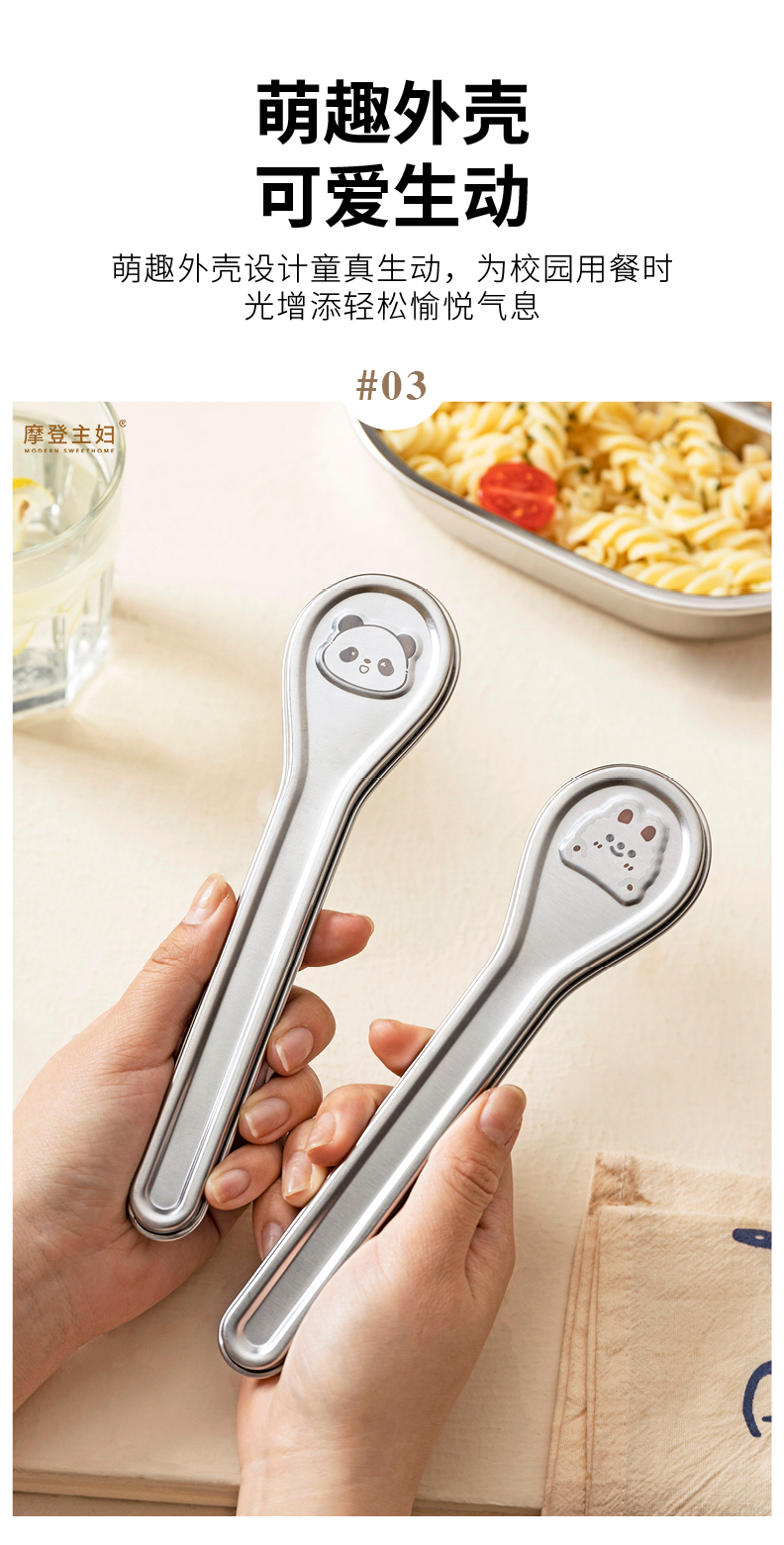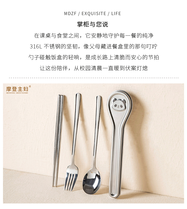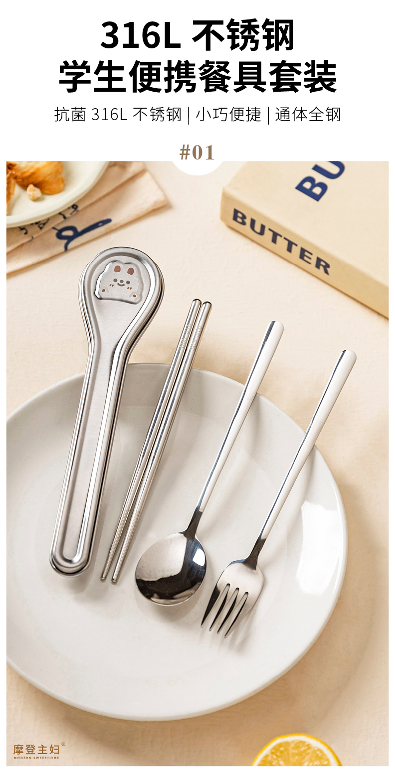 摩登主妇316L不锈钢筷子勺子套装304便携餐具个人专用餐具收纳盒