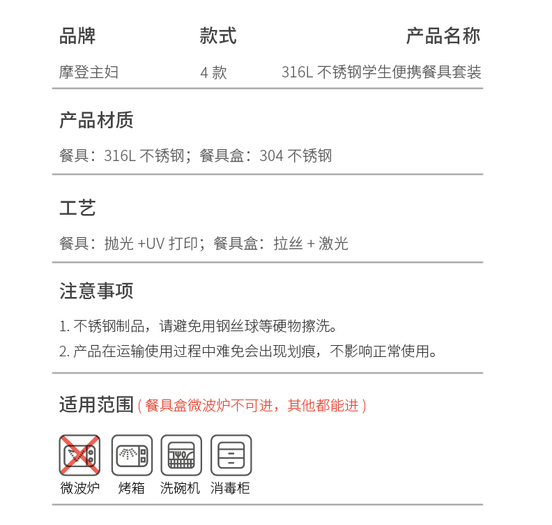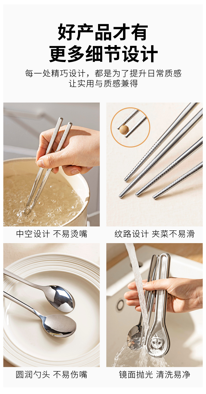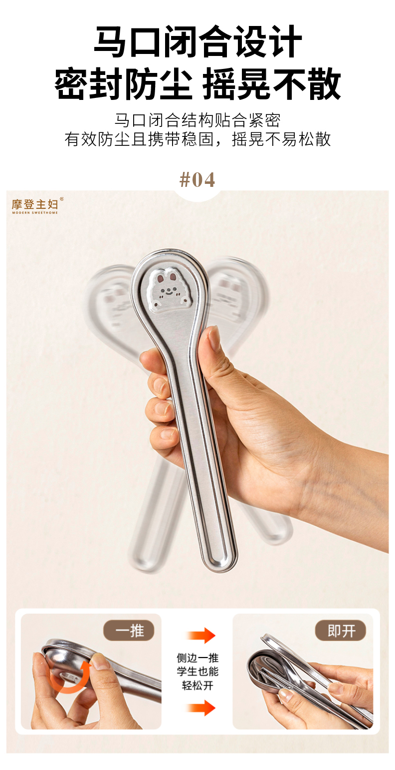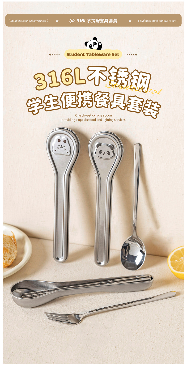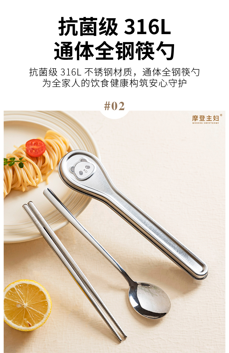 摩登主妇316L不锈钢筷子勺子套装304便携餐具个人专用餐具收纳盒