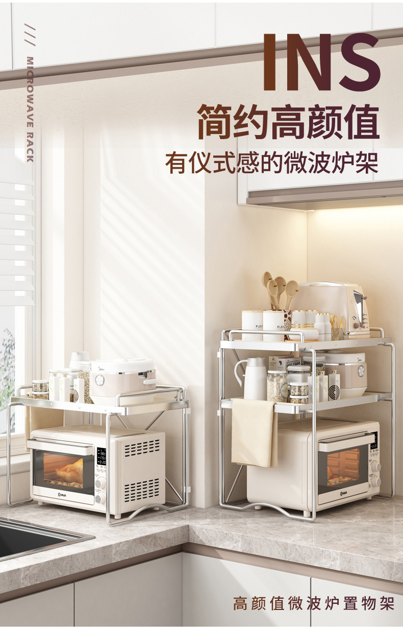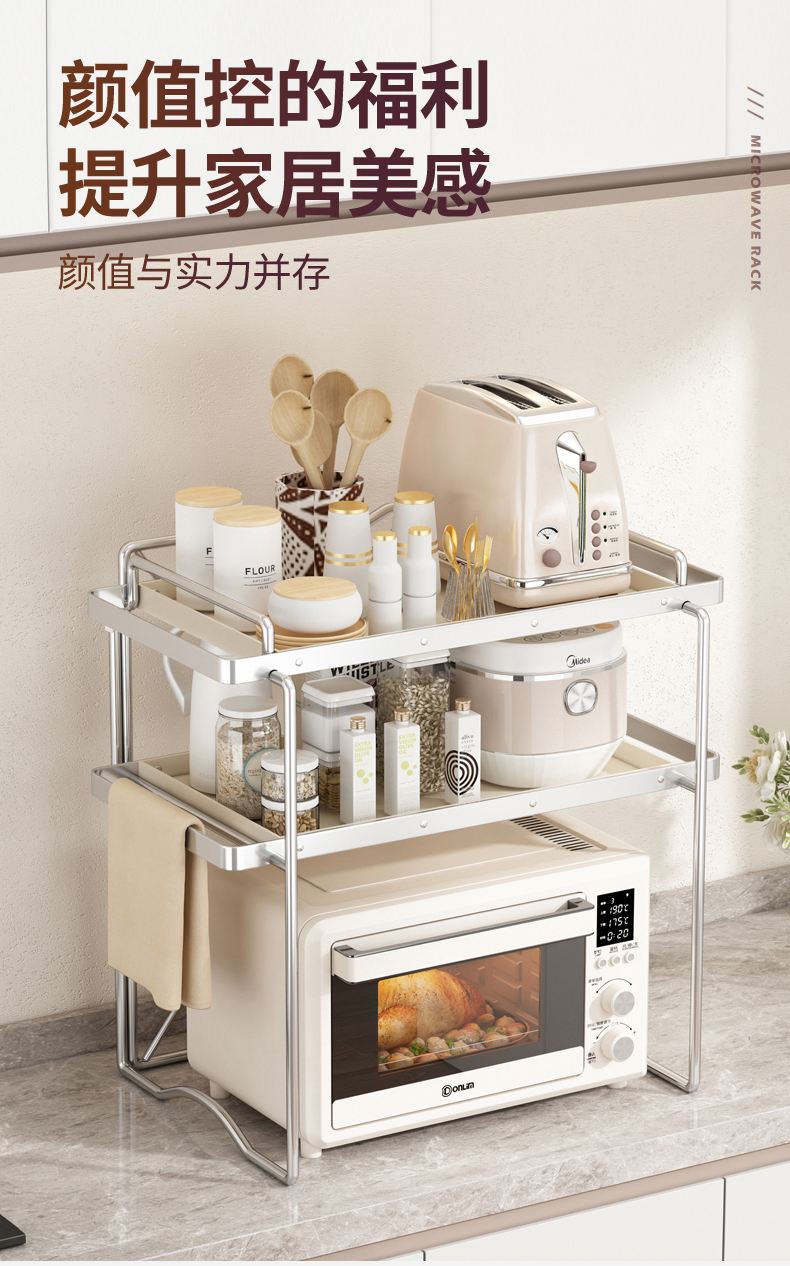 摩登主妇微波炉置物架子新款储物支厨房台面双层电饭锅煲烤箱收纳