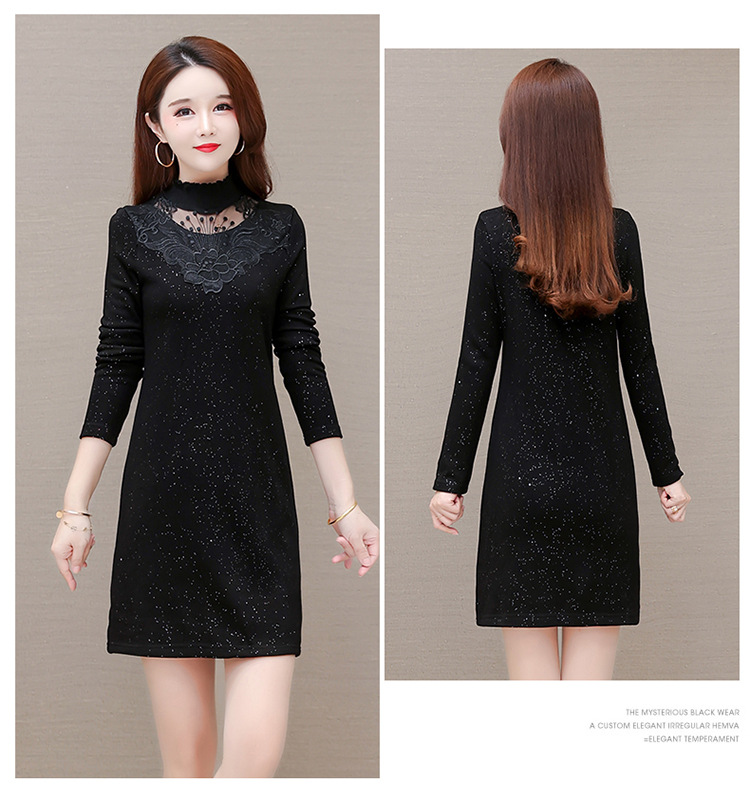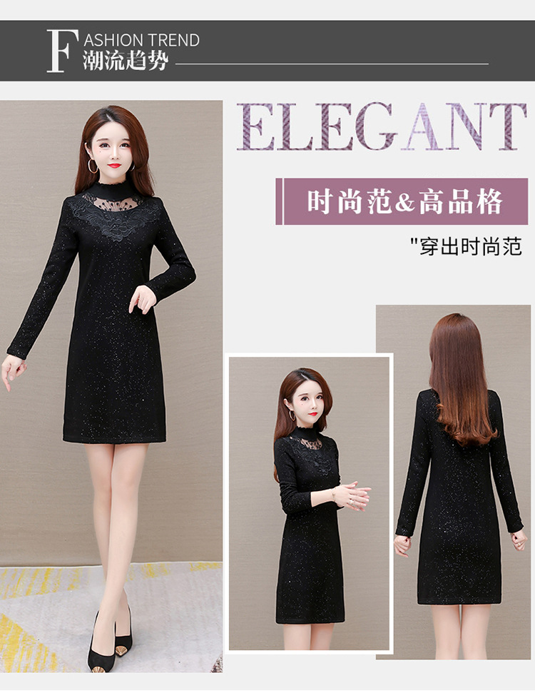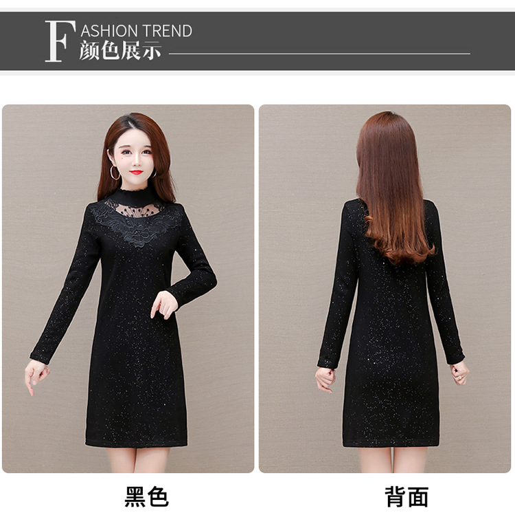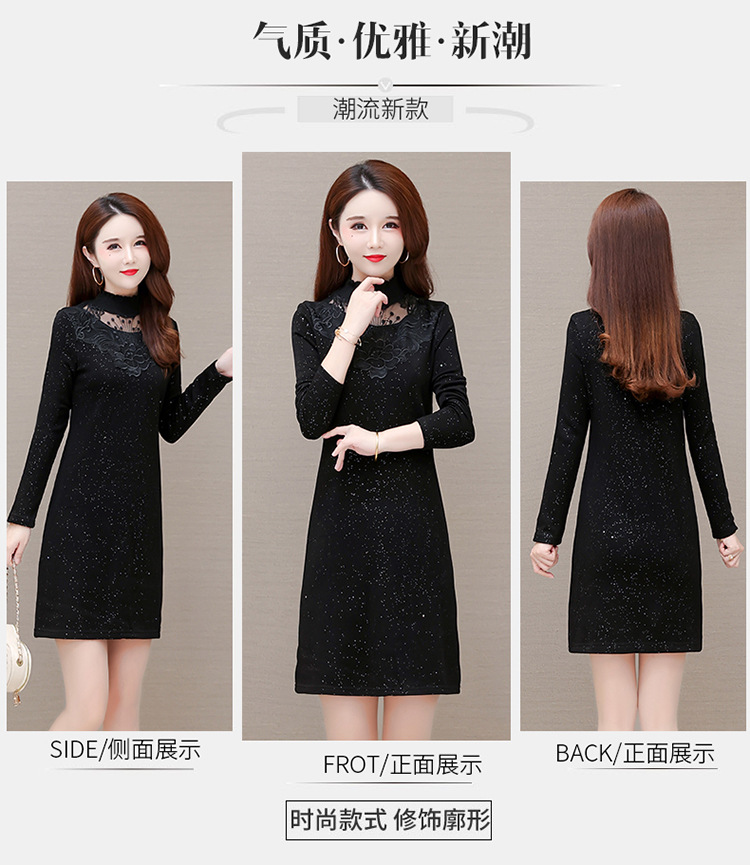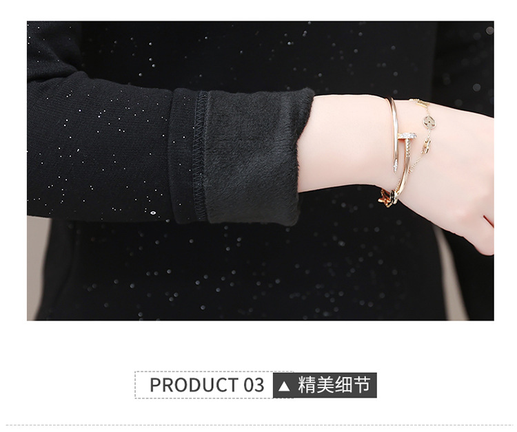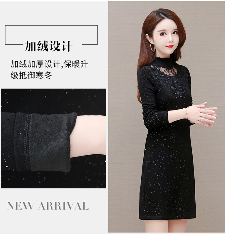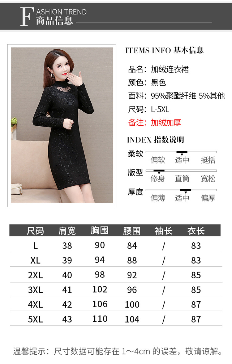 黑色时尚中长款加绒连衣裙,秋冬款半高领长袖修身通勤打底裙QYM-OMS-CB1229-L