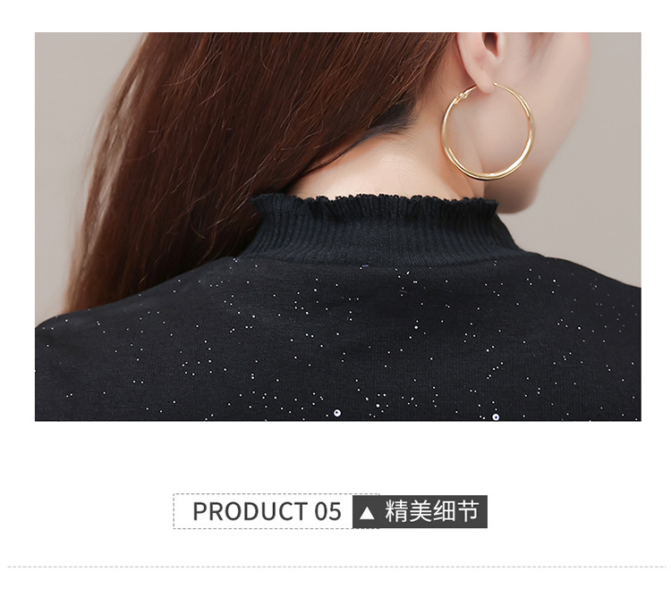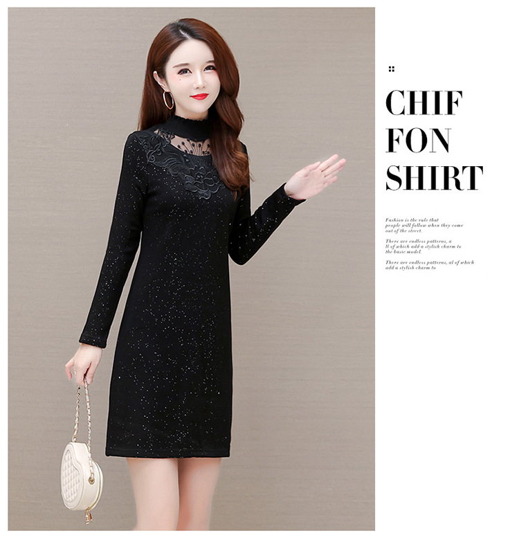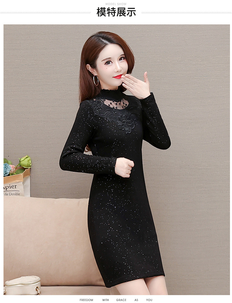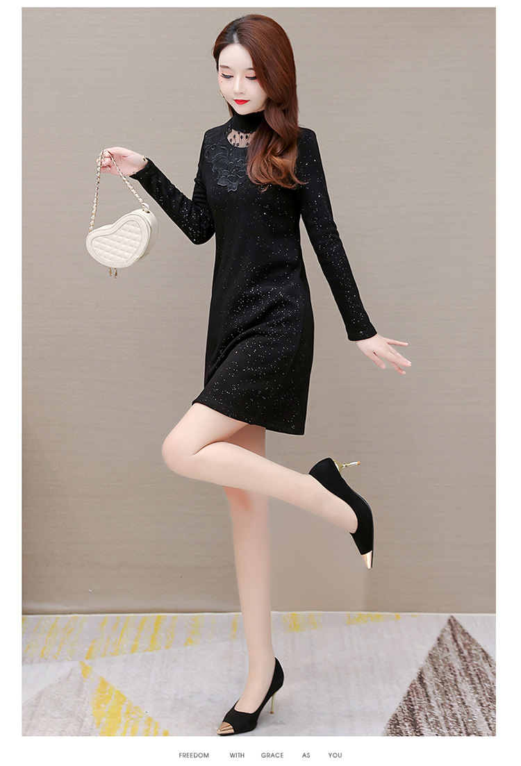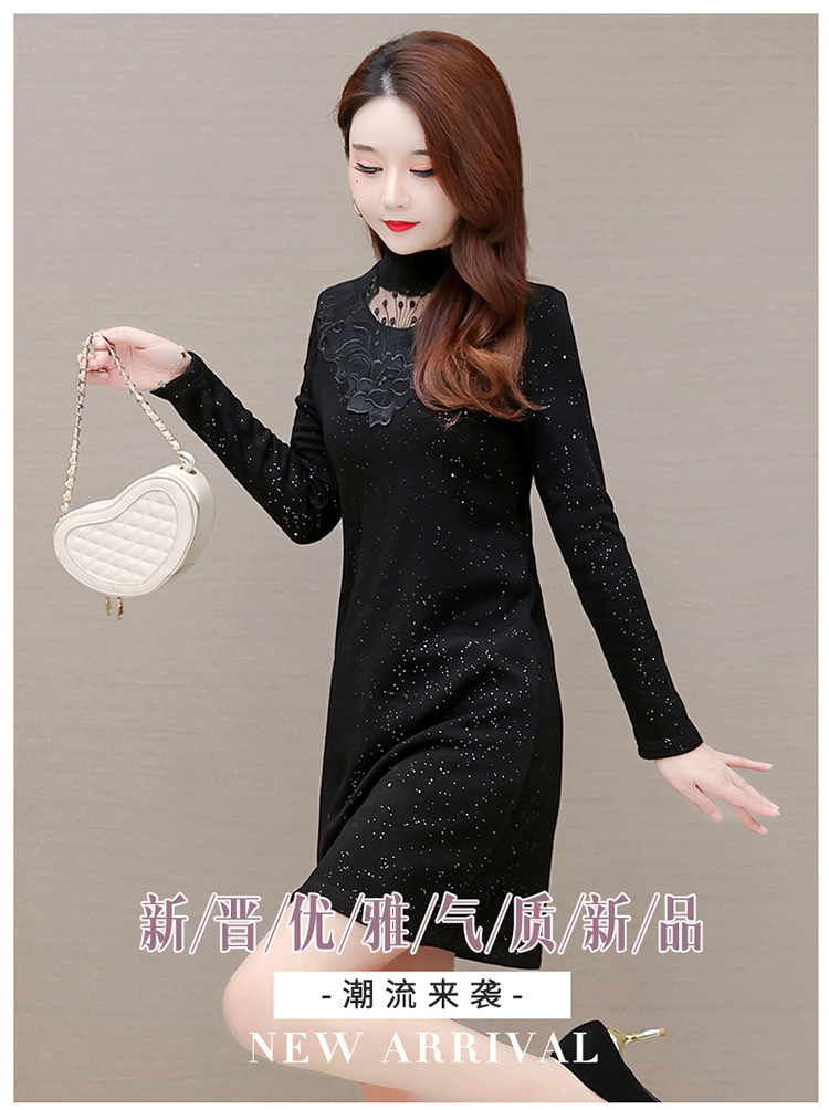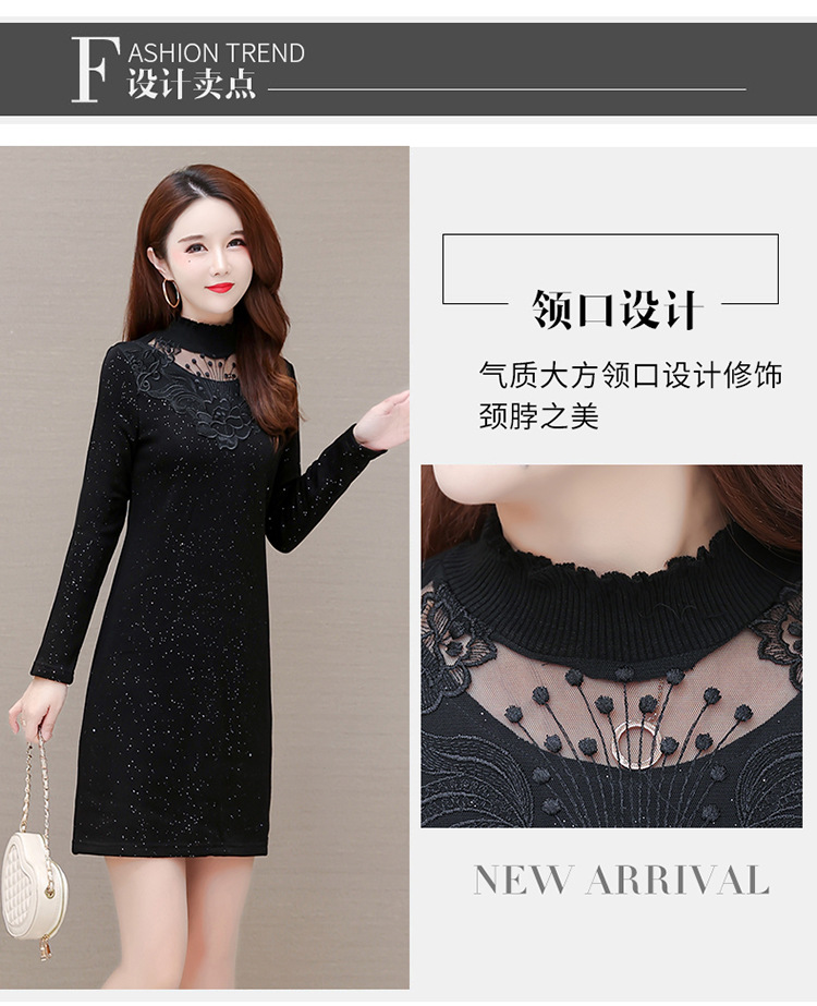 黑色时尚中长款加绒连衣裙,秋冬款半高领长袖修身通勤打底裙QYM-OMS-CB1229-L