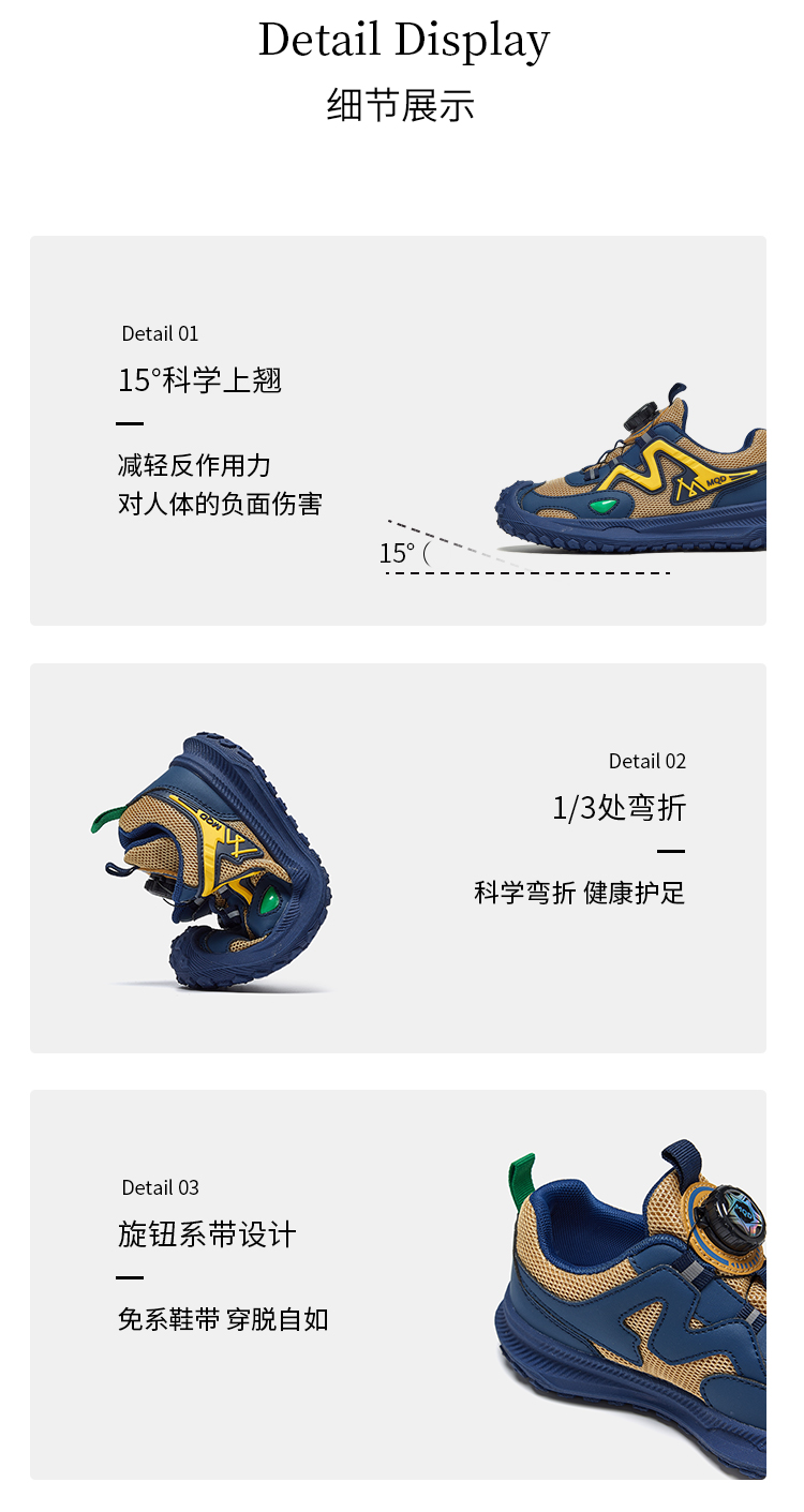 【ZY马骑顿】儿童运动鞋春秋女童旋钮扣男童跑步鞋户外登山运动鞋