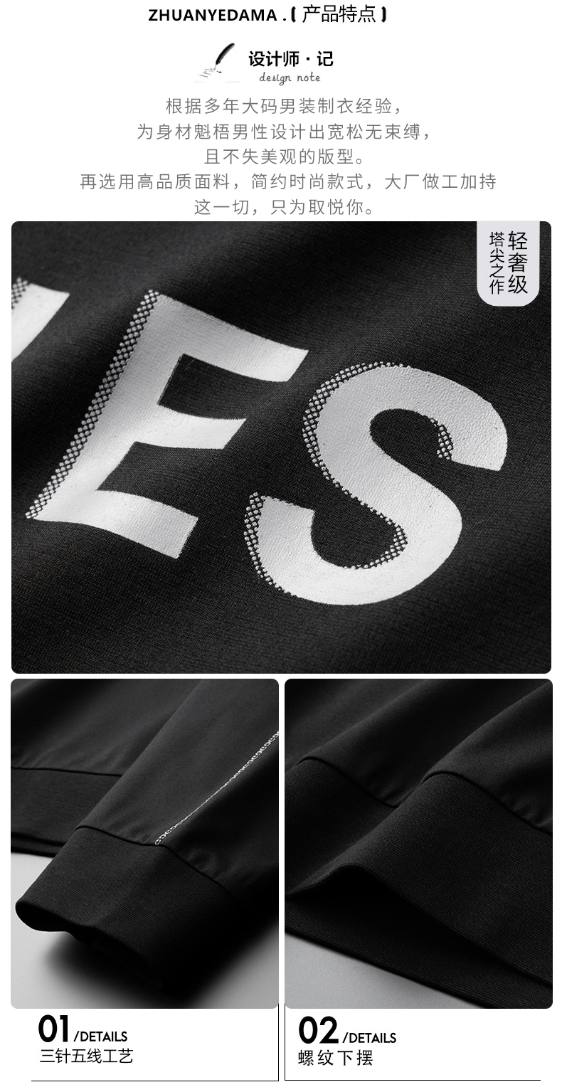 【新款DDA】大依优型大码圆领长袖卫衣加肥加大宽松休闲上衣男士打底